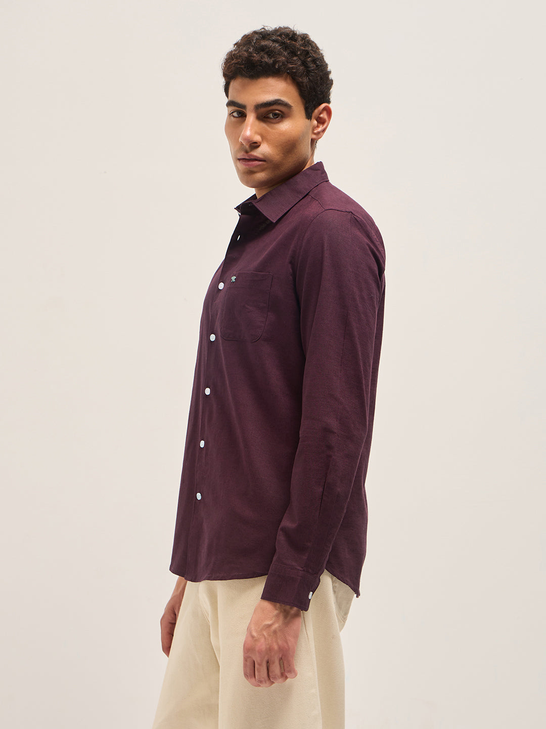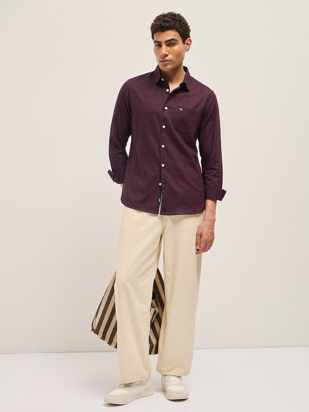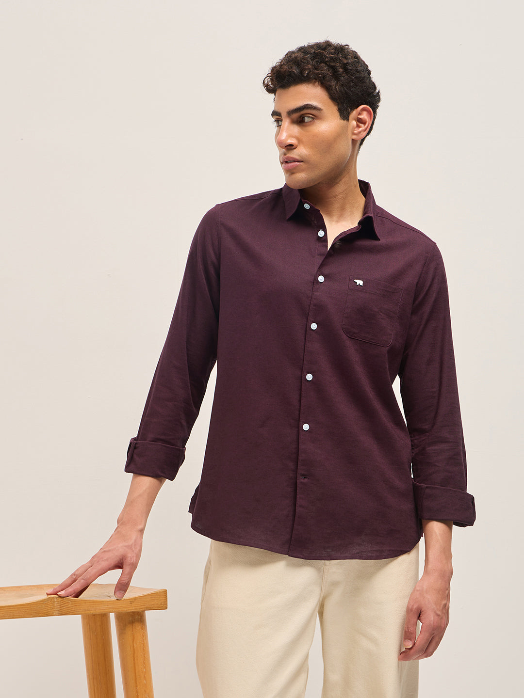 Maroon Cotton Linen Slim Fit Solid Casual Shirt