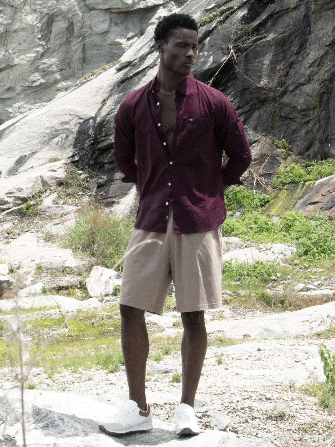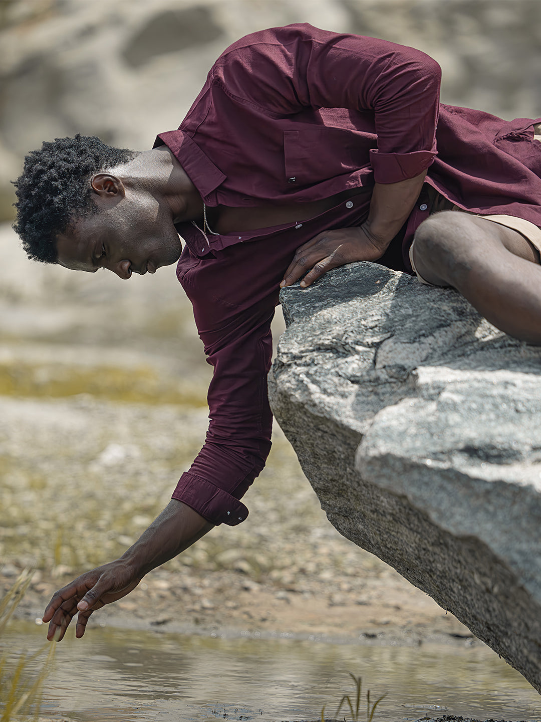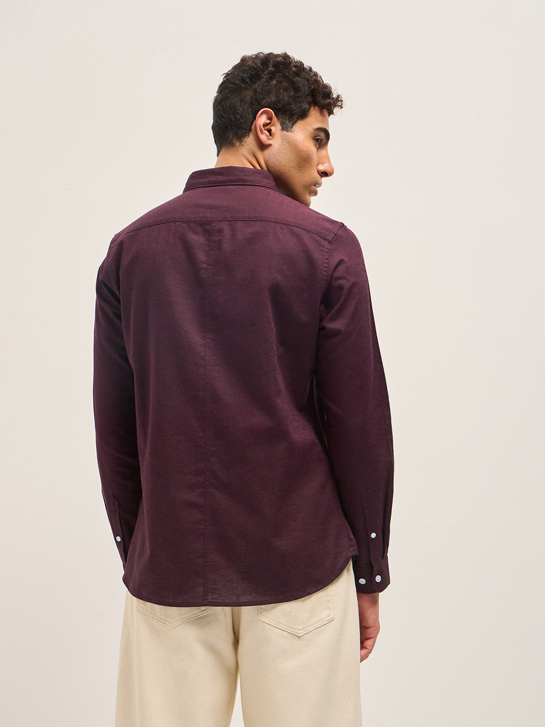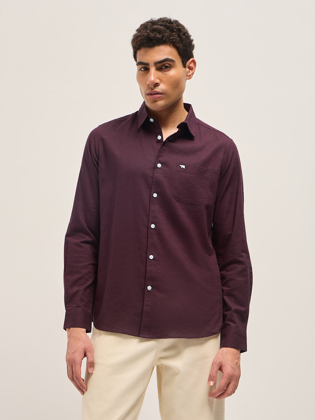 Maroon Cotton Linen Slim Fit Solid Casual Shirt