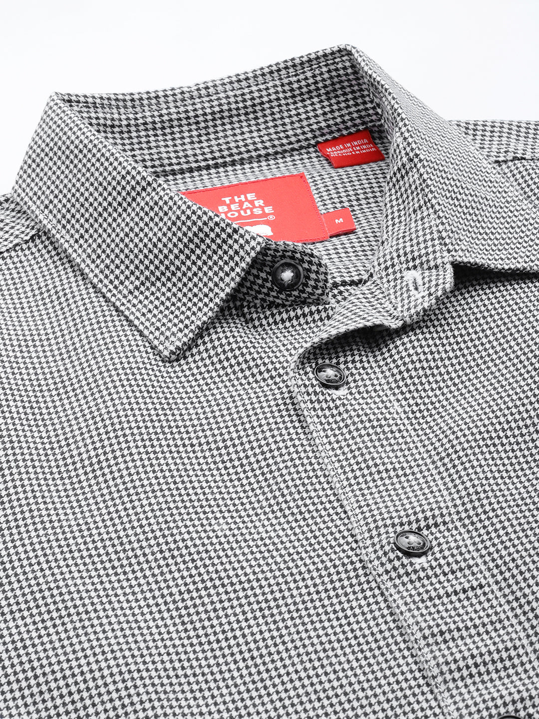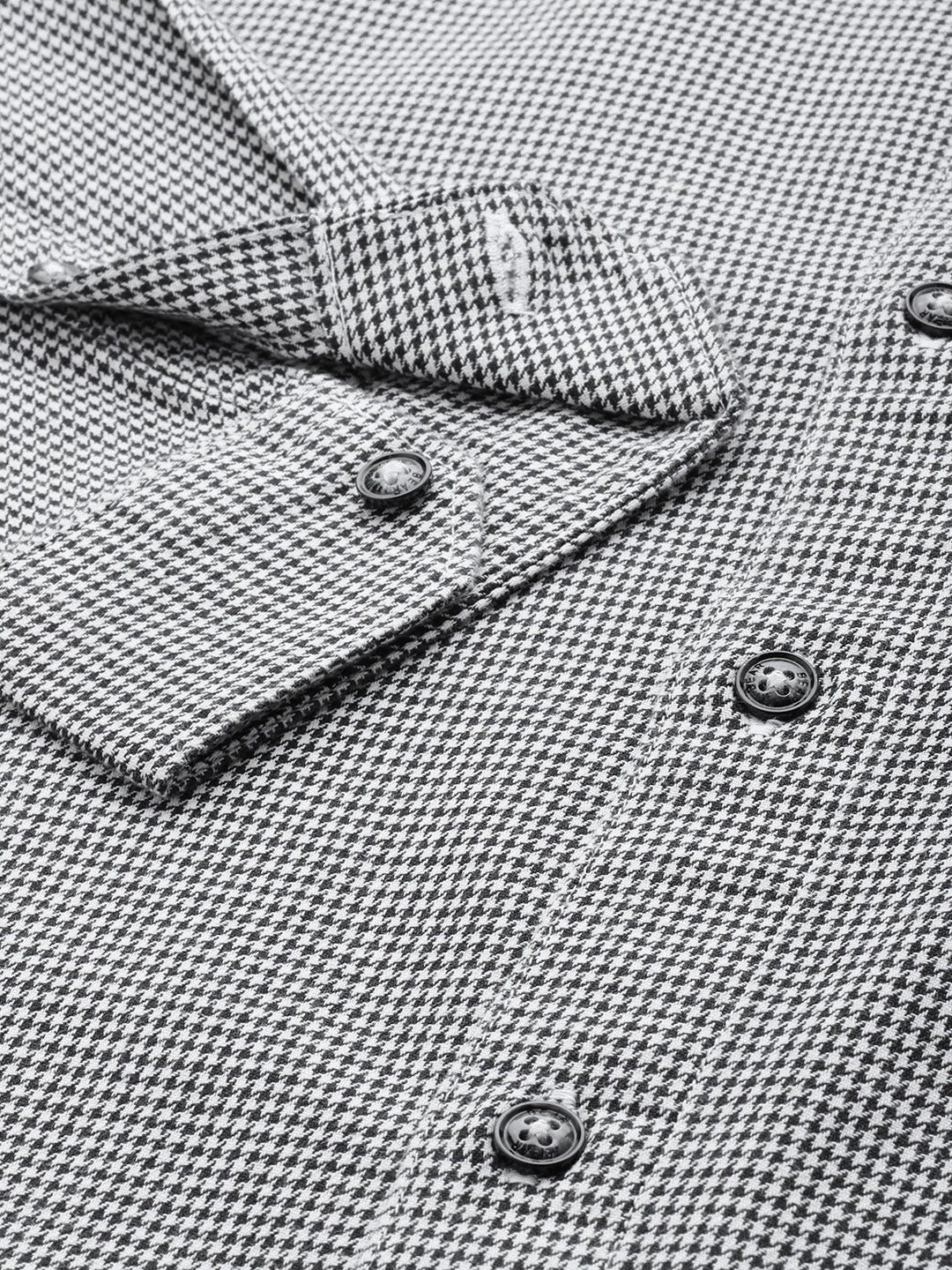 Men Black Hounds tooth Checked Slim Fit Cotton Casual Shirt