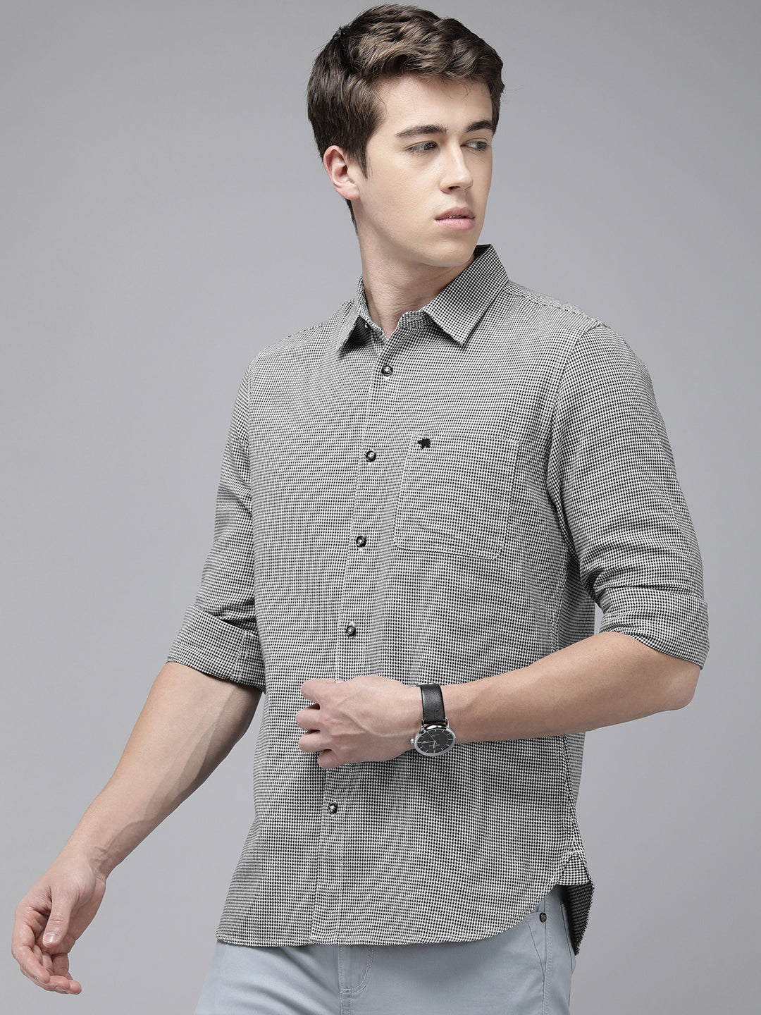 Shop Men Black Hounds tooth Checked Slim Fit Cotton Casual Shirt Online