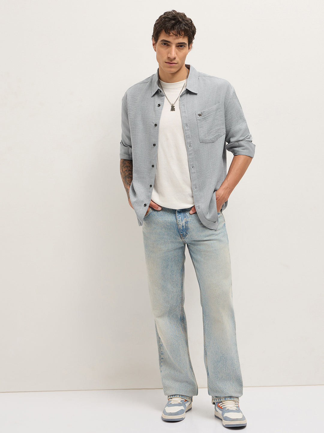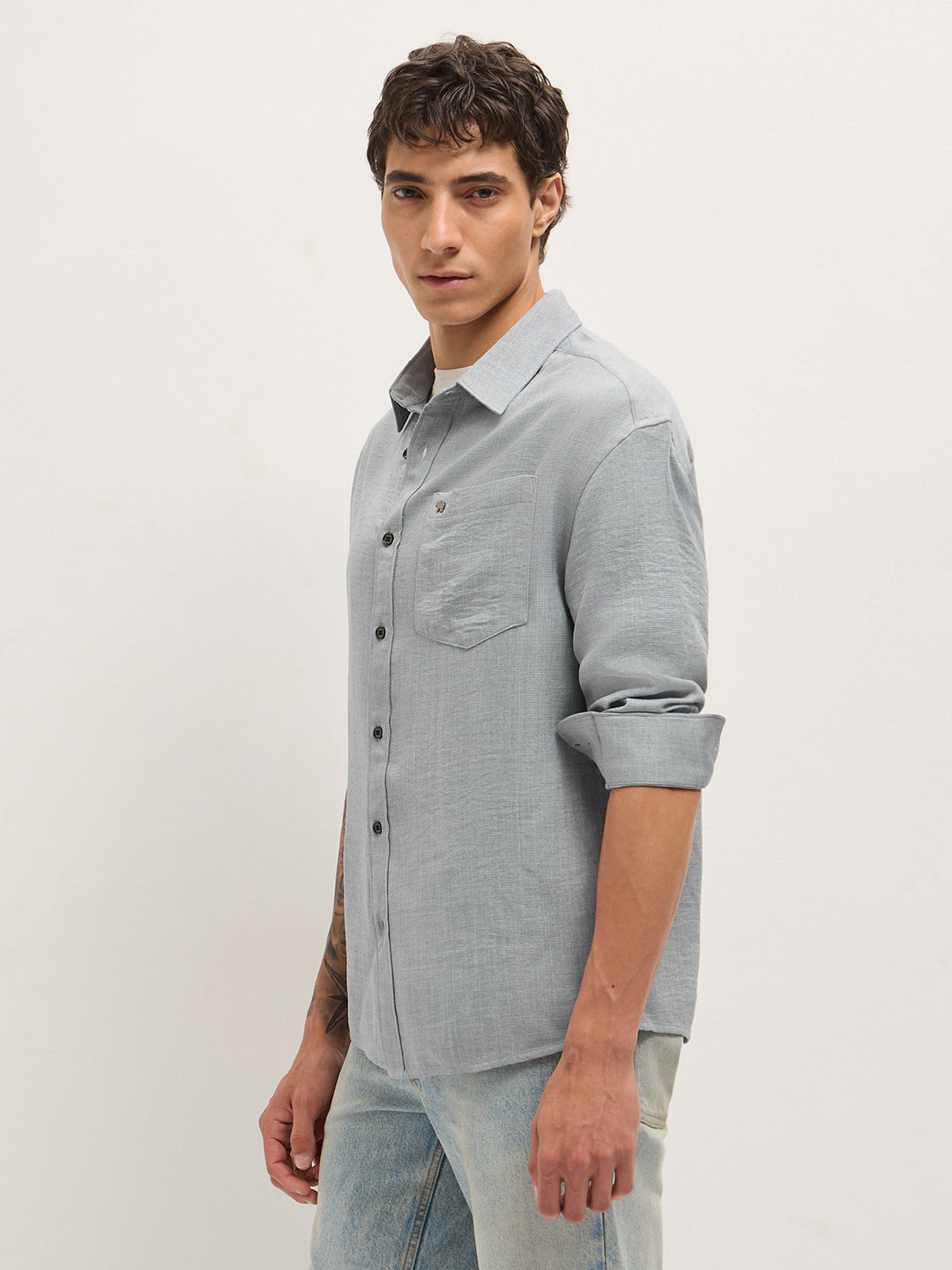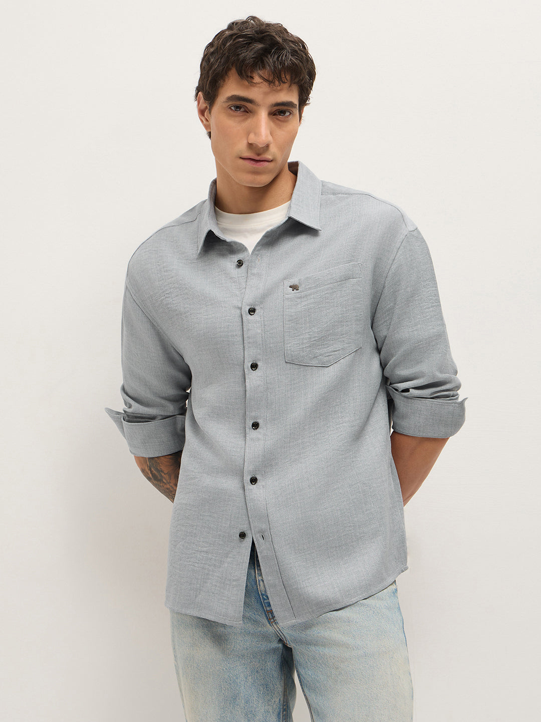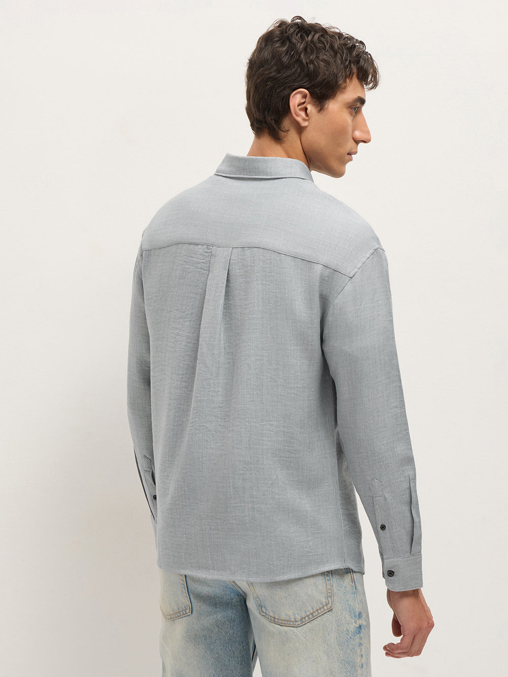 Light Blue Textured Relaxed Fit Casual Shirt