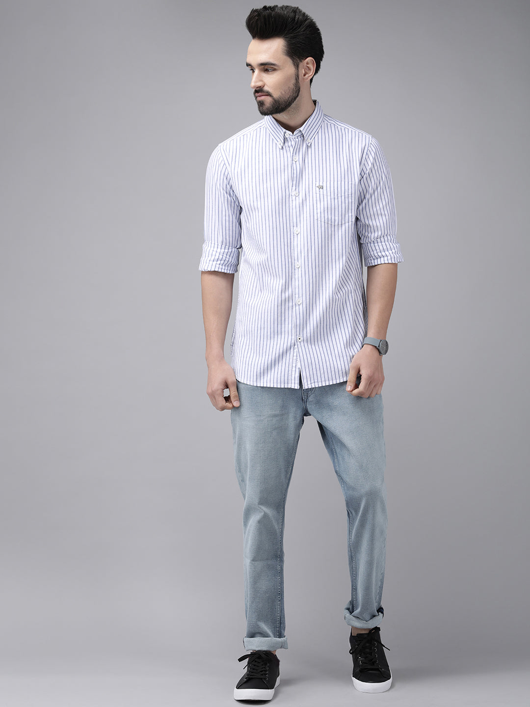 Men Striped Button-Down Casual Shirt