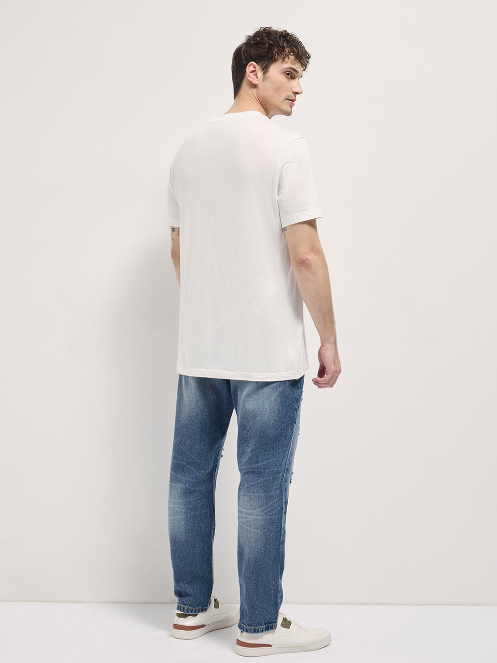 Mid Blue with Light Fade Distressed Mid-Rise Relaxed Fit Jeans
