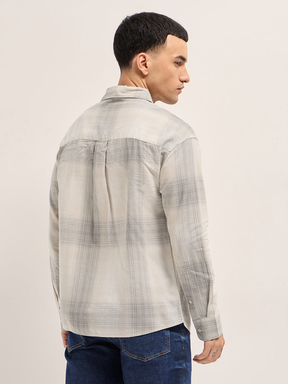Grey Woven Checkered Relaxed Fit Casual Shirt