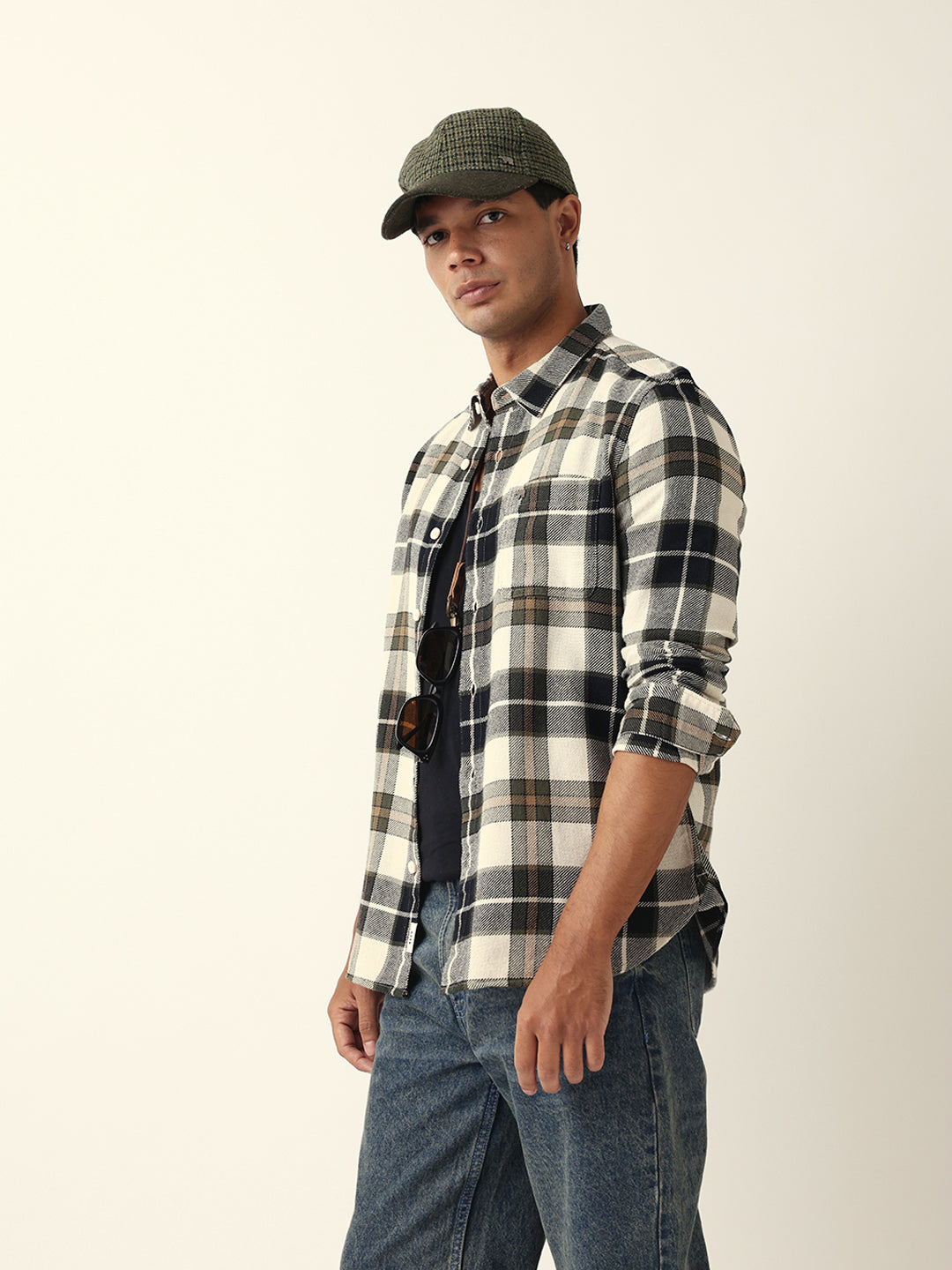 Shop Multicolour Flannel Check Slim Fit Casual Shirt Online.