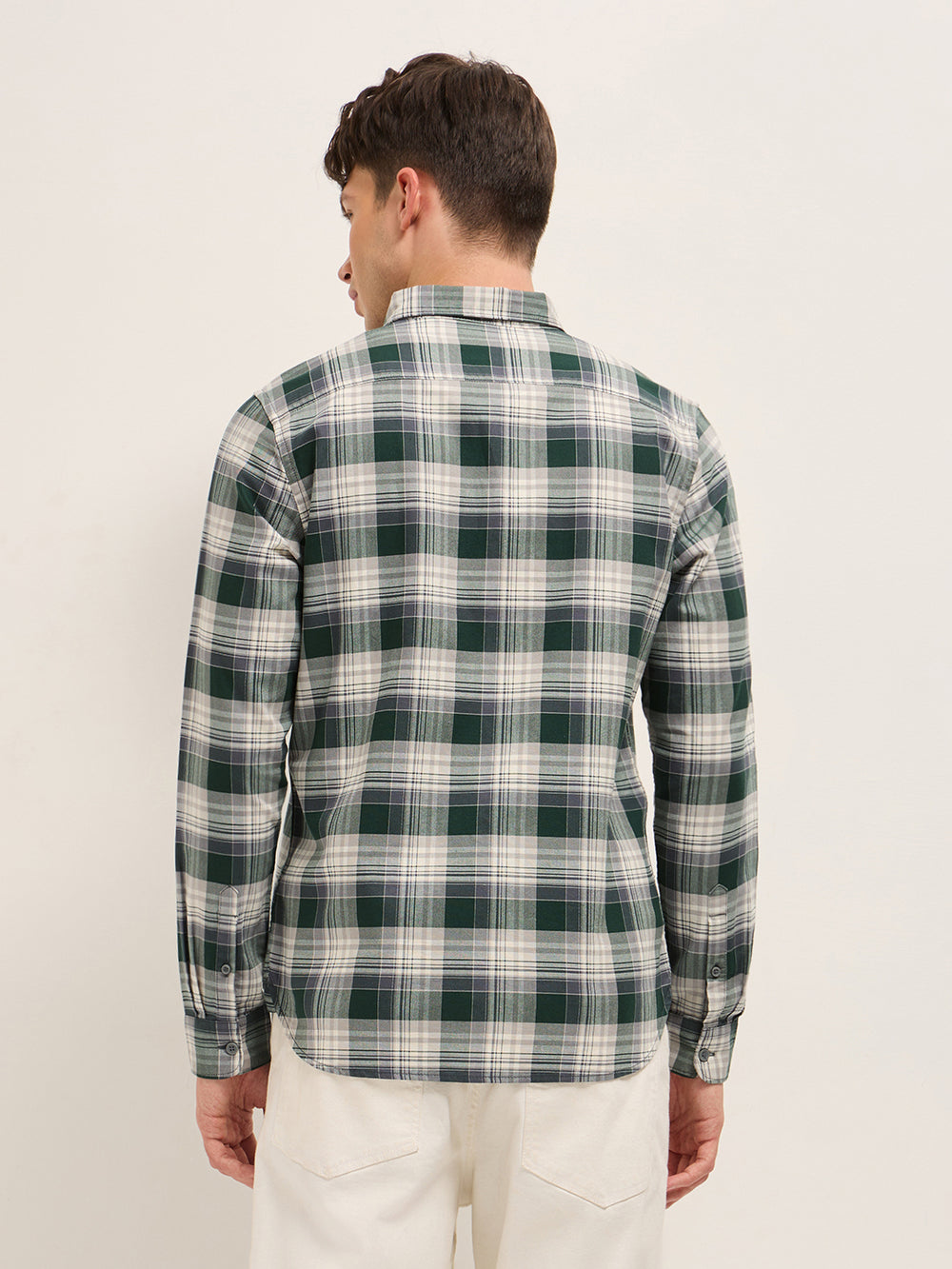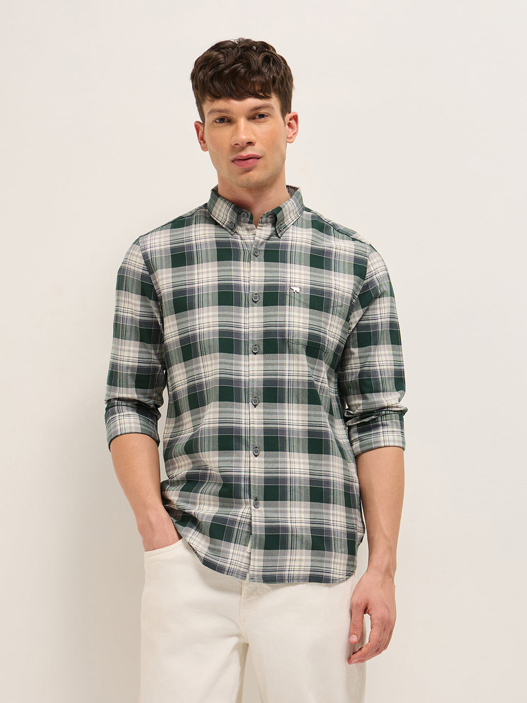 Multicolor Checked Slim Fit Casual Shirt with Button-Down Collar