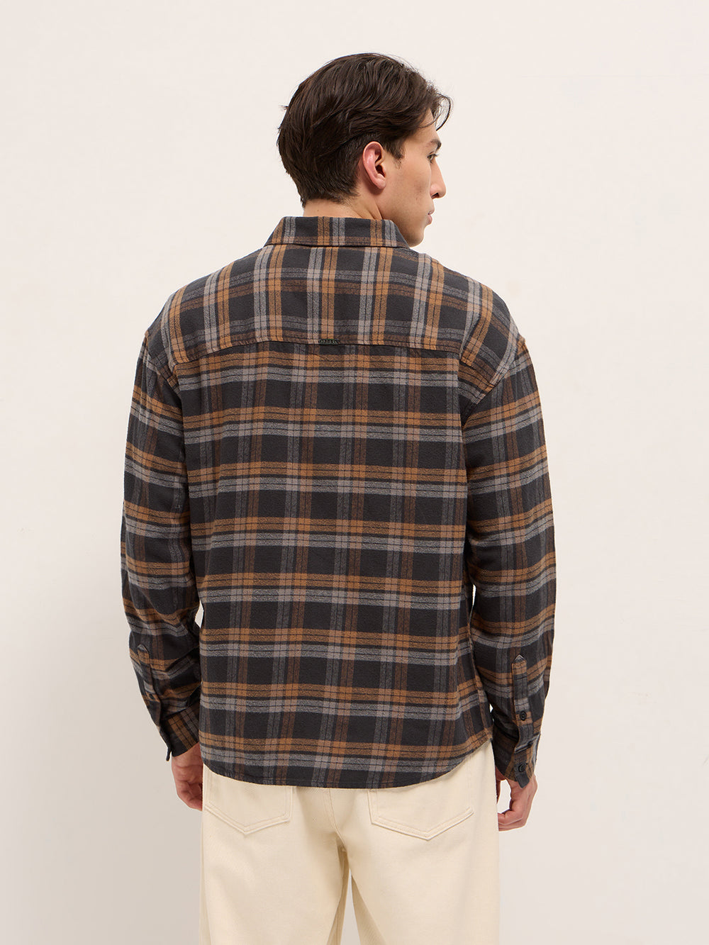 Shop Brown Woven Checked Design Relax Fit Overshirt Online.