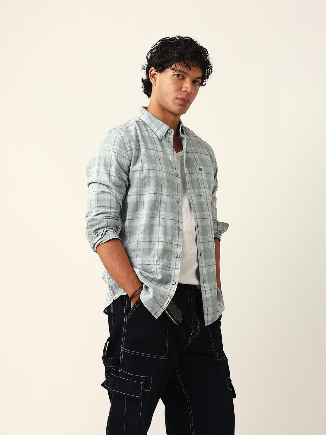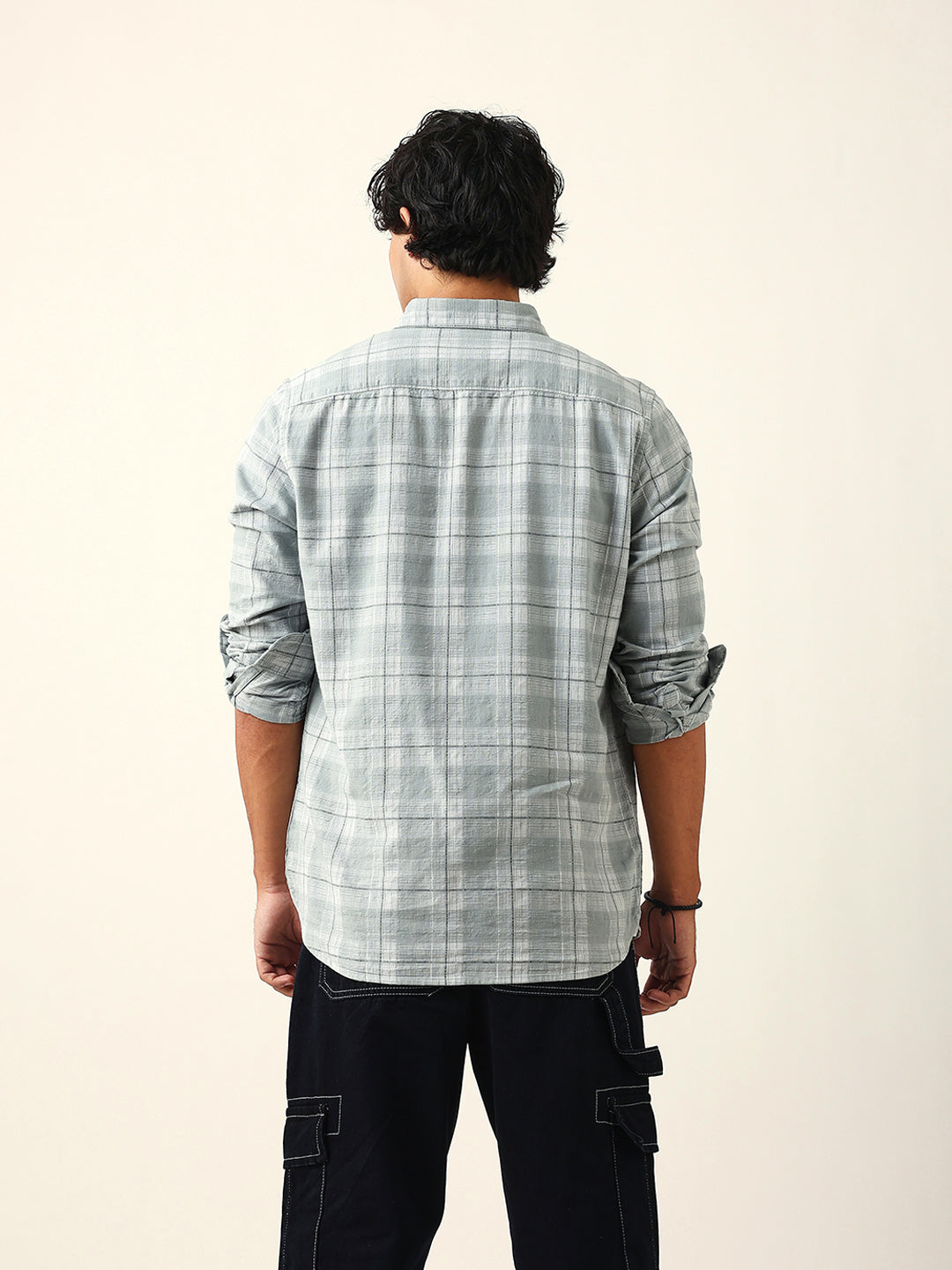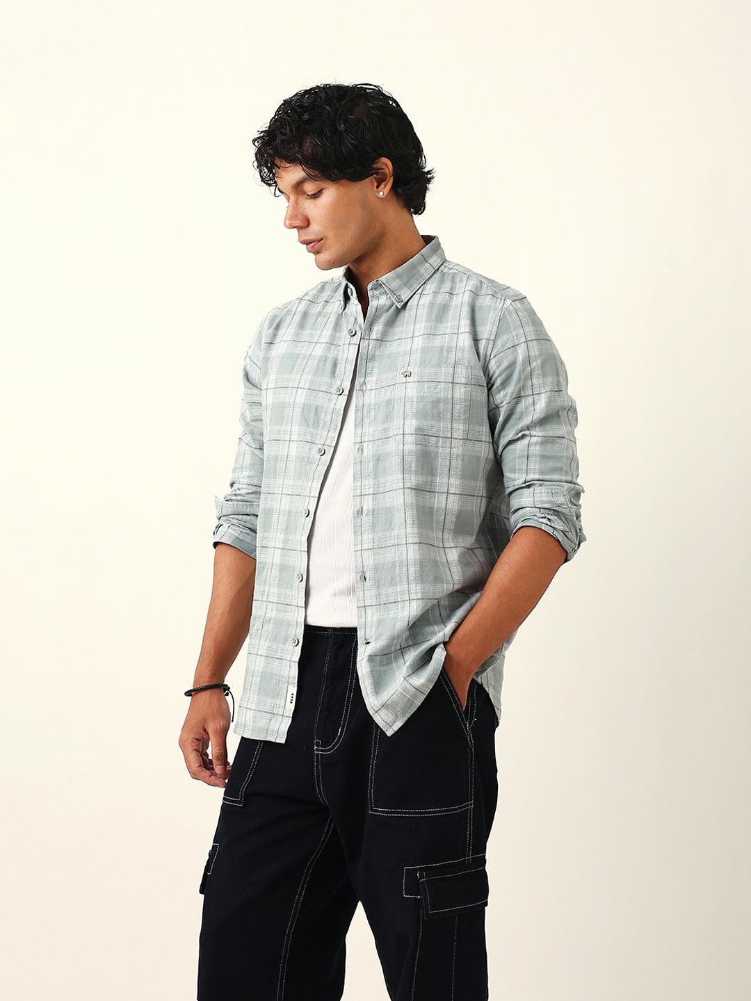 Shop Light Green & White Woven Checked Slim Fit Casual Shirt Online.