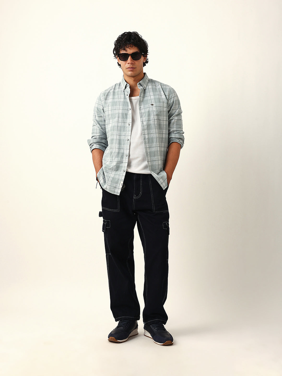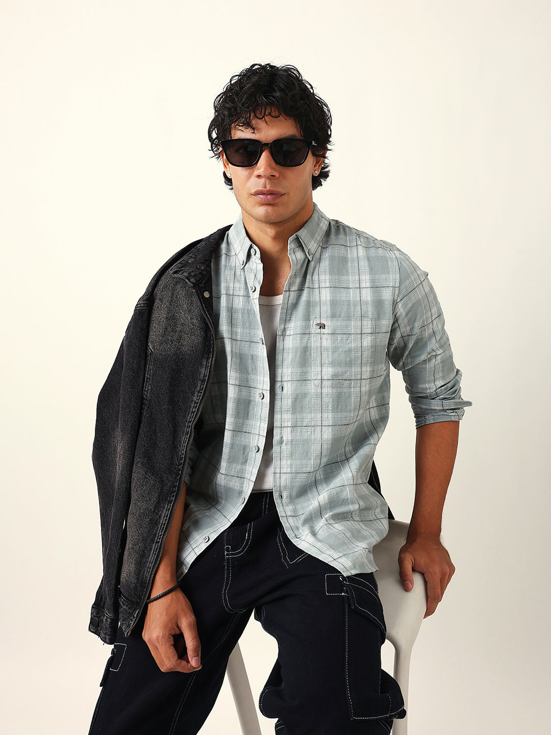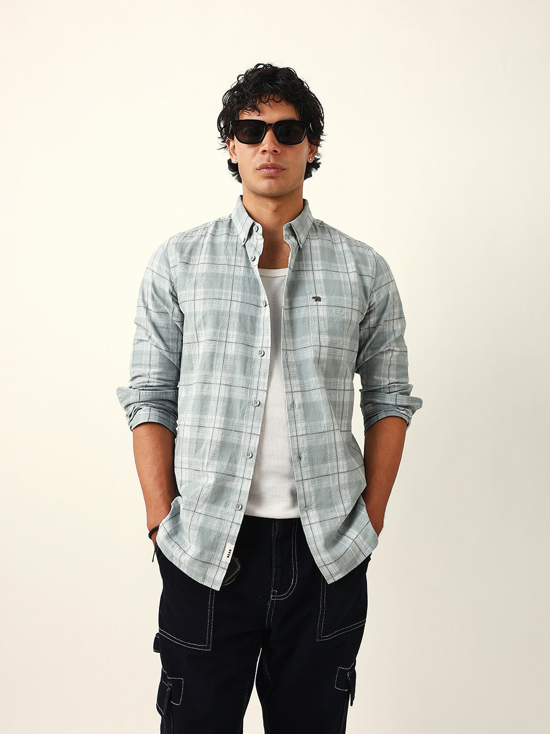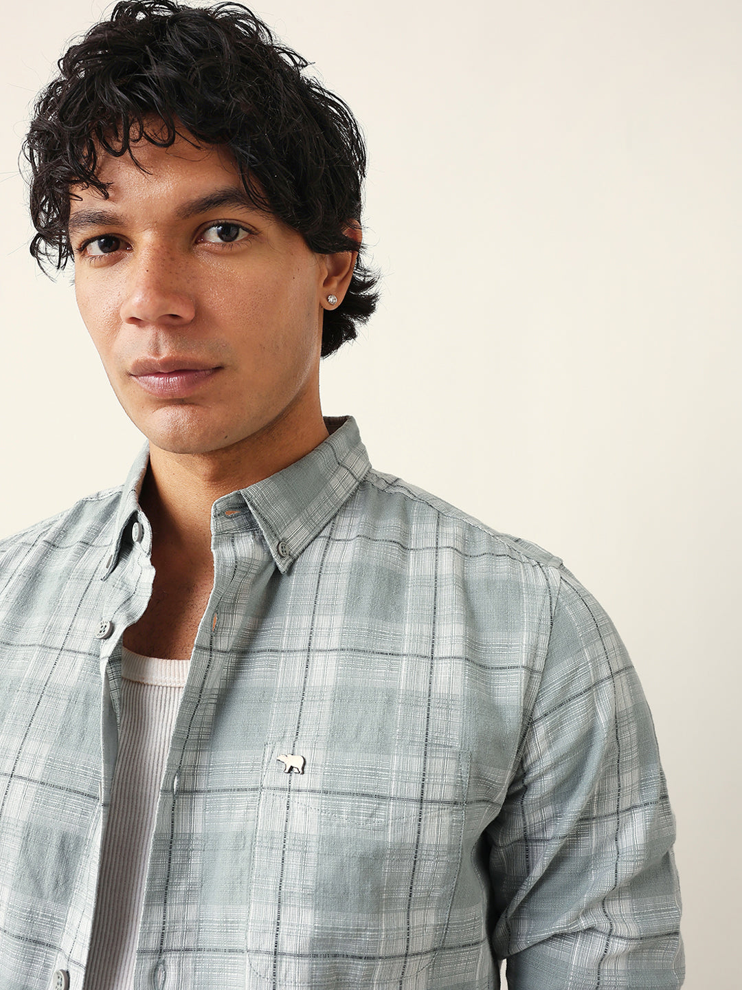 Shop Light Green & White Woven Checked Slim Fit Casual Shirt Online.