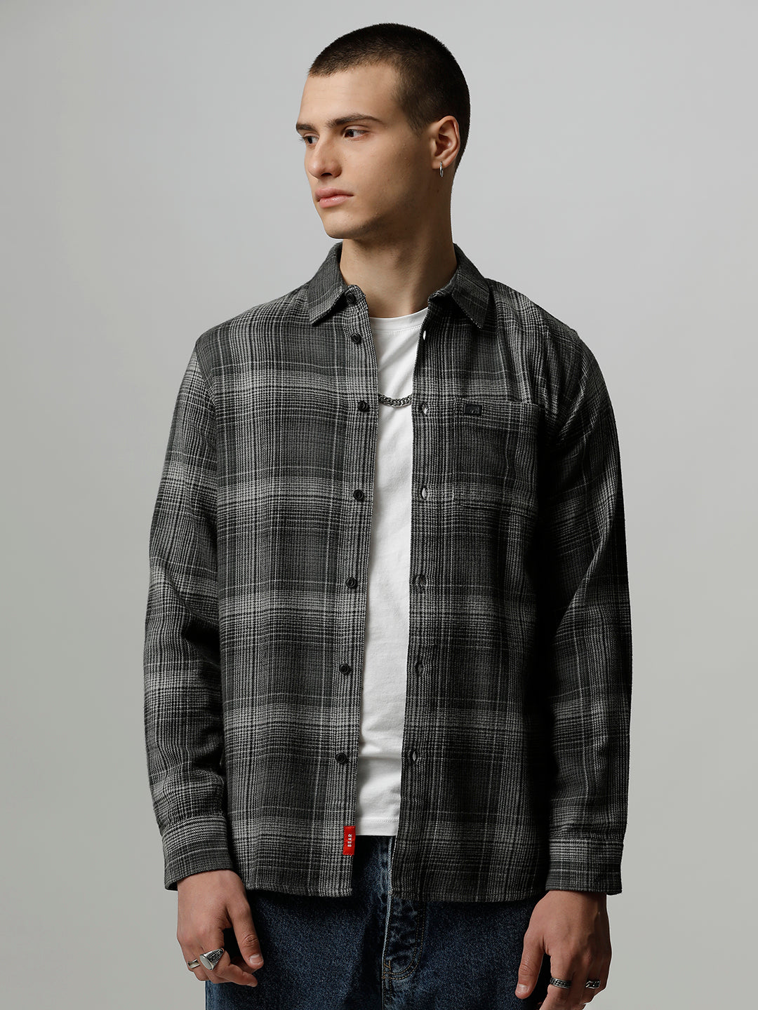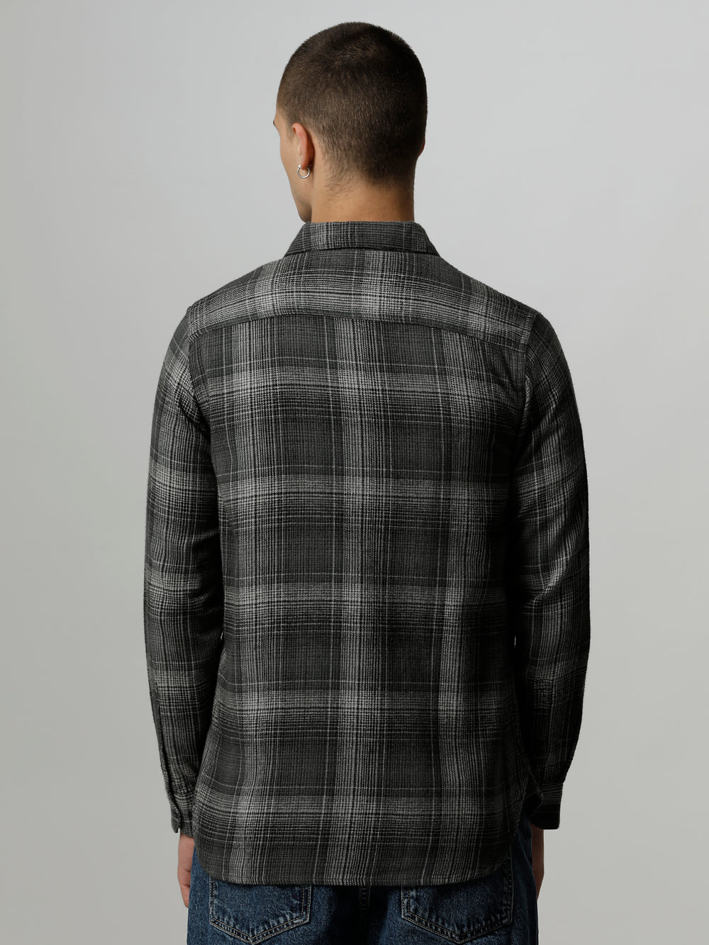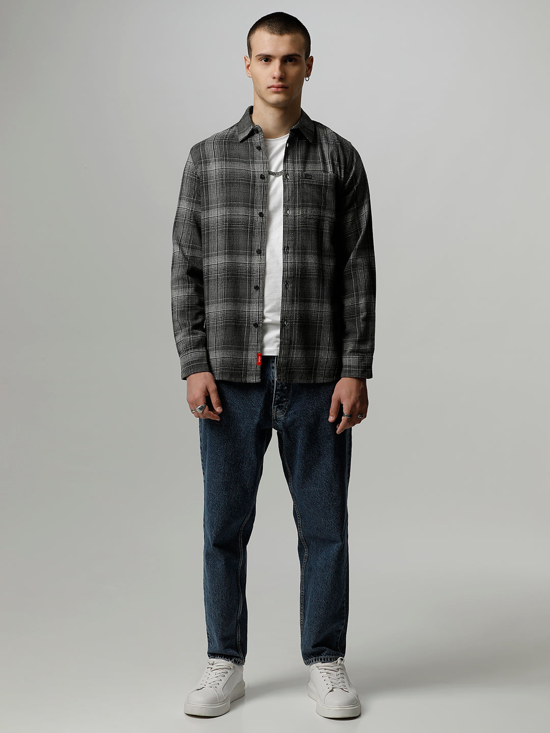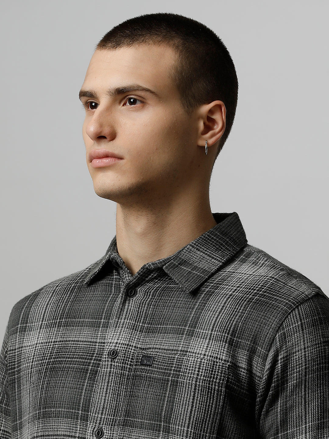 Men Grey Checked Slim Fit Flannel Cotton Casual Shirt