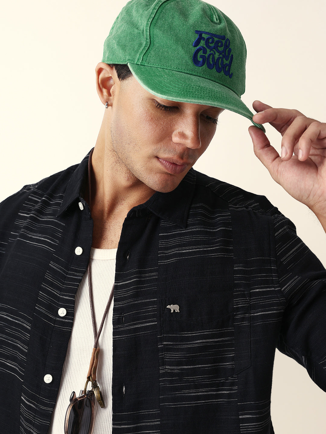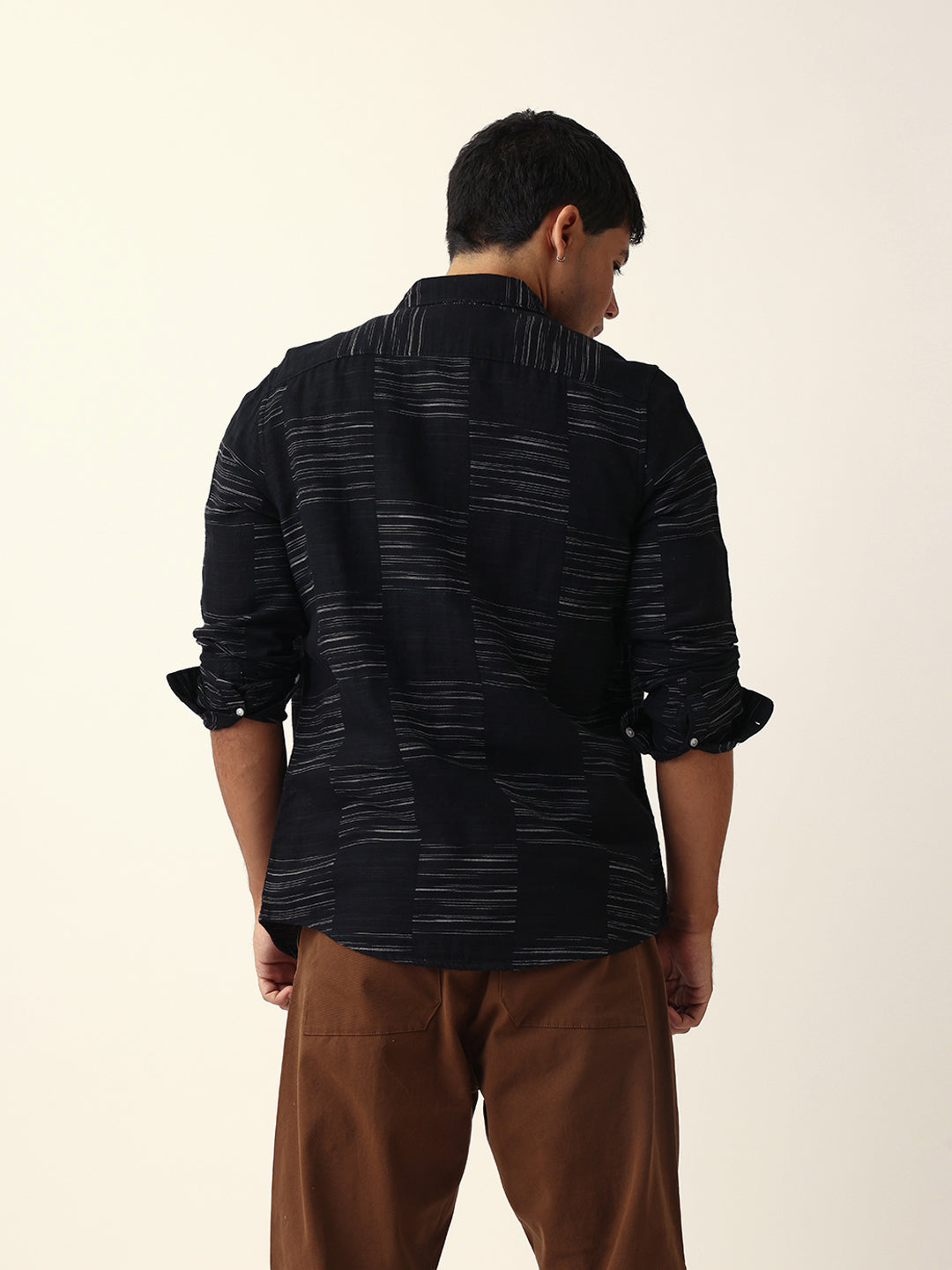 Black Woven Patch Block Check Slim Fit Casual Shirt