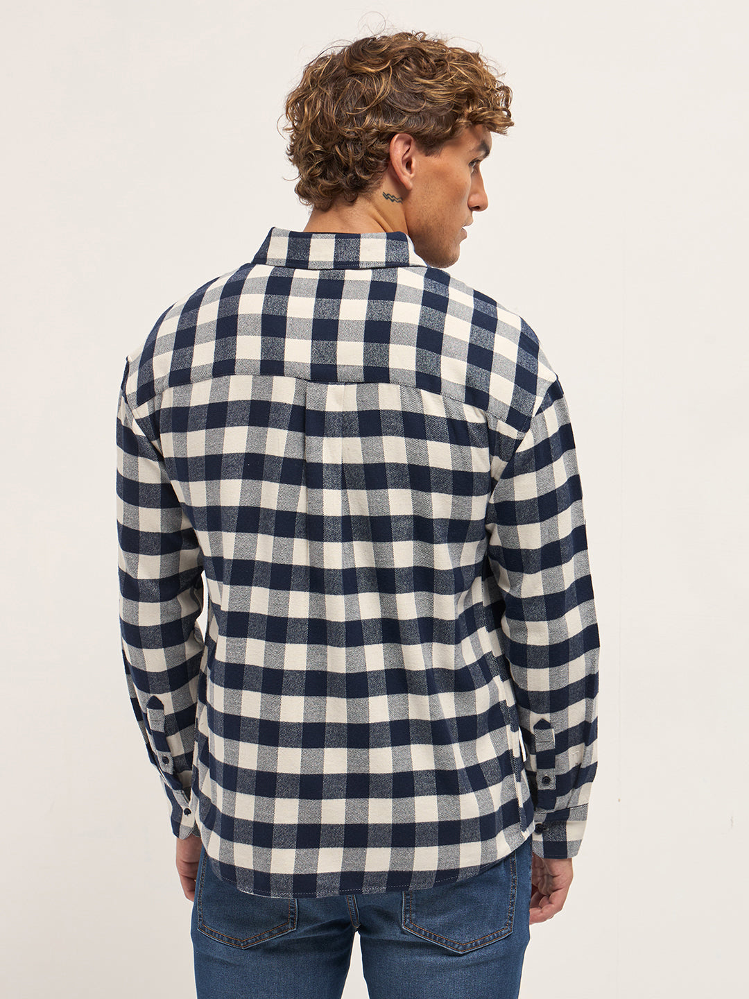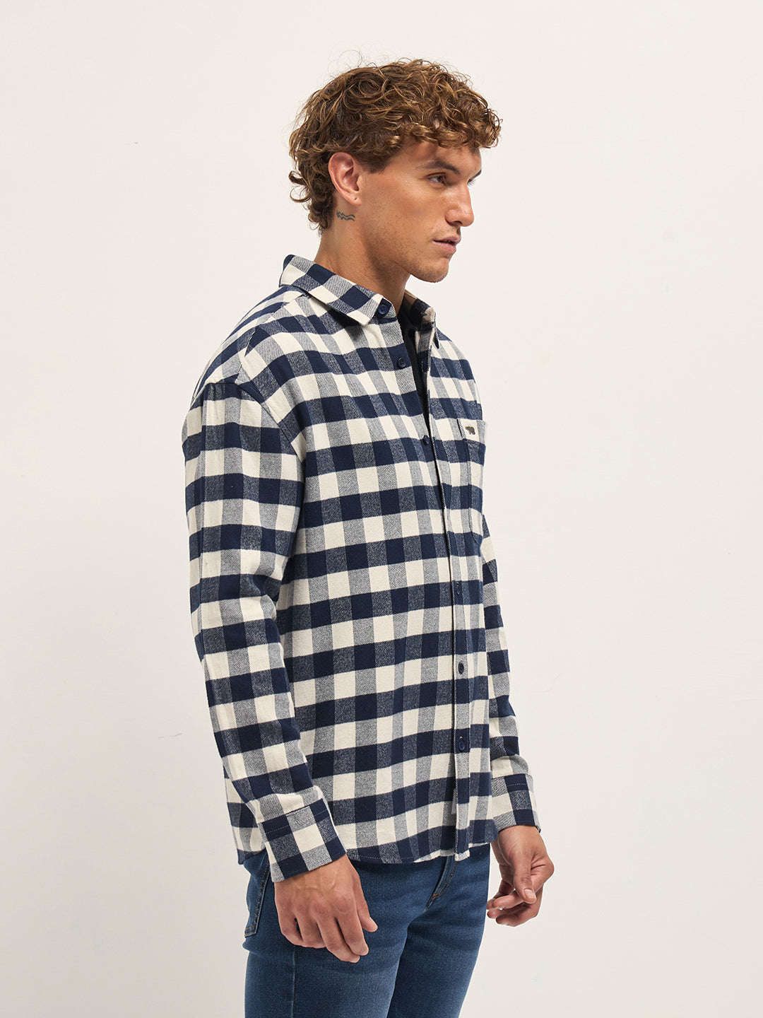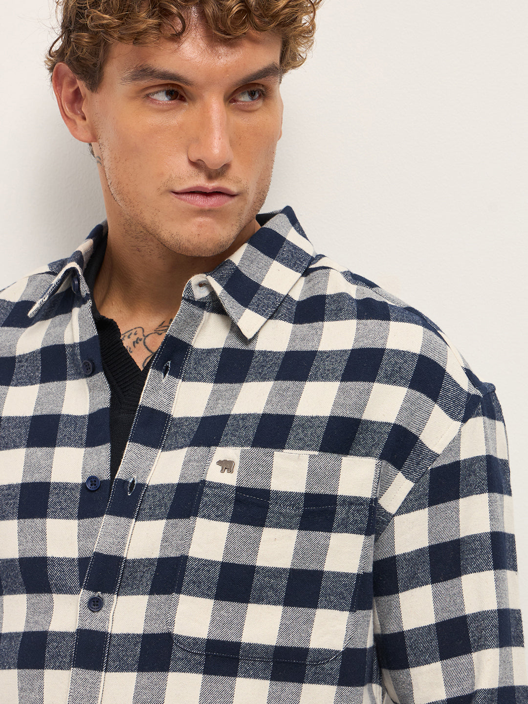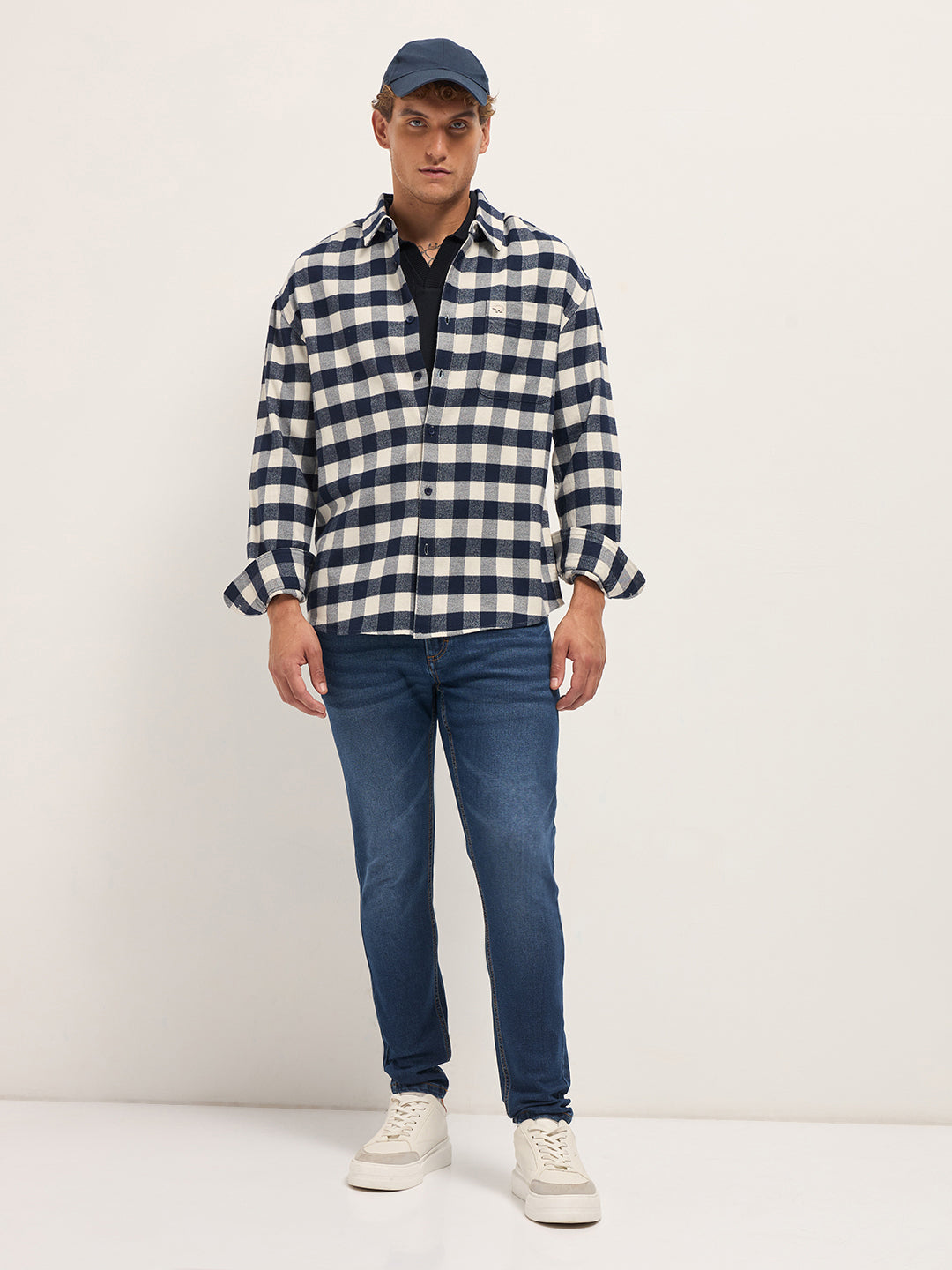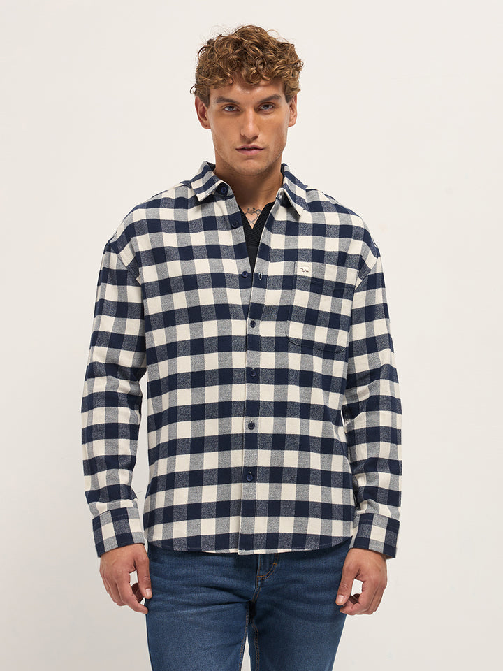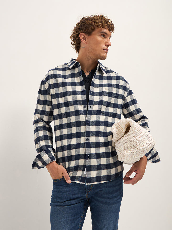 Blue and White Checked Cotton Relaxed Fit Casual Shirt
