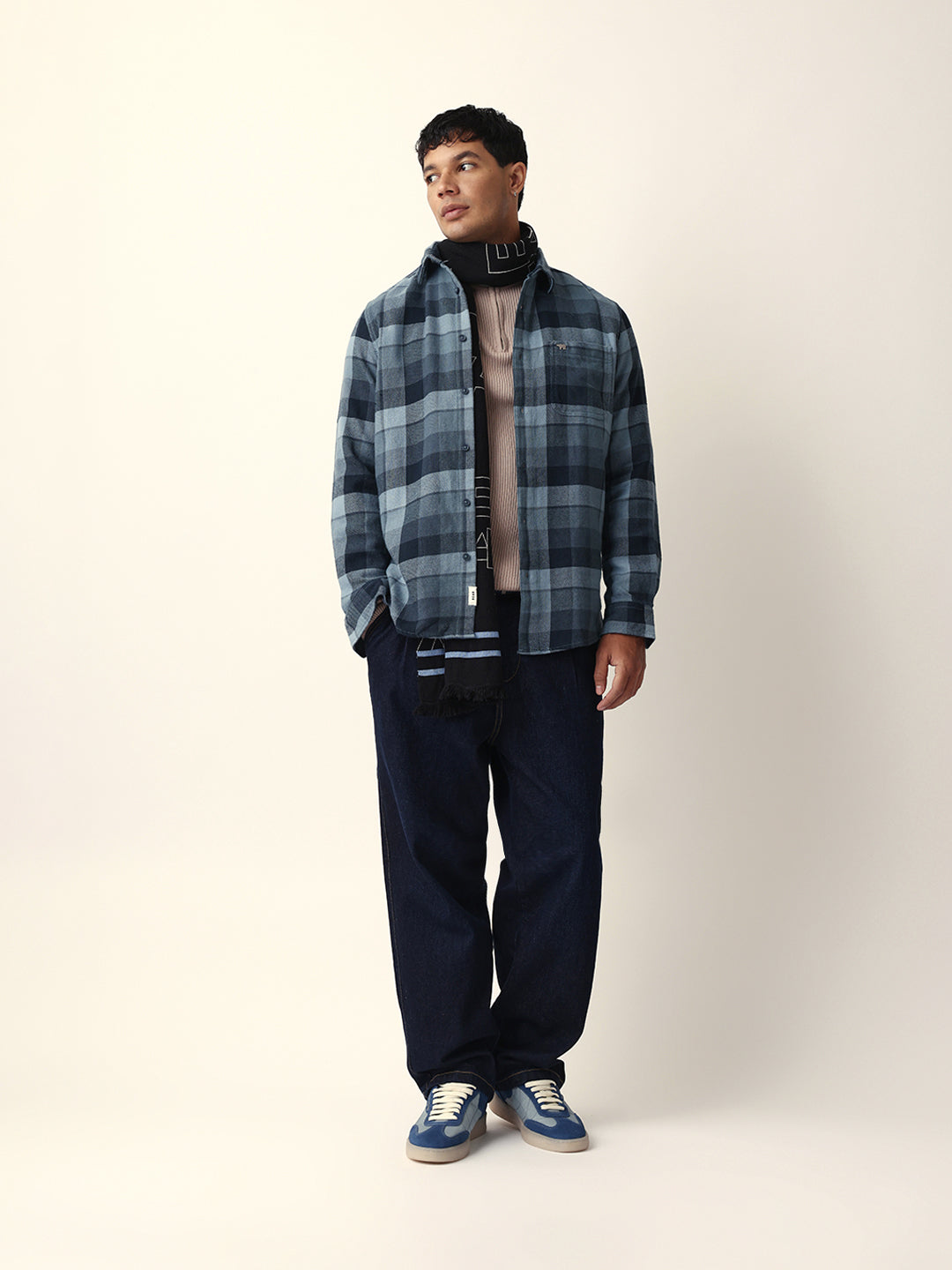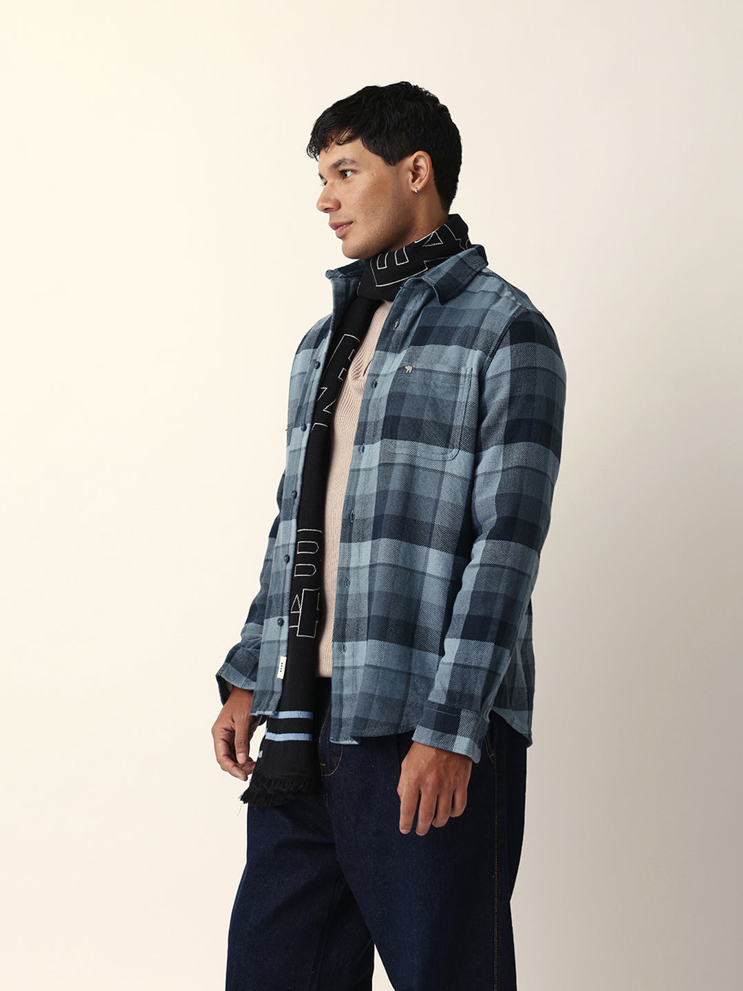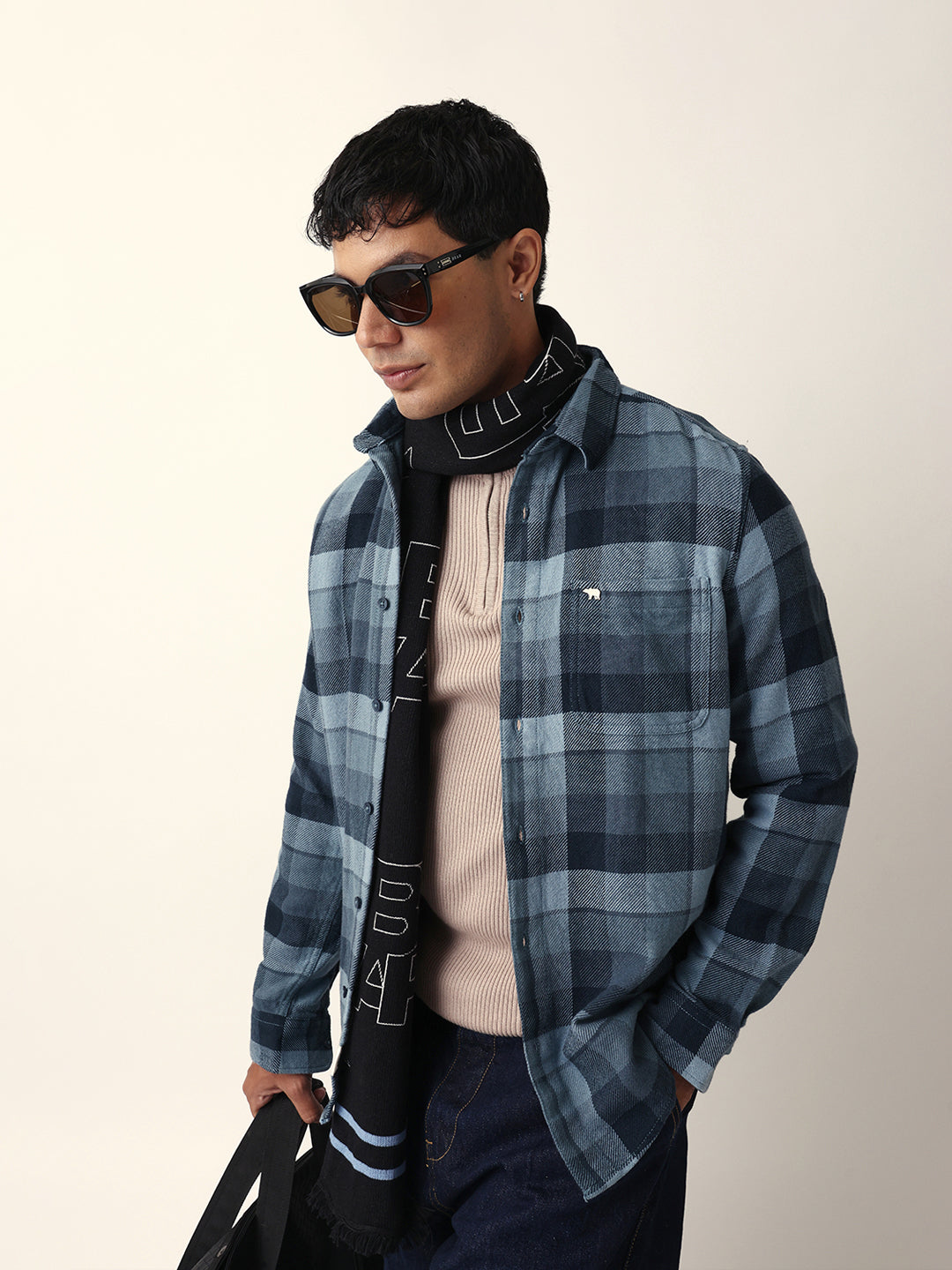 Shop Blue Flannel Checked Regular Fit Casual Shirt Online.