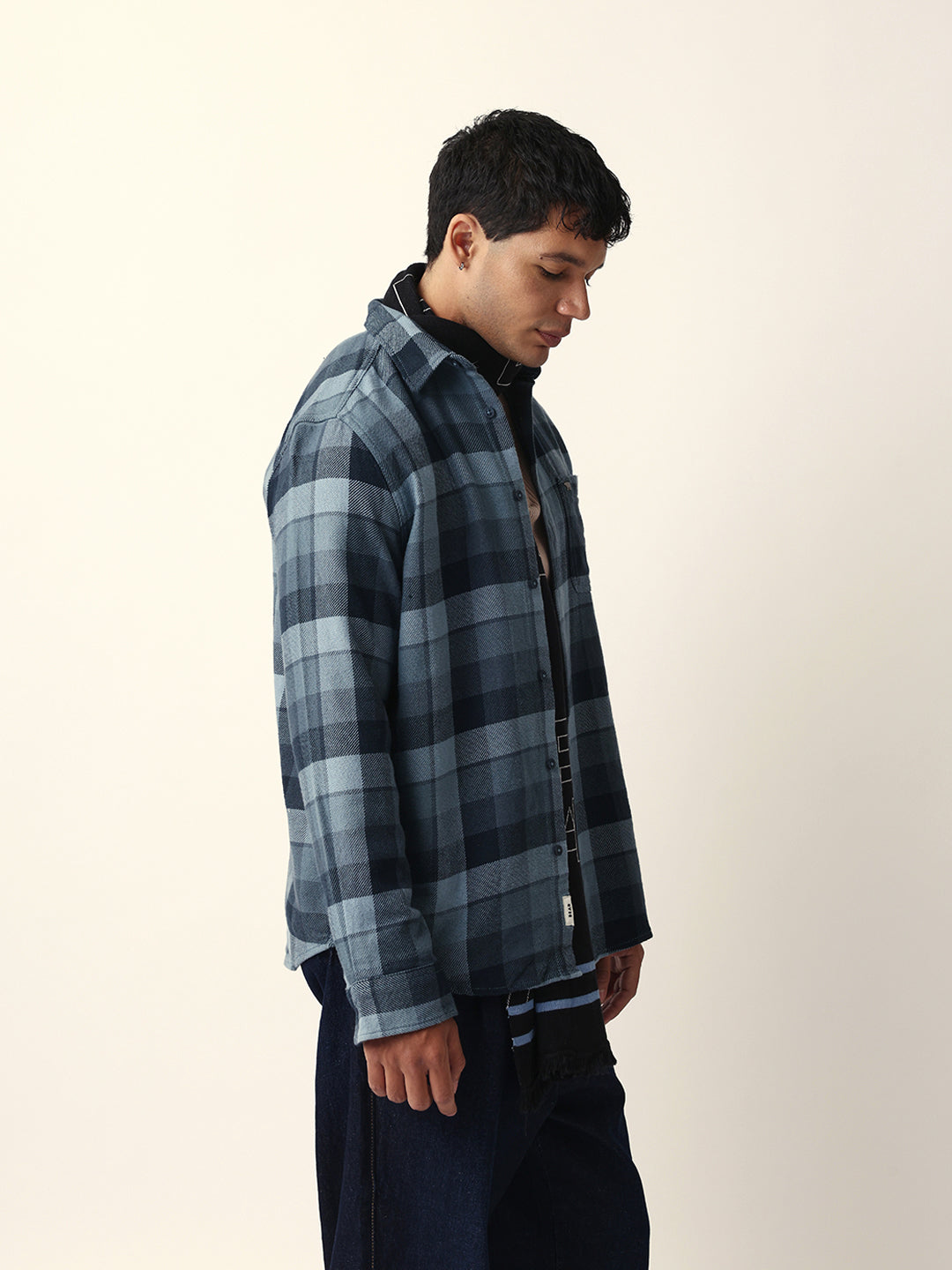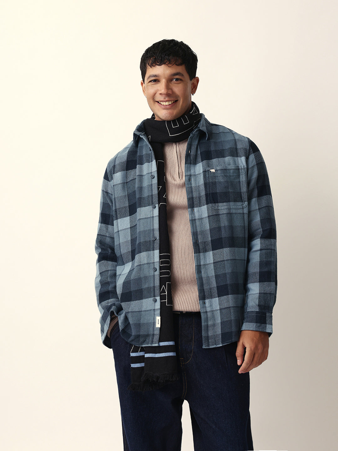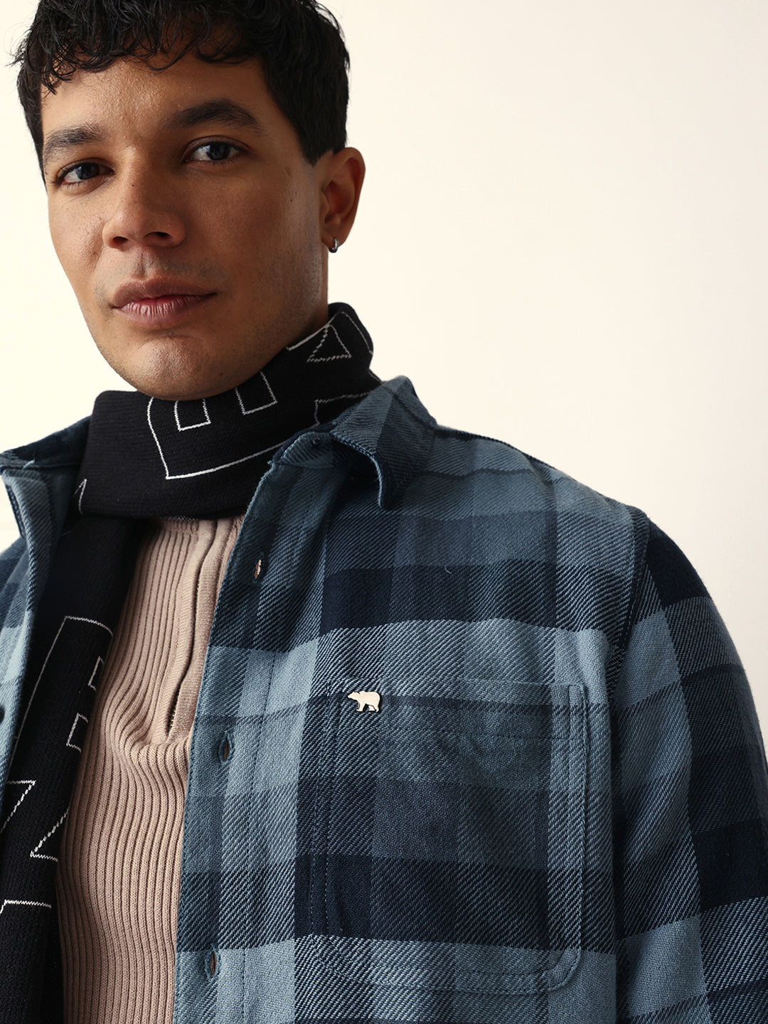 Shop Blue Flannel Checked Regular Fit Casual Shirt Online.