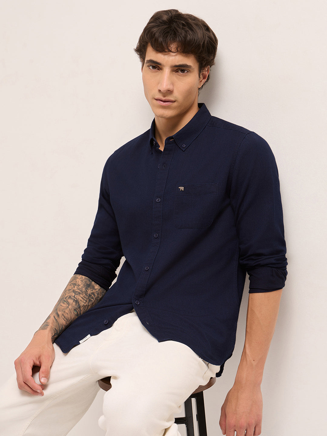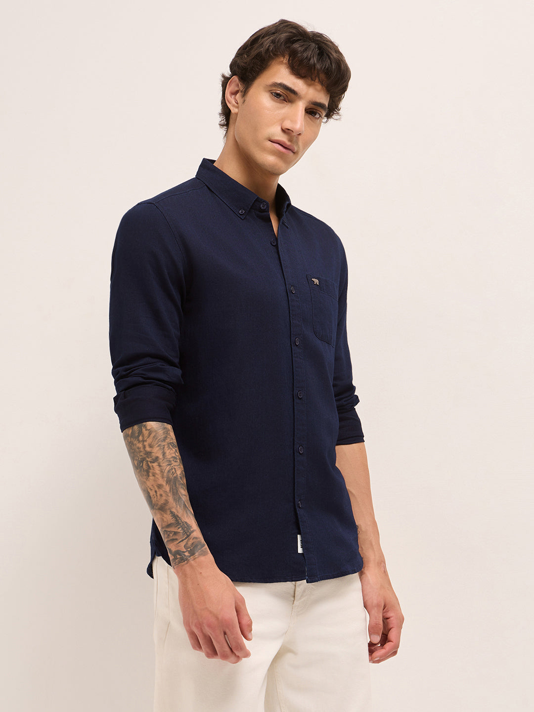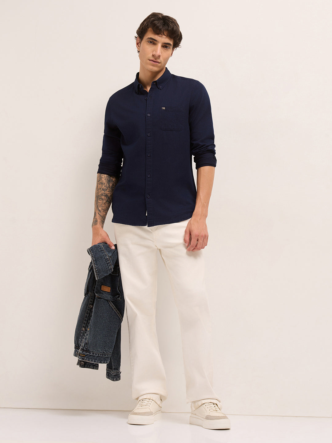 Shop Blue Solid Slim Fit Cotton Casual Shirt Online.