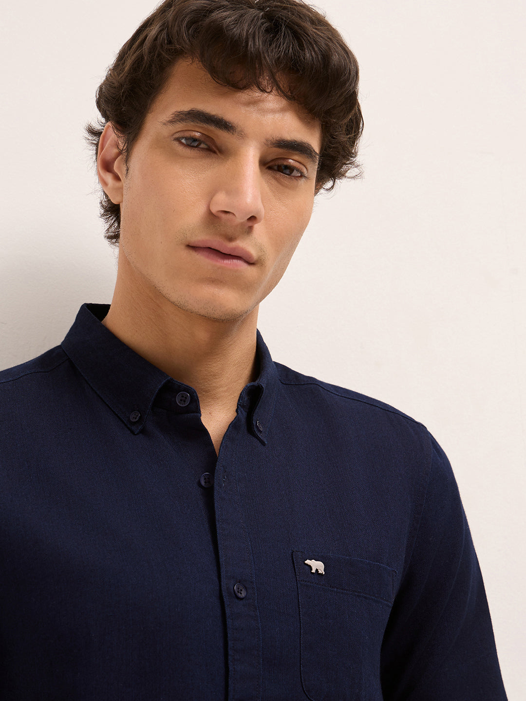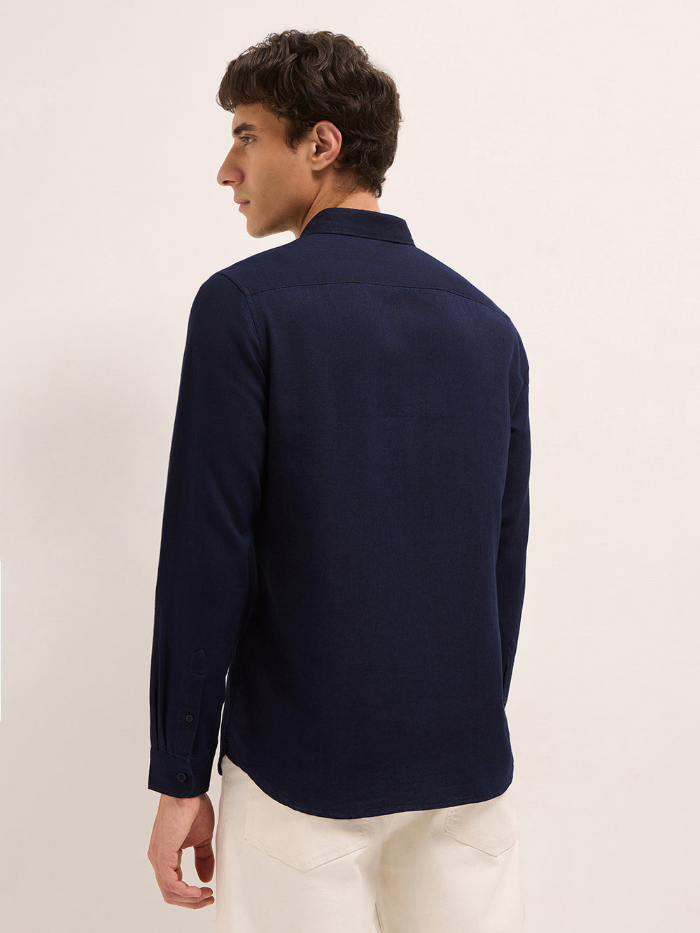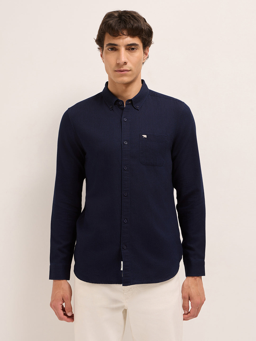 Shop Blue Solid Slim Fit Cotton Casual Shirt Online.