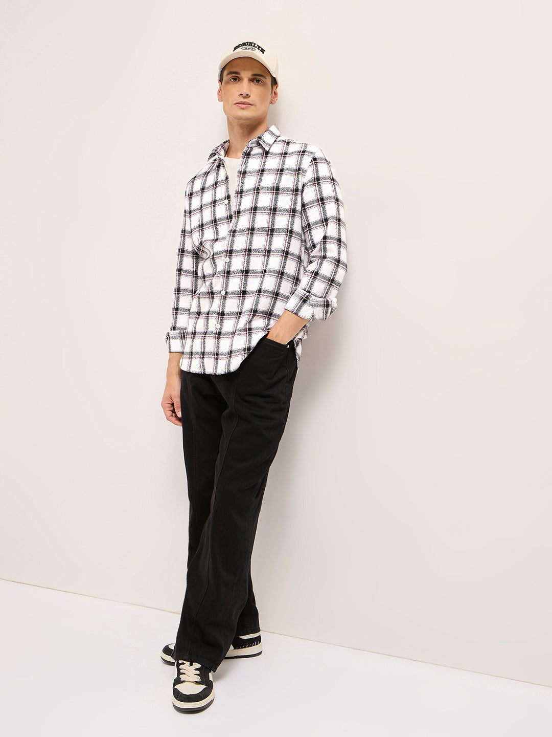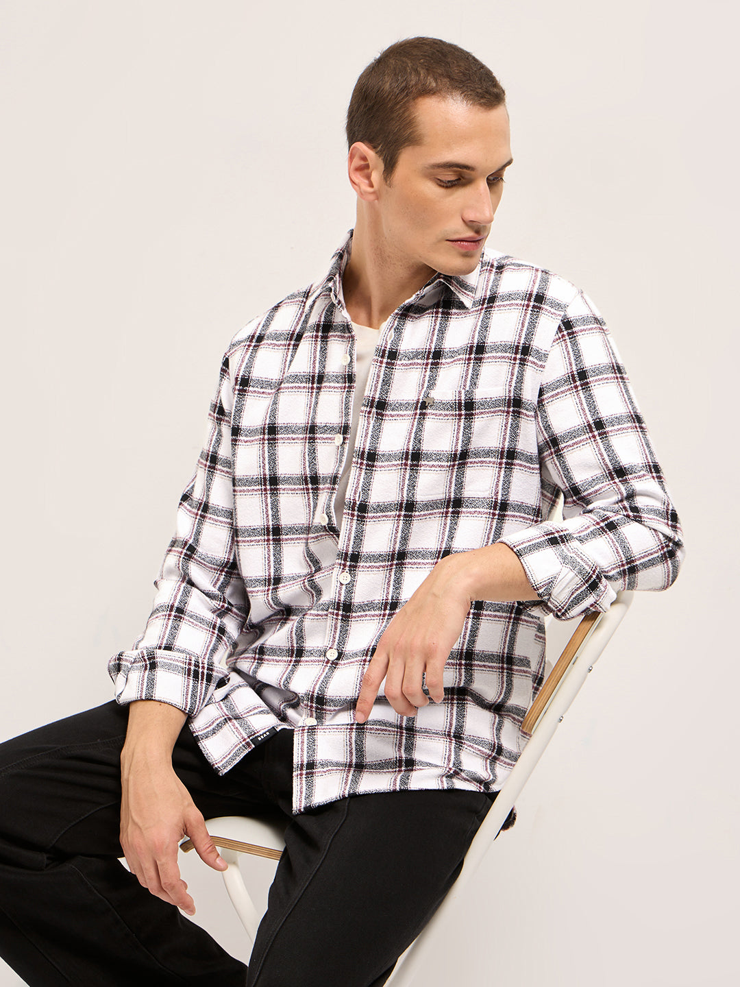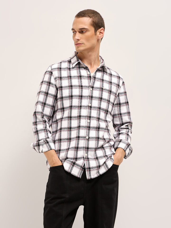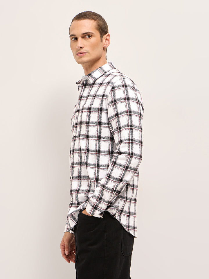 White Tartan Checked Flannel Slim Fit Casual Shirt