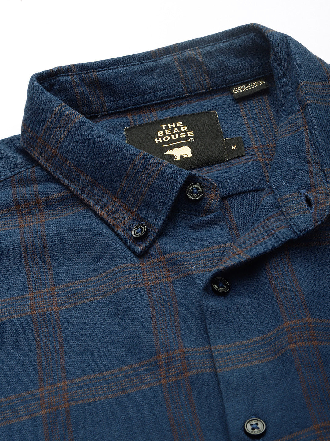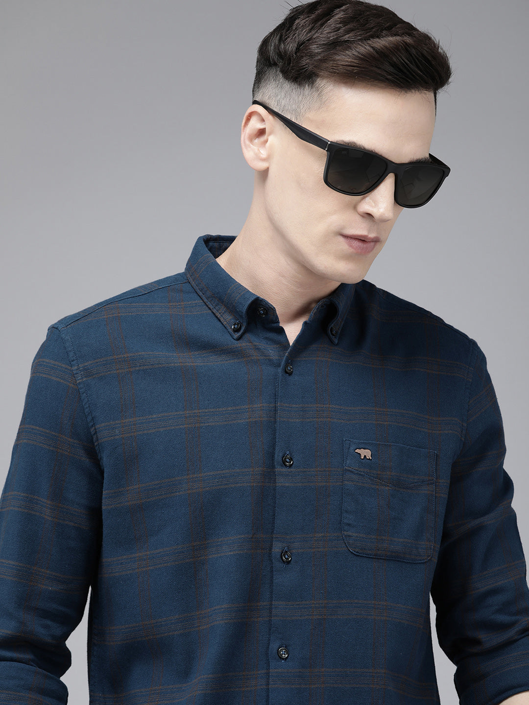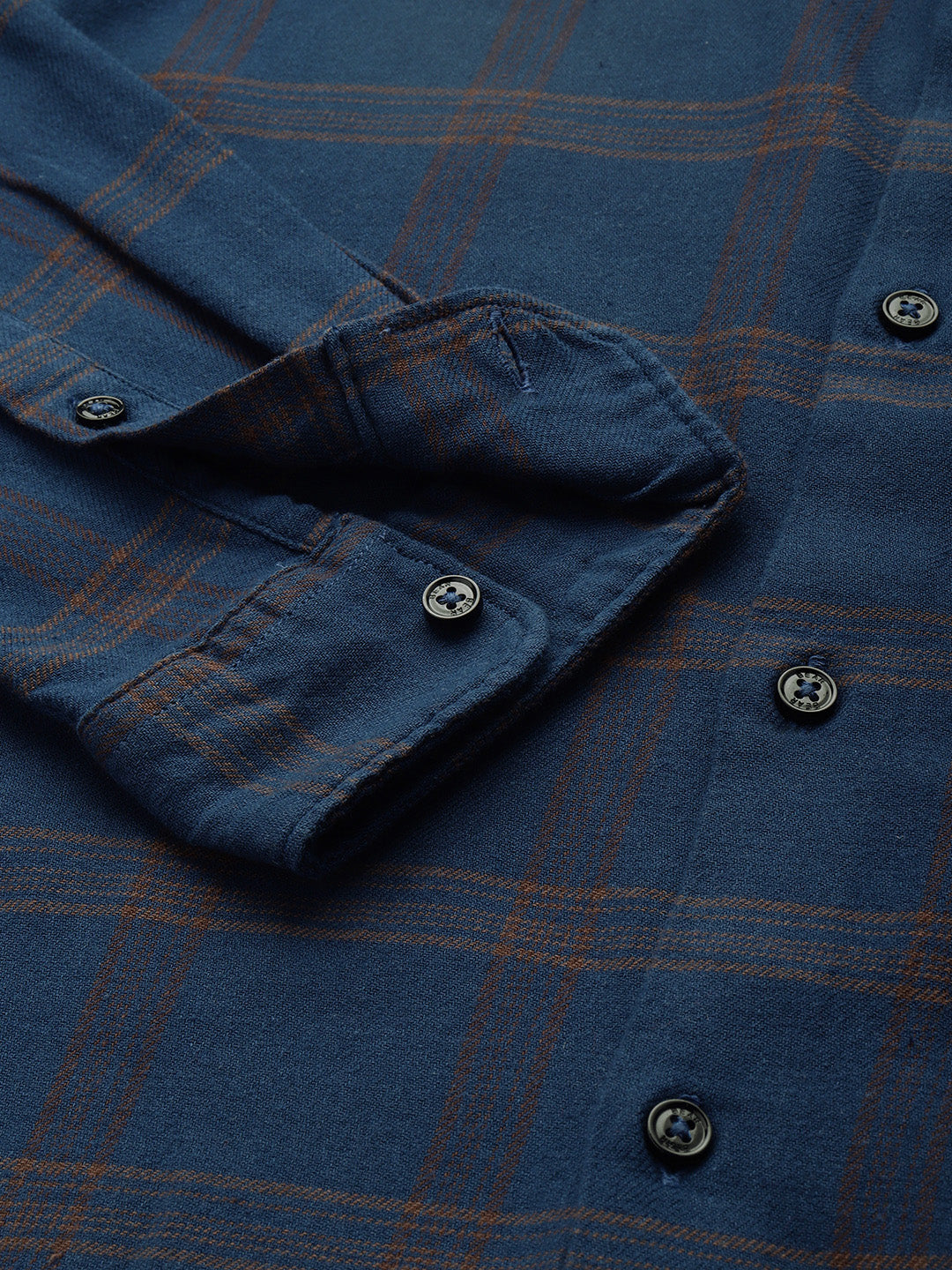 Men Blue Checked Slim Fit Cotton Casual Shirt