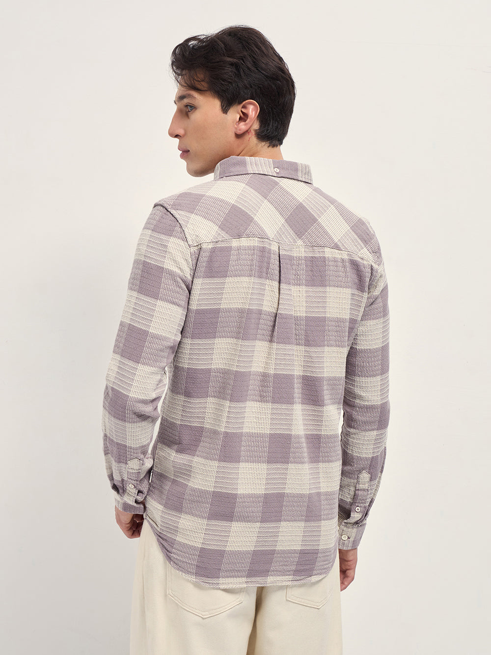 Shop Purple With Cream Textured Check Slim Fit Casual Shirt Online.