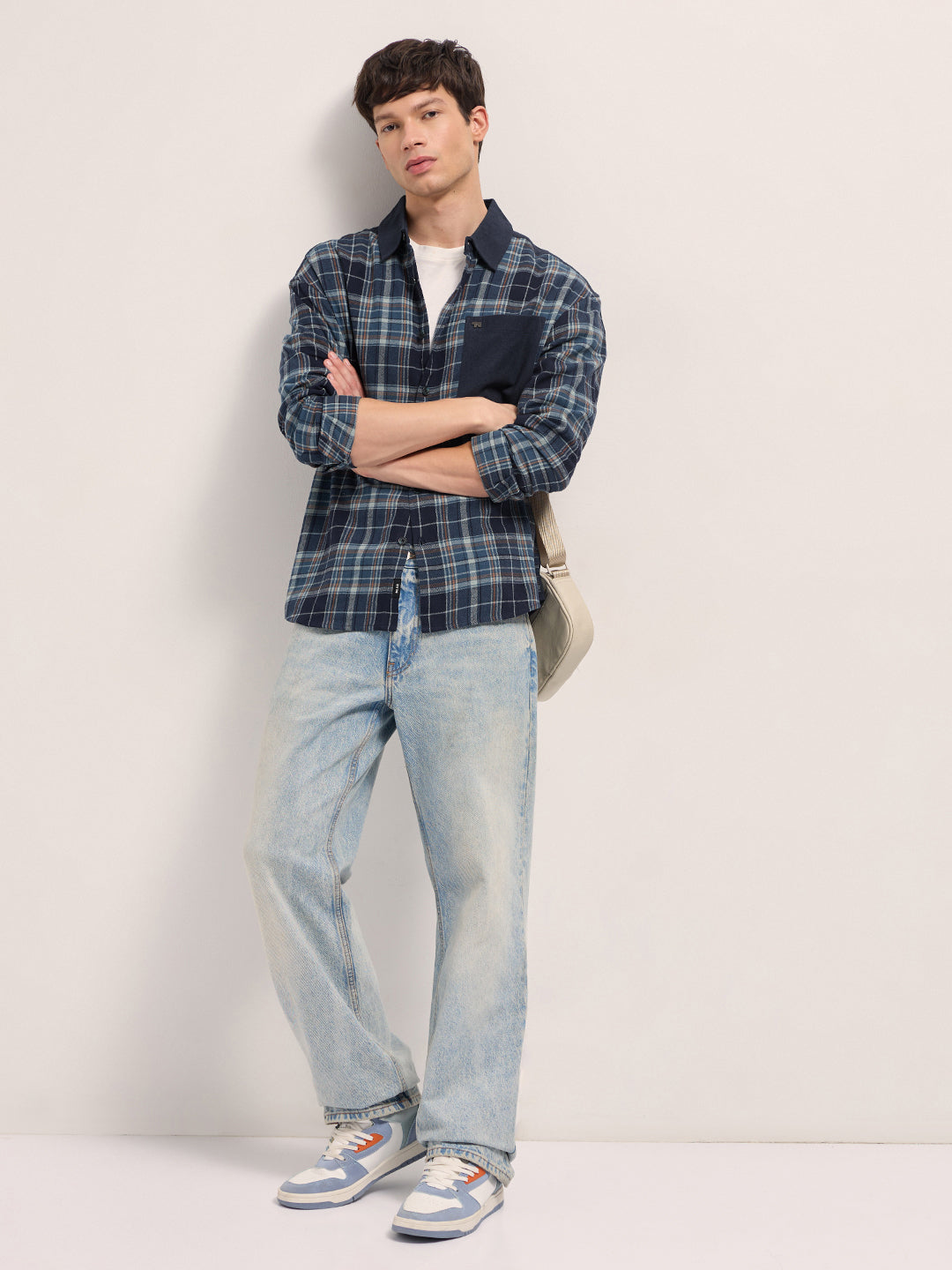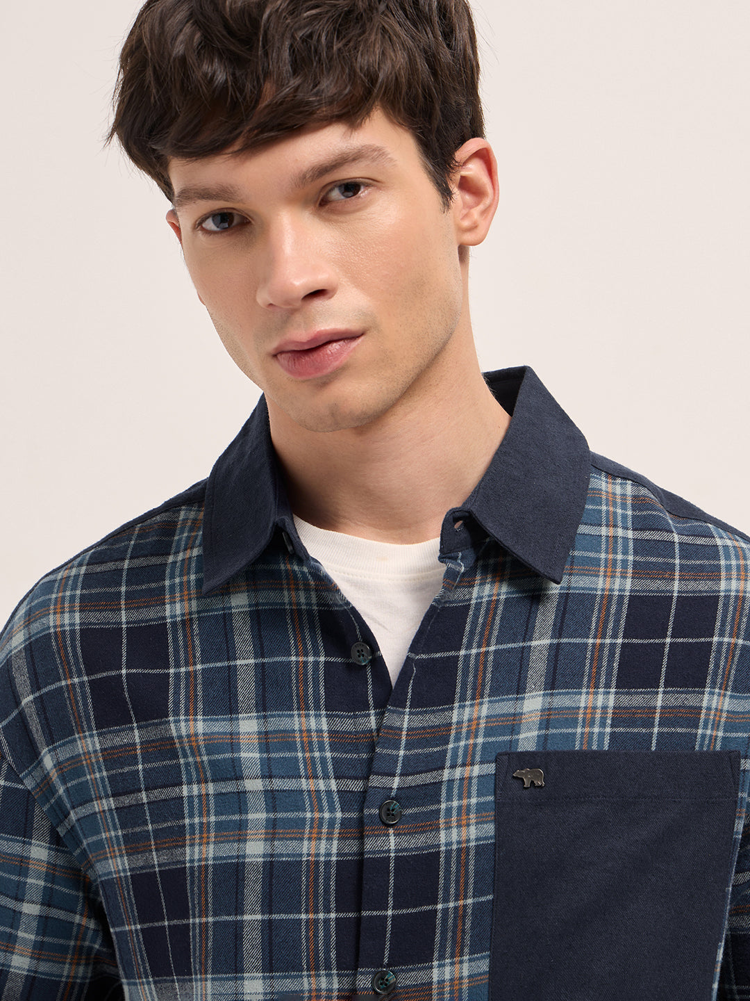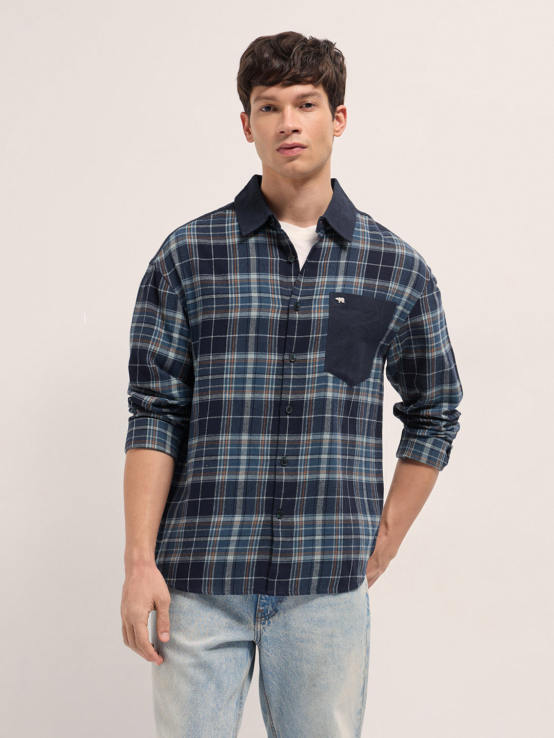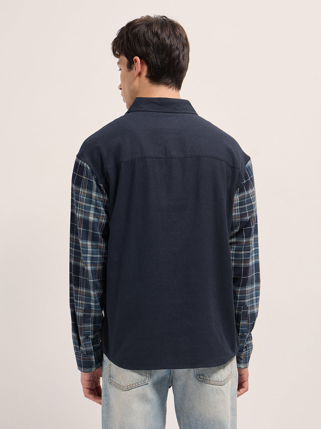 Multicolor Checked Relaxed Fit Overshirt with Solid Back