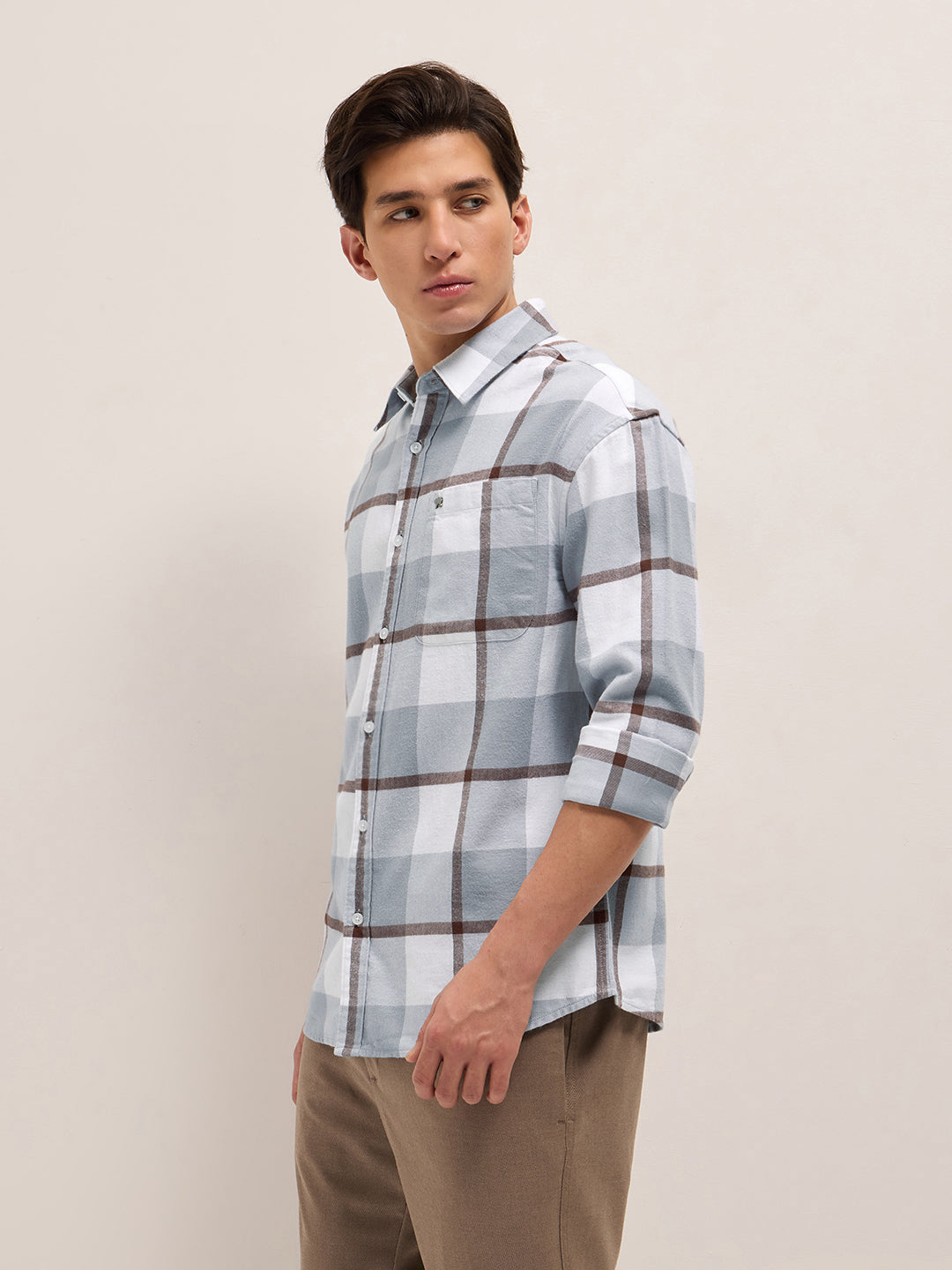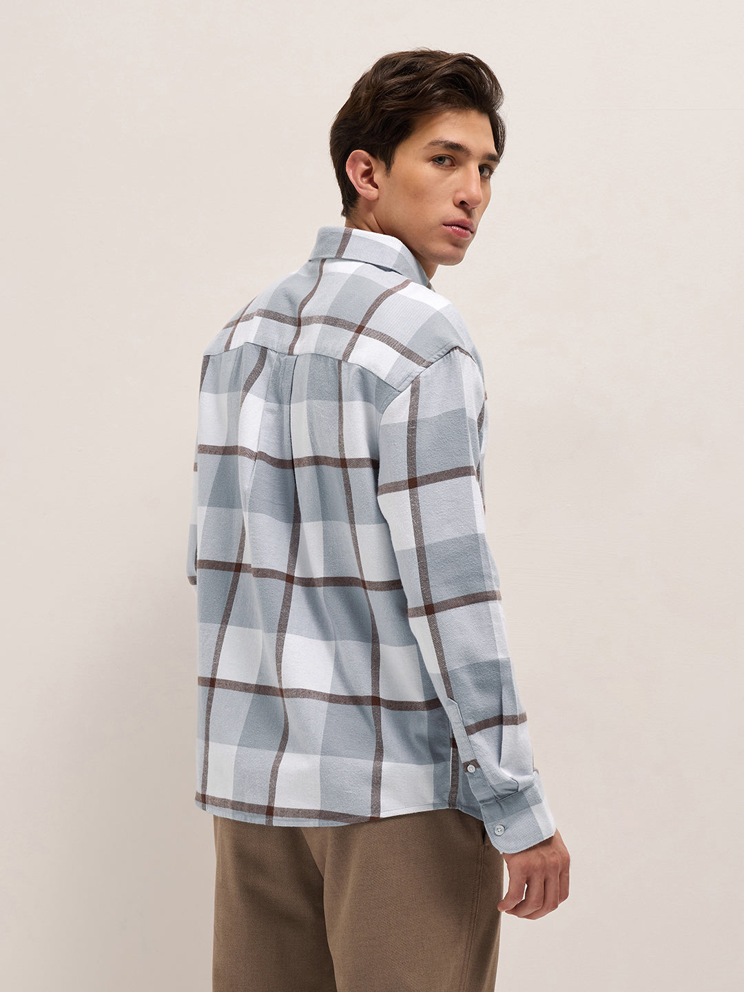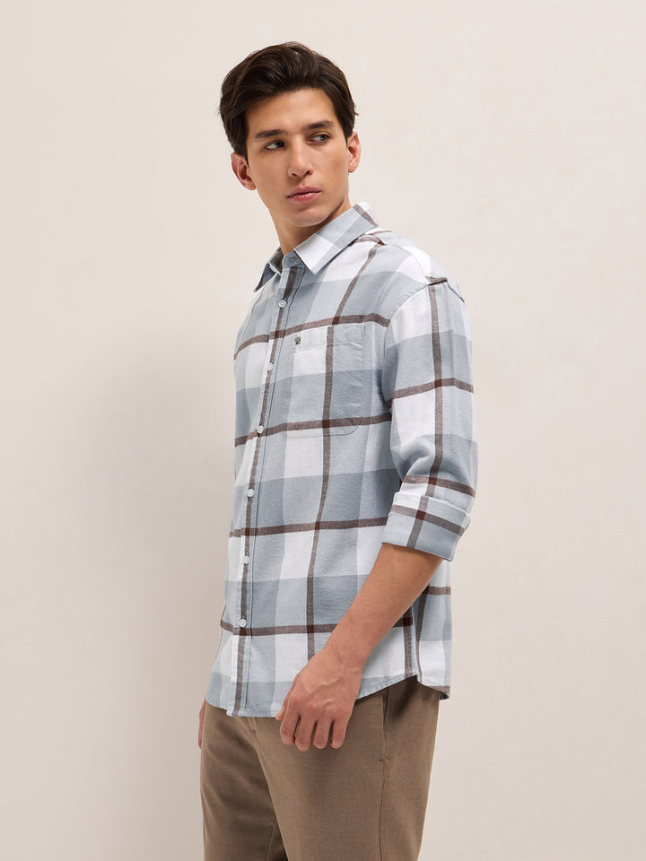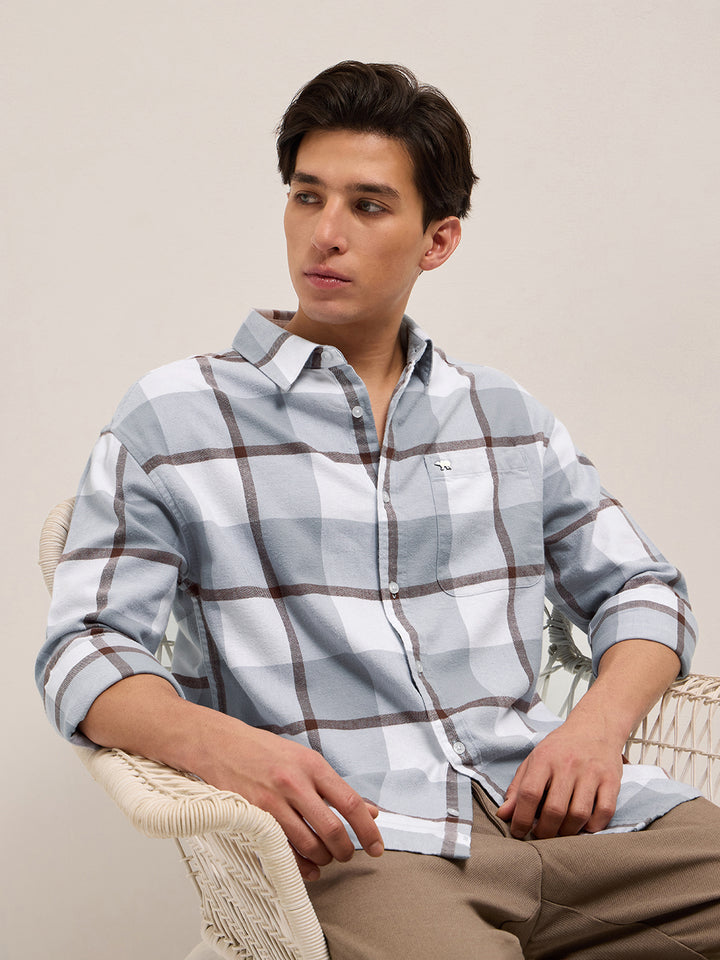Grey Checked Design Relax Fit Casual Shirt