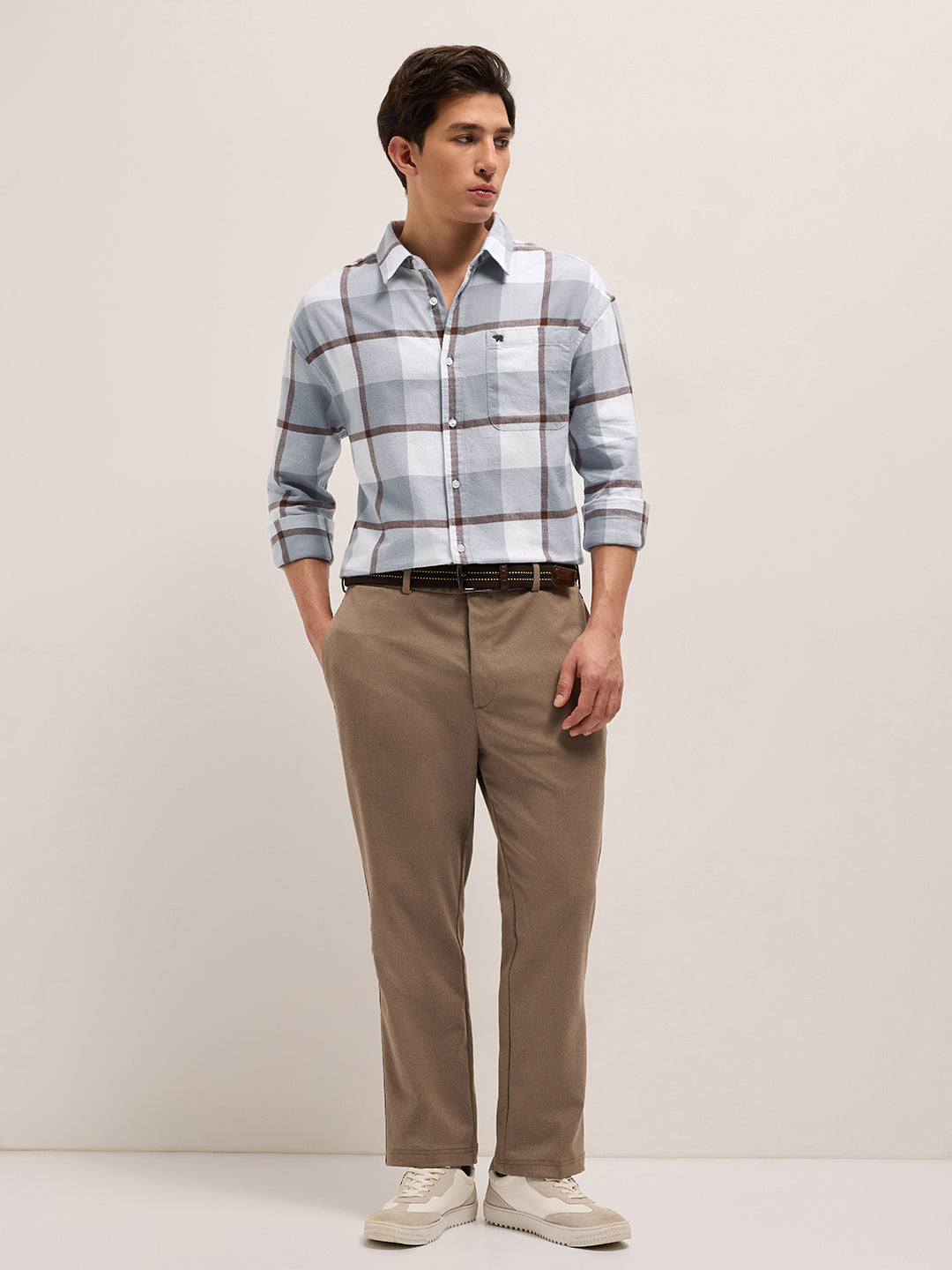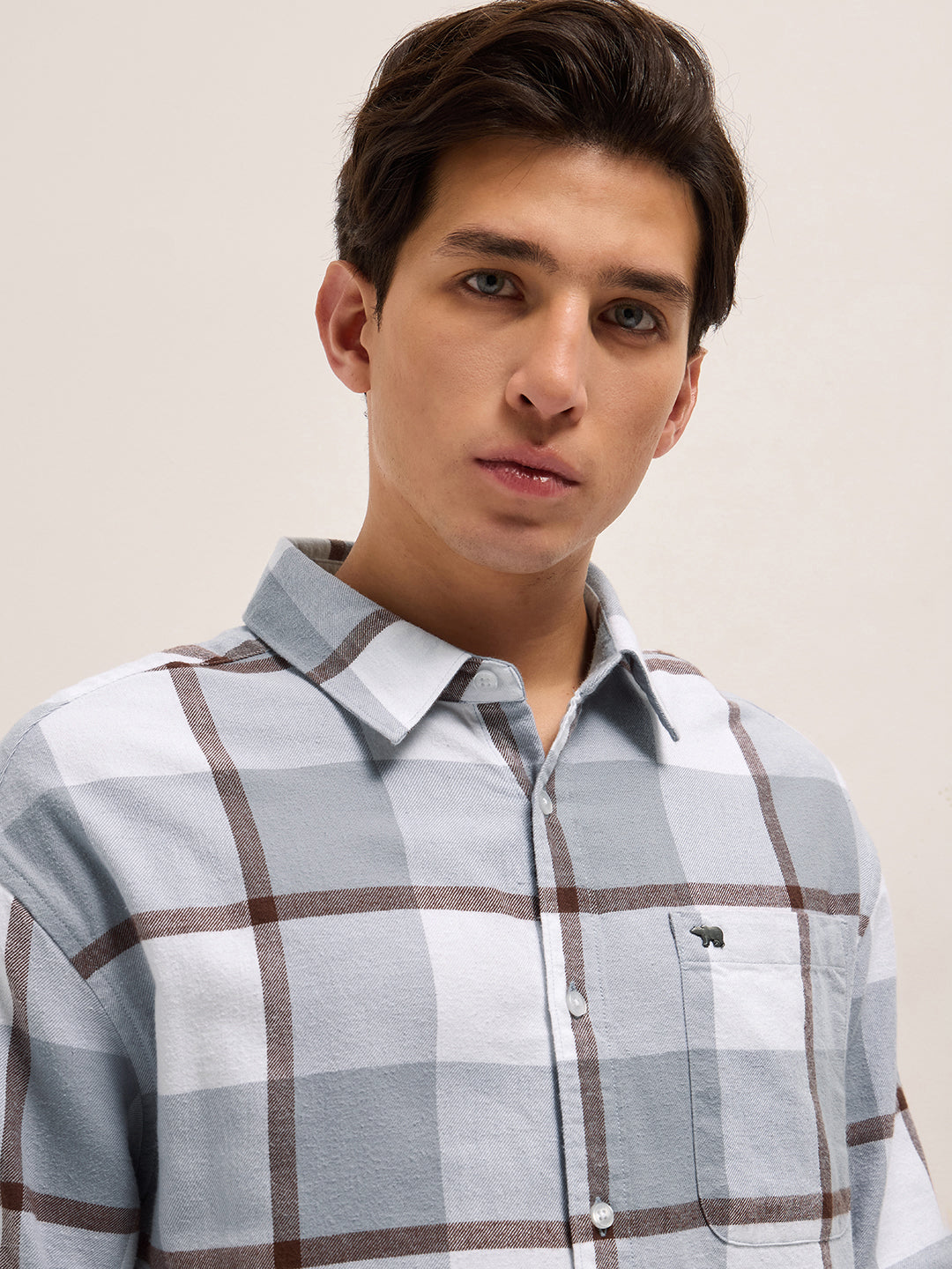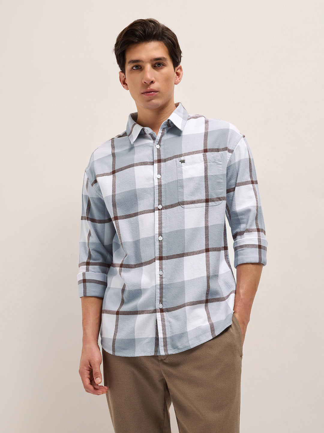 Grey Checked Design Relax Fit Casual Shirt