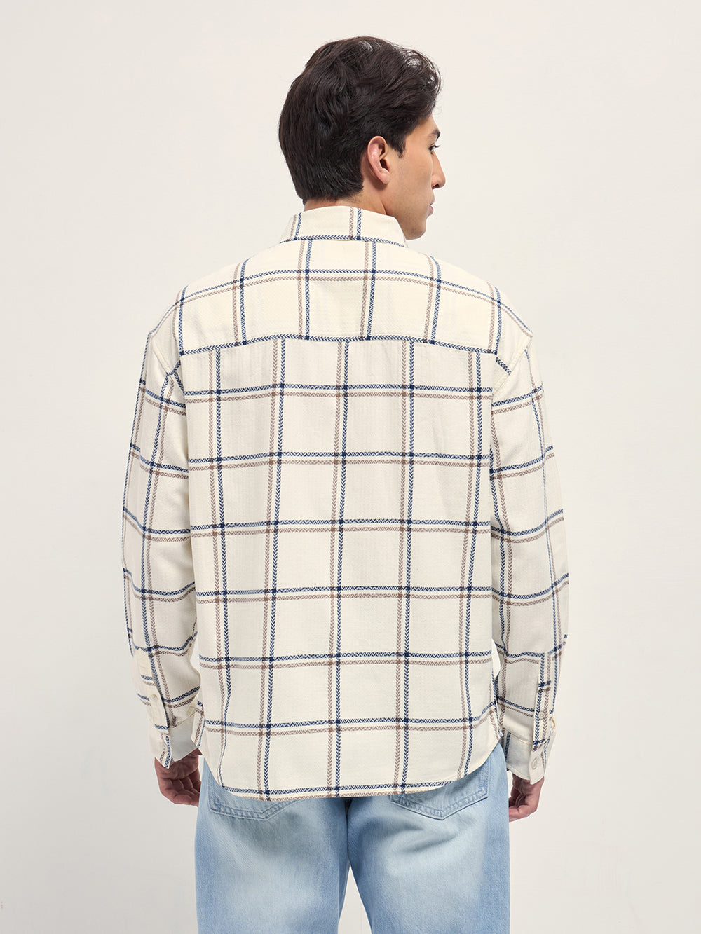 Cream Herringbone Check Cotton Relaxed Fit Overshirt