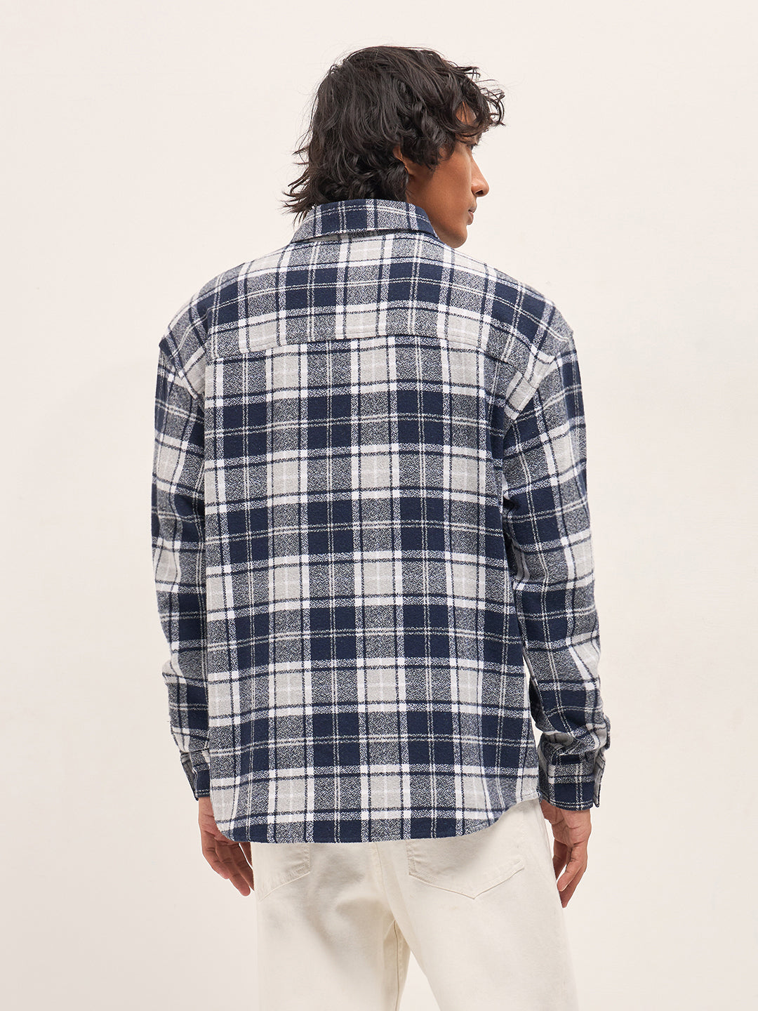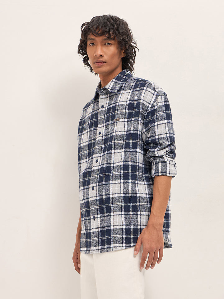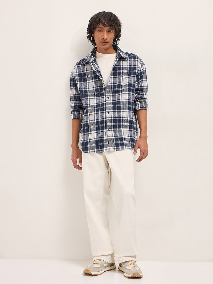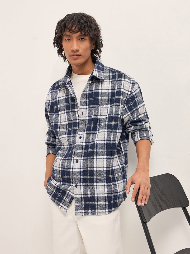 Blue Tartan Checked Design Relaxed Fit Overshirt
