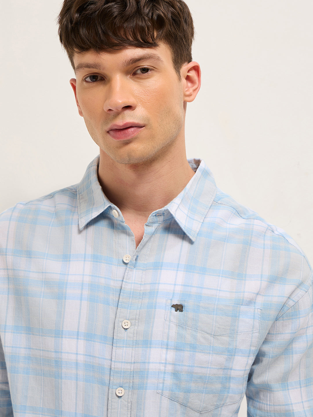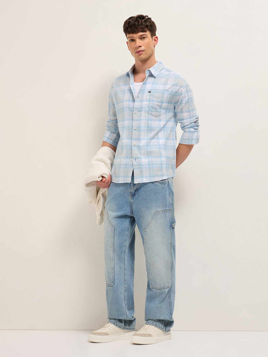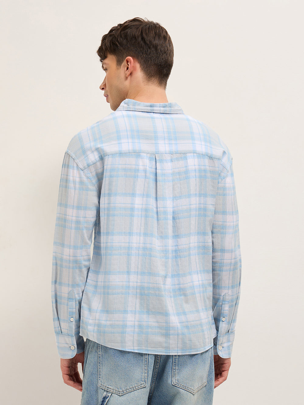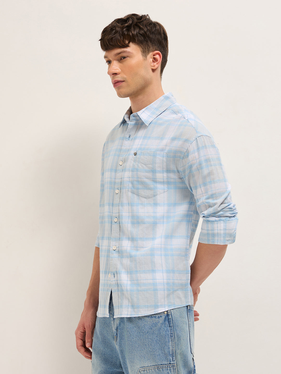 Light Blue Woven Checked Relaxed Fit Casual Shirt