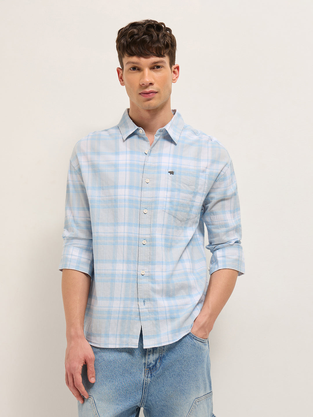 Shop Light Blue Woven Checked Relaxed Fit Casual Shirt Online.