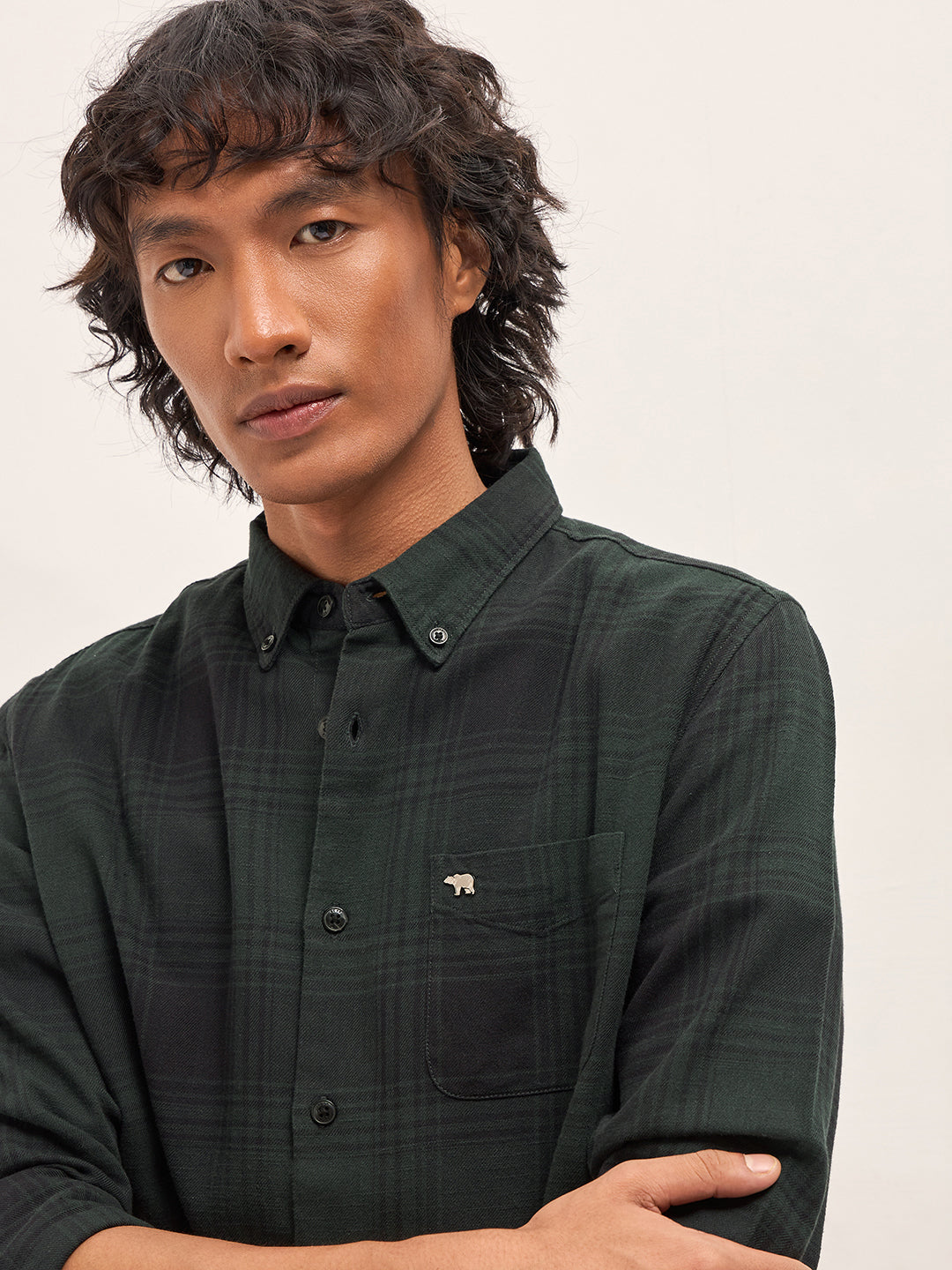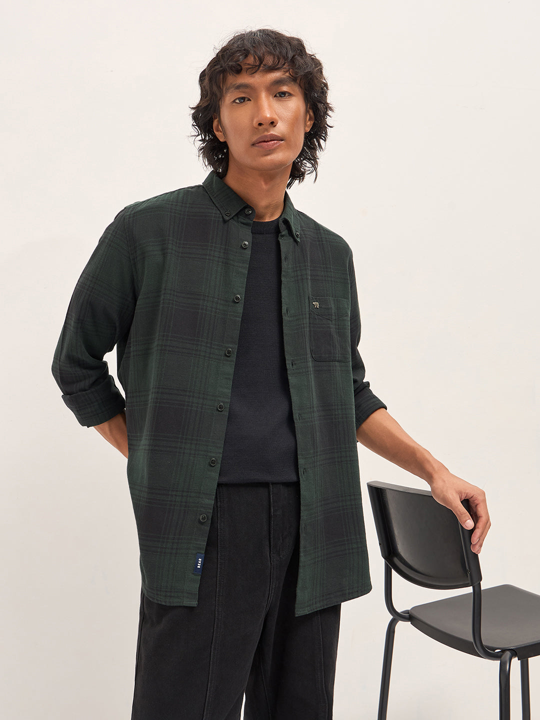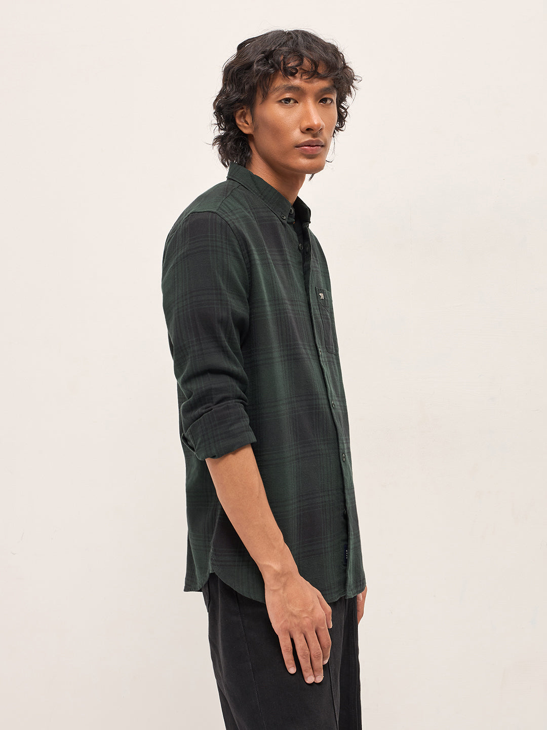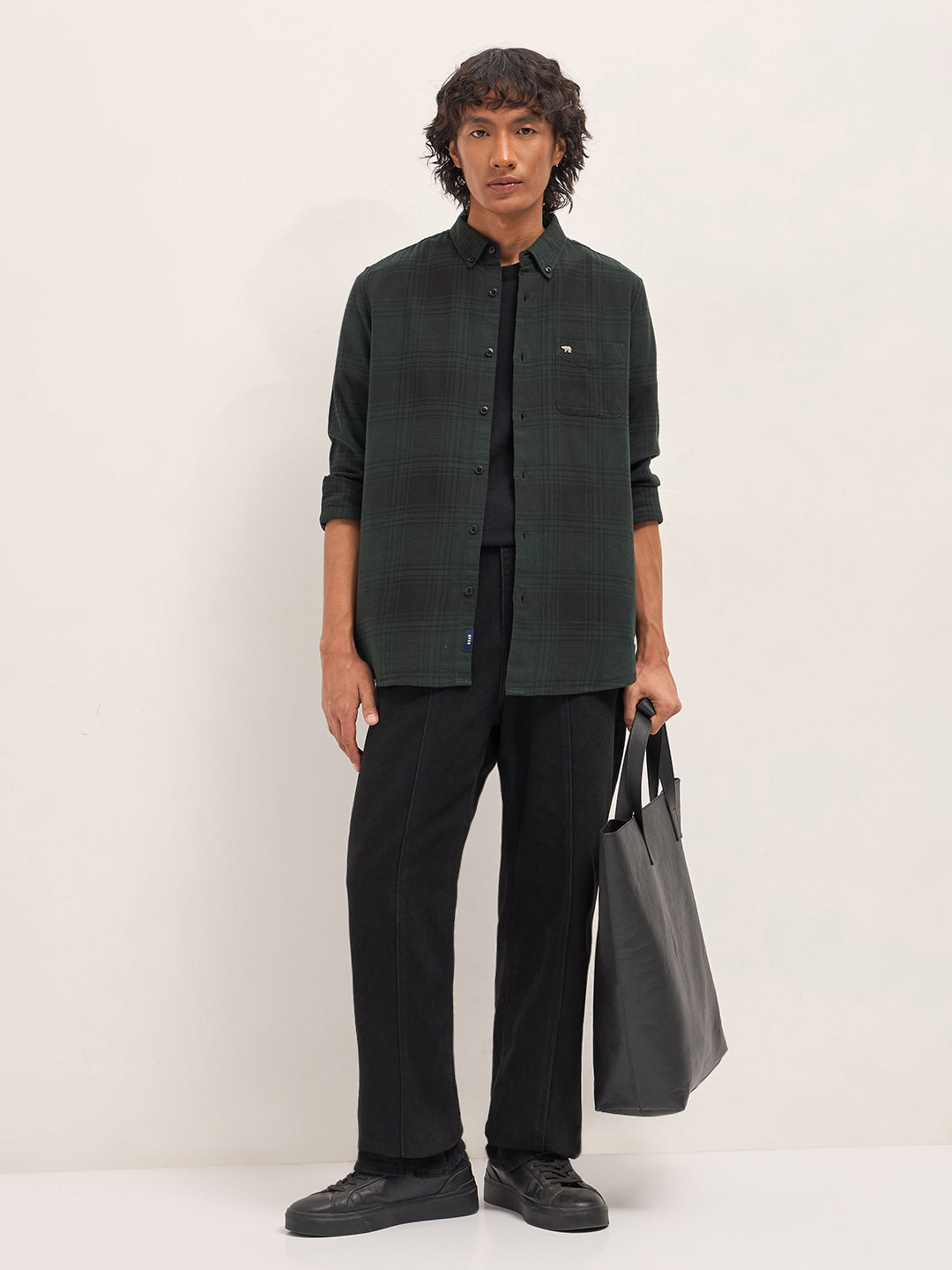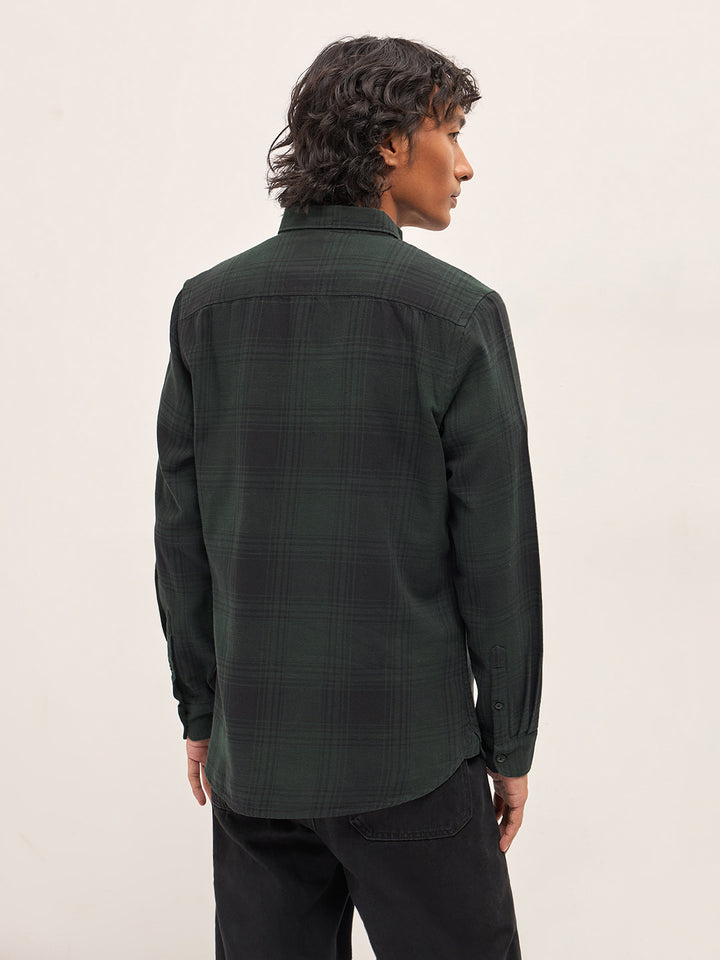Shop Green and Black Checked Slim Fit Casual Shirt Online.