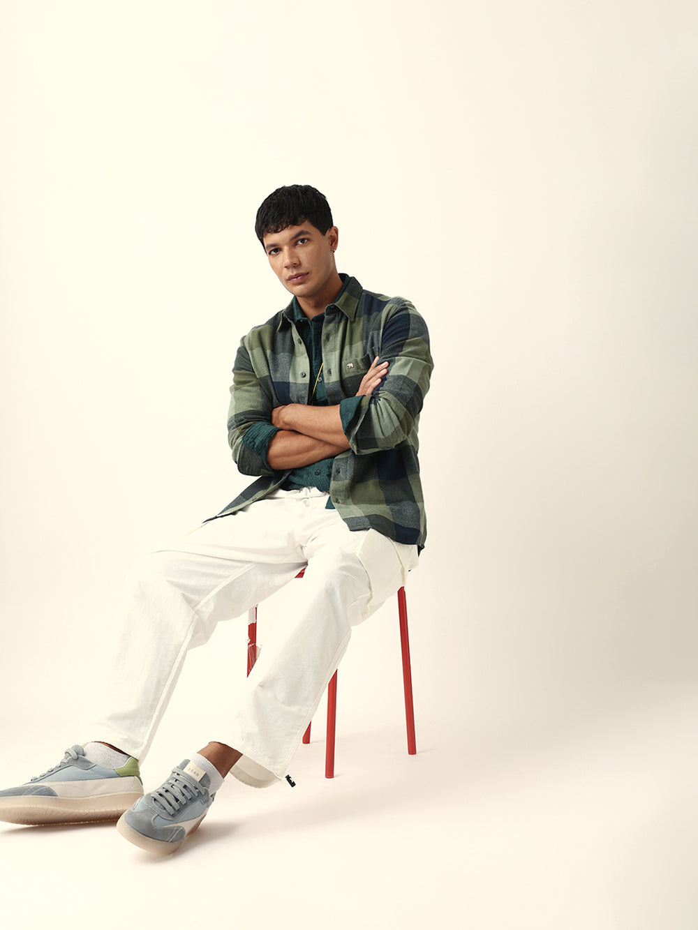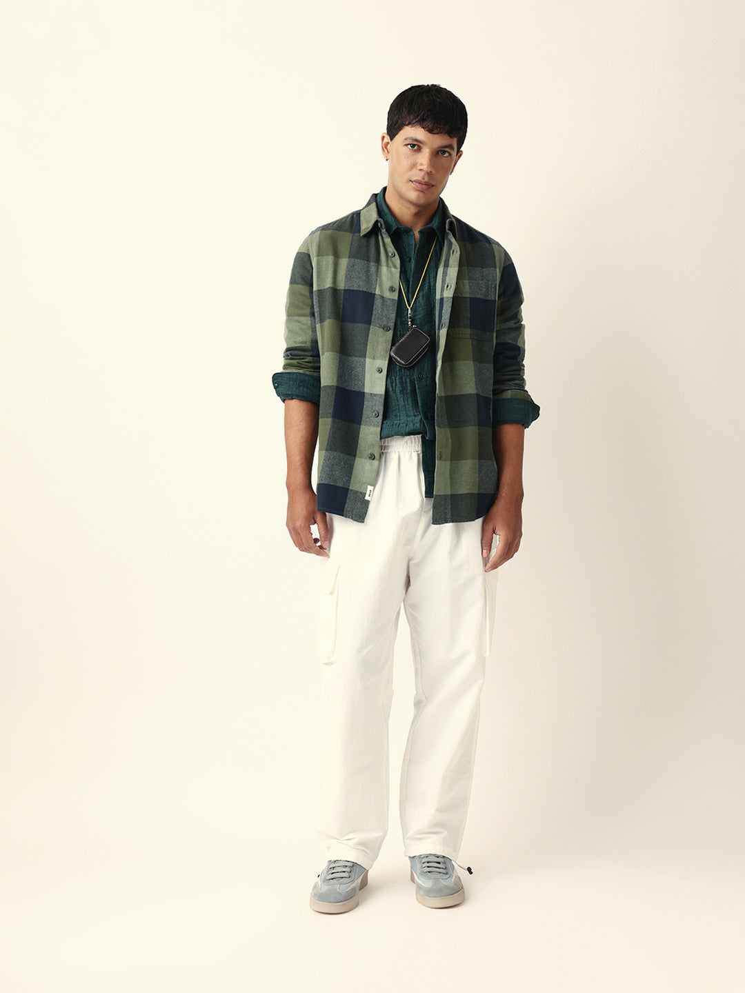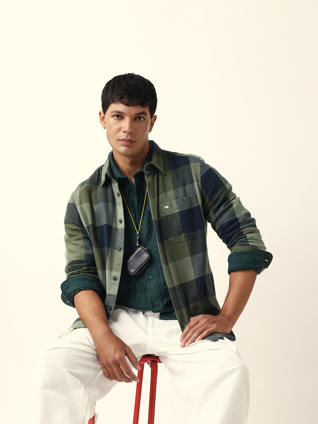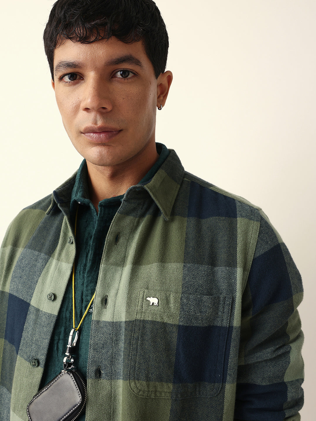 Green with Navy Blue Flannel Checked Regular Fit Overshirt