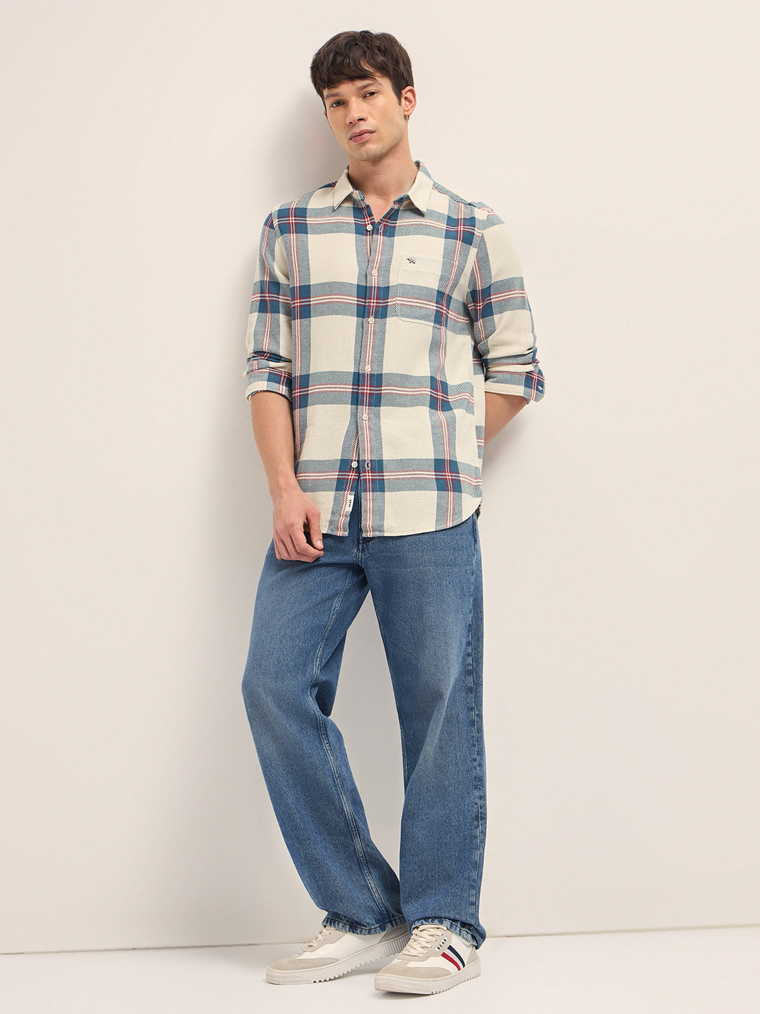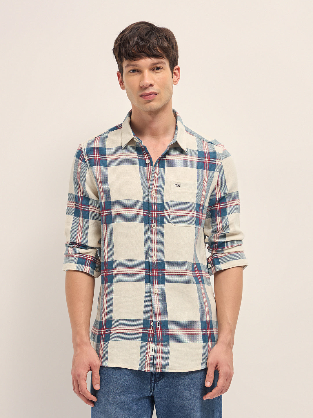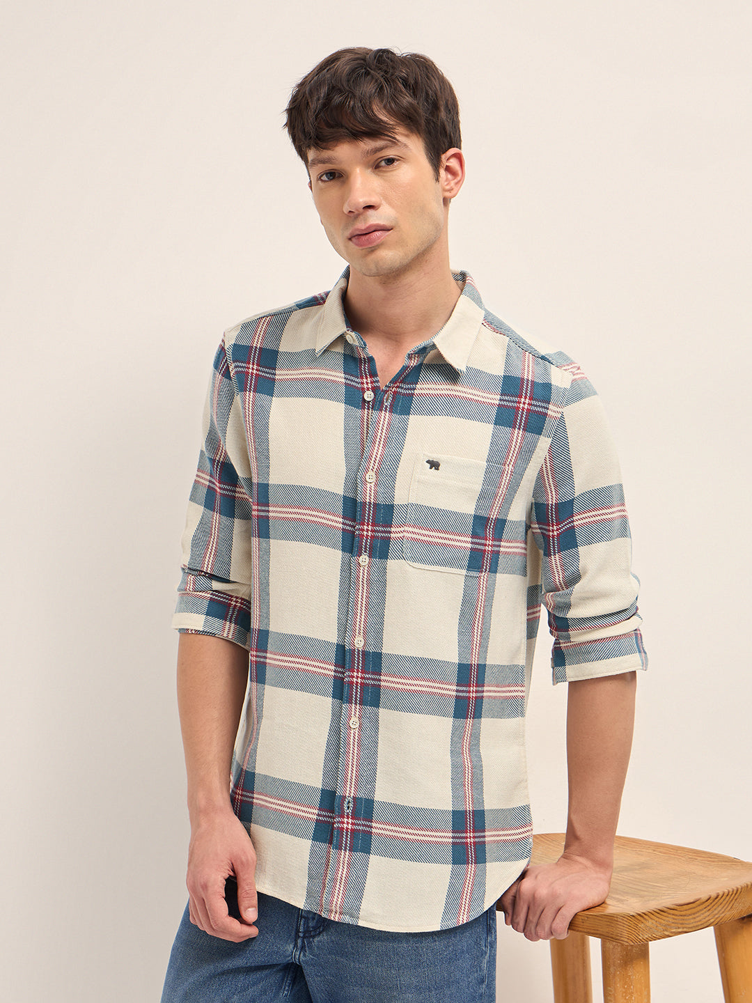 Shop Multicolor Woven Check Slim Fit Casual Shirt Online.
