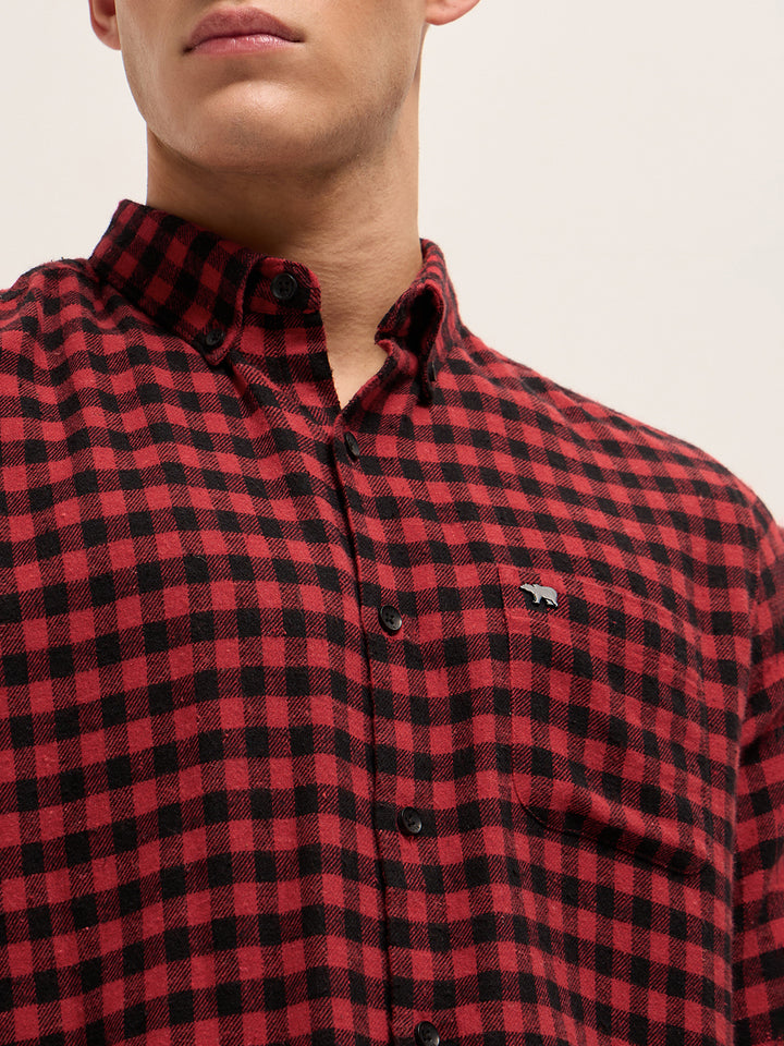Shop Red and Black Checked Flannel Slim Fit Casual Shirt Online.