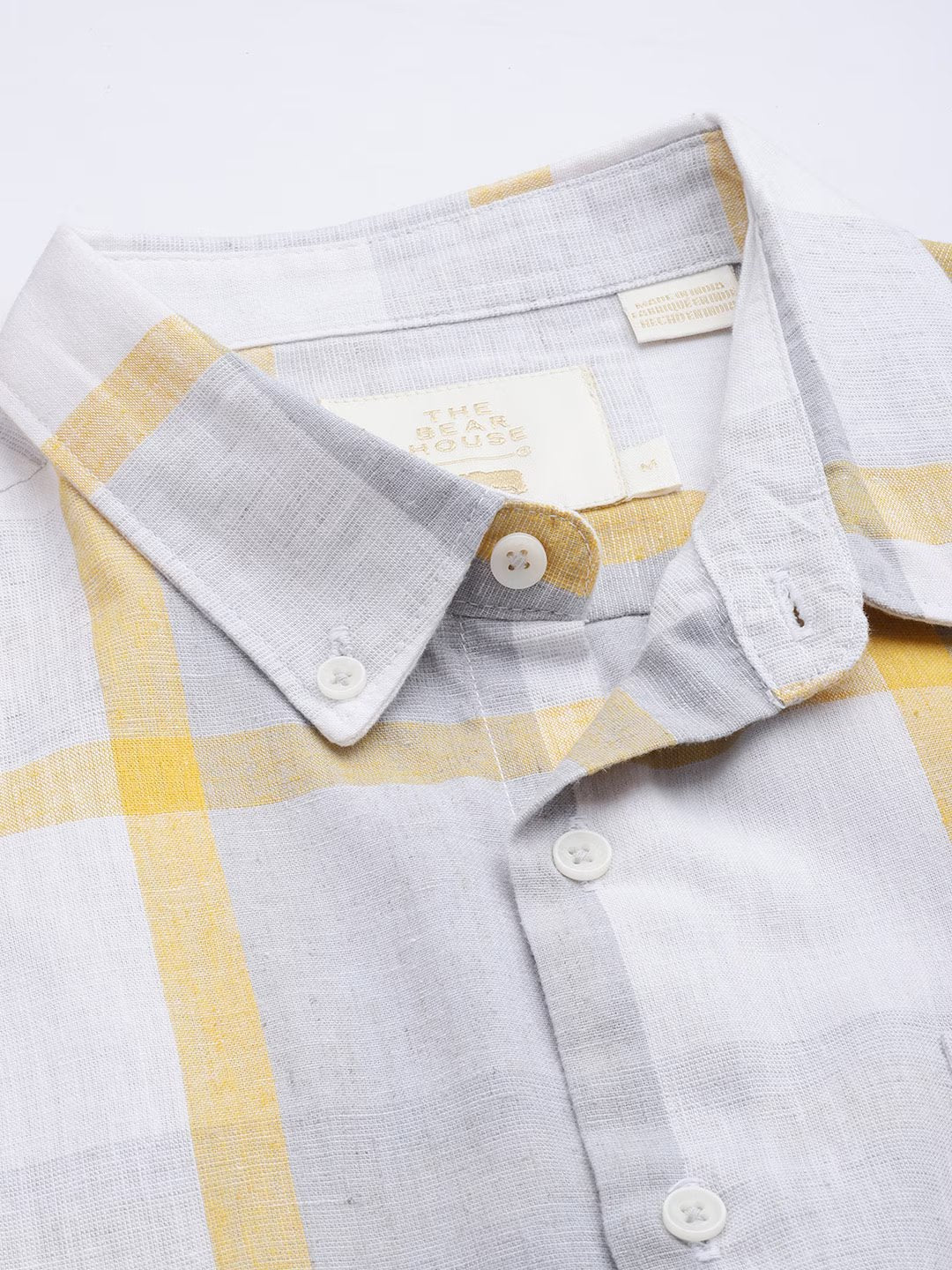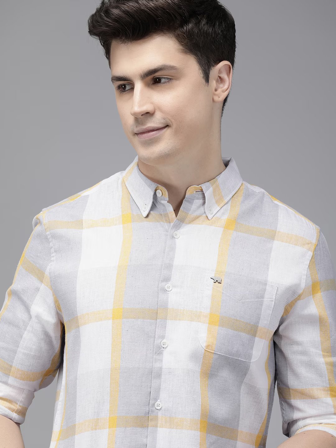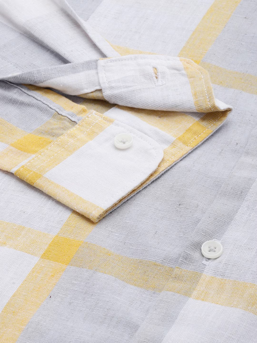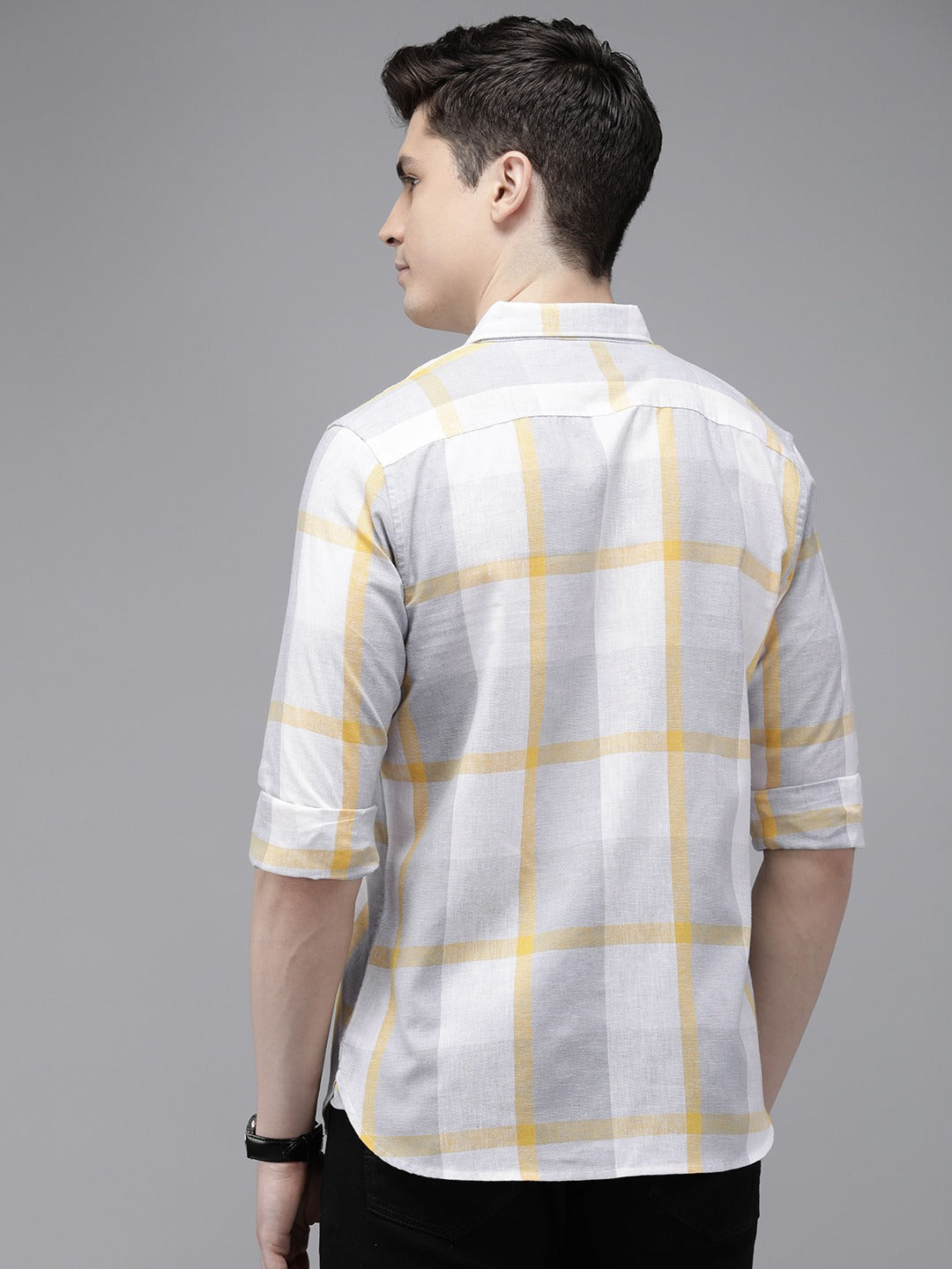 Men Grey Checked Slim Fit Cotton Blend Casual Shirt