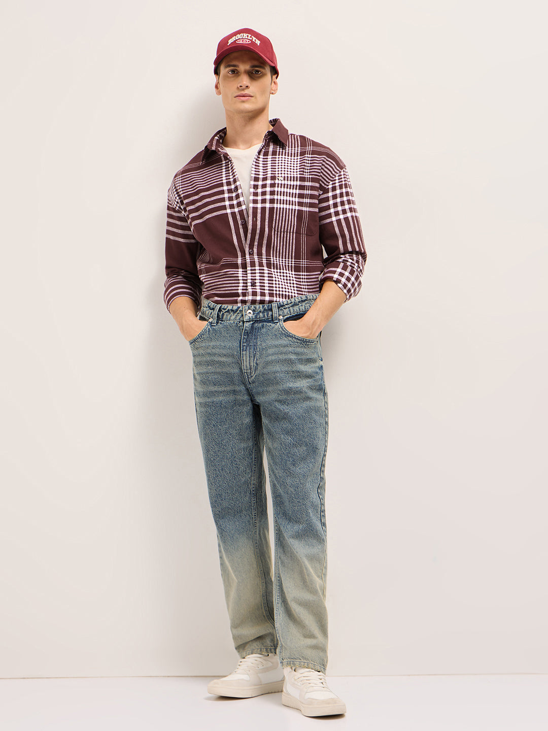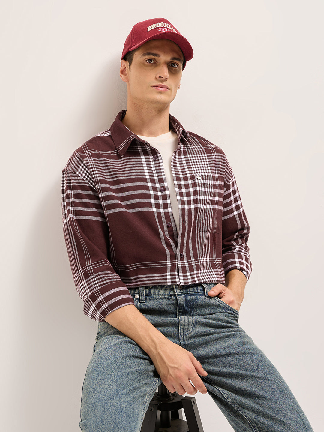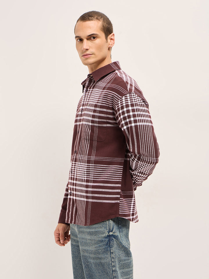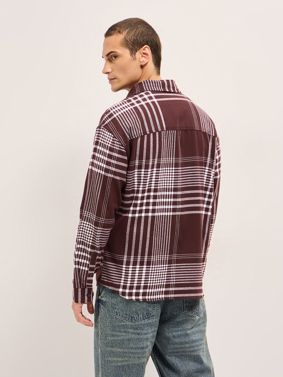Maroon Tartan Checked Design Relaxed Fit Overshirt