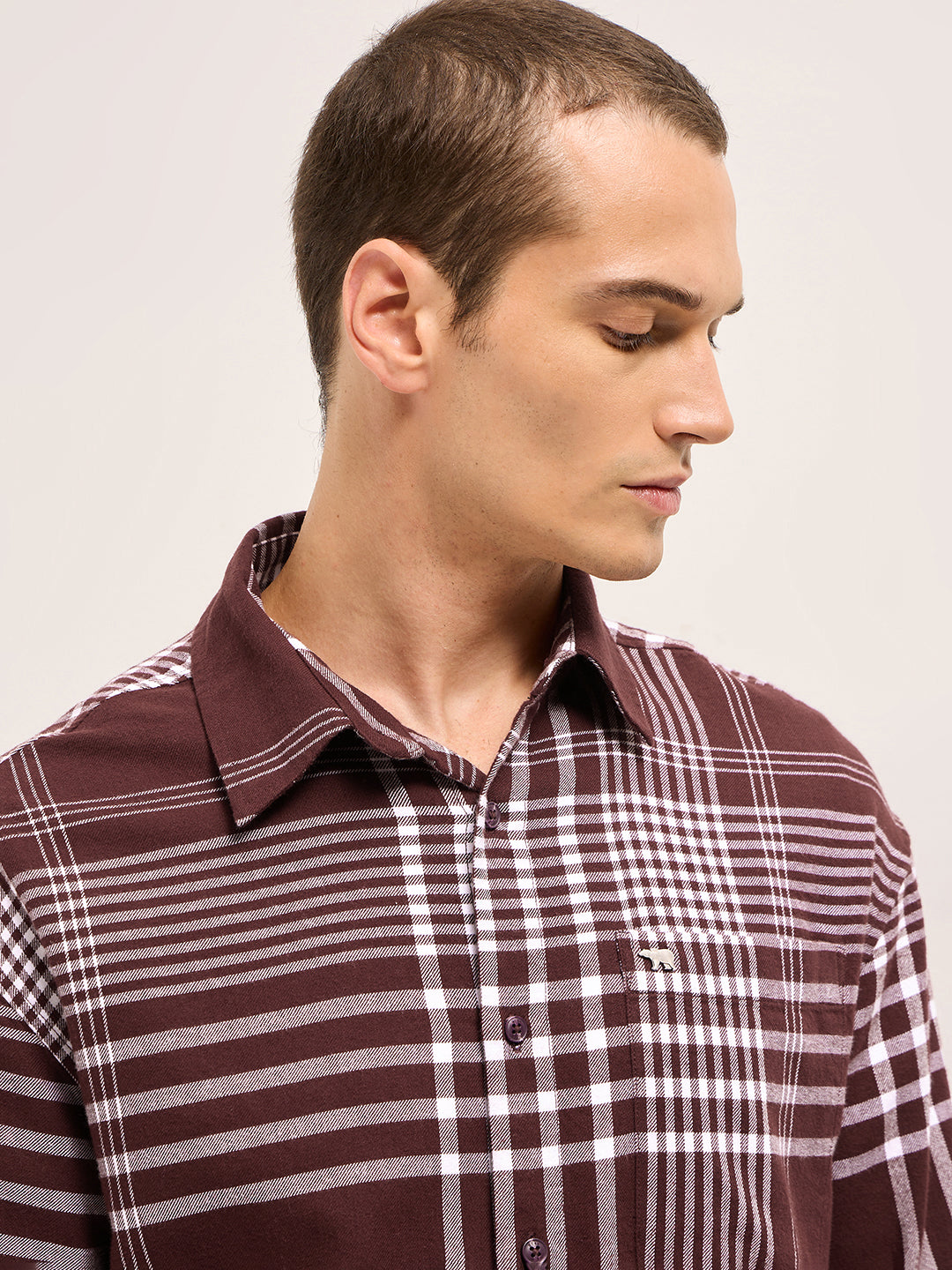Shop Maroon Tartan Checked Design Relaxed Fit Overshirt Online.