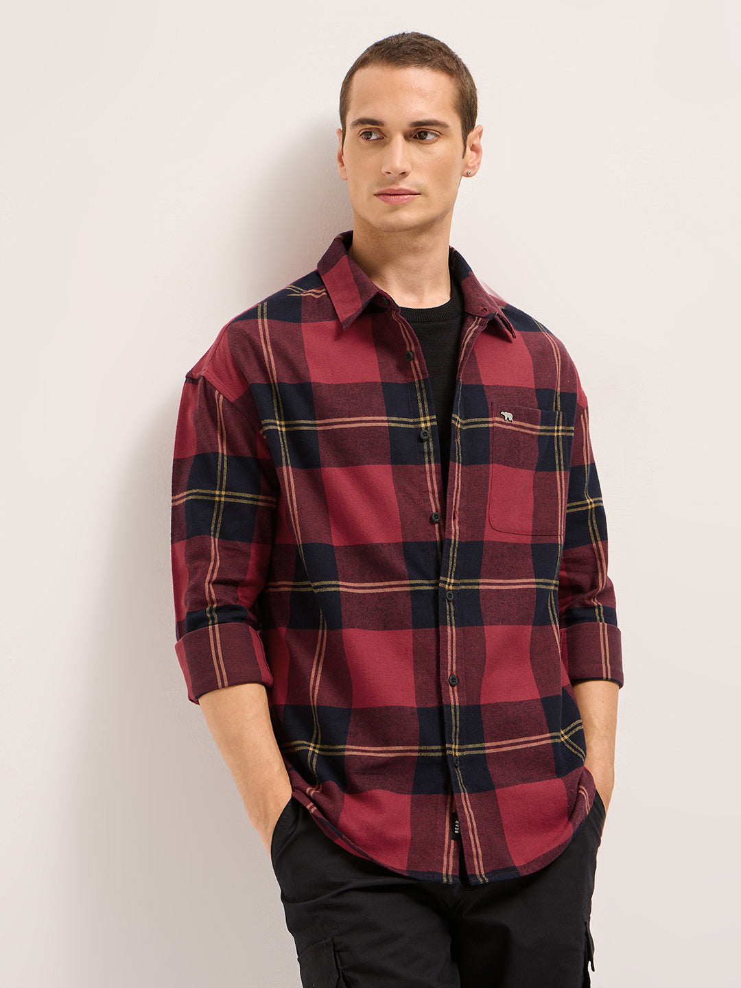 Shop Multicolor Tartan Checked Relaxed Fit Casual Shirt Online.