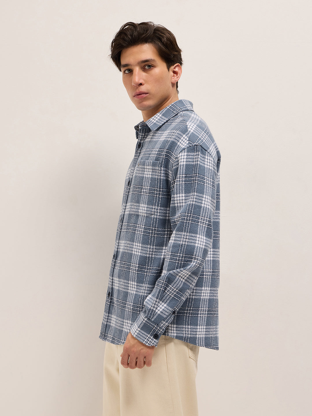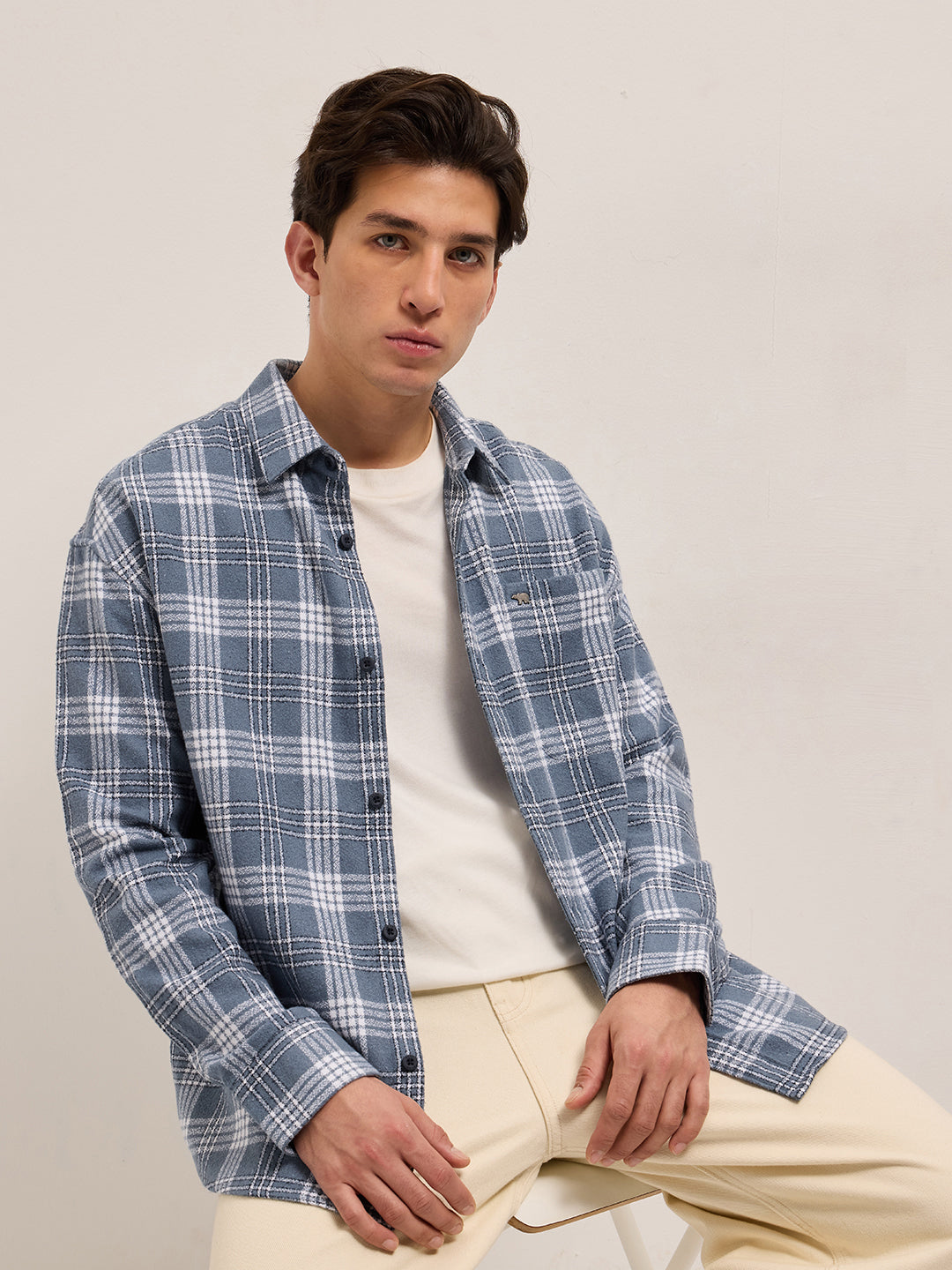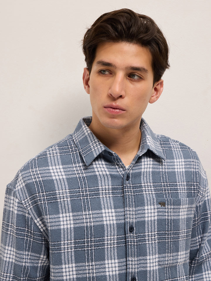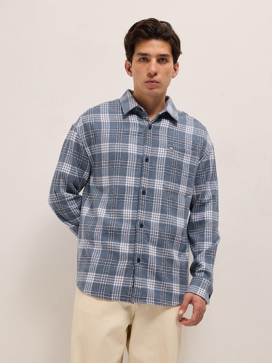Blue Tartan Checked Design Relax Fit Casual Shirt