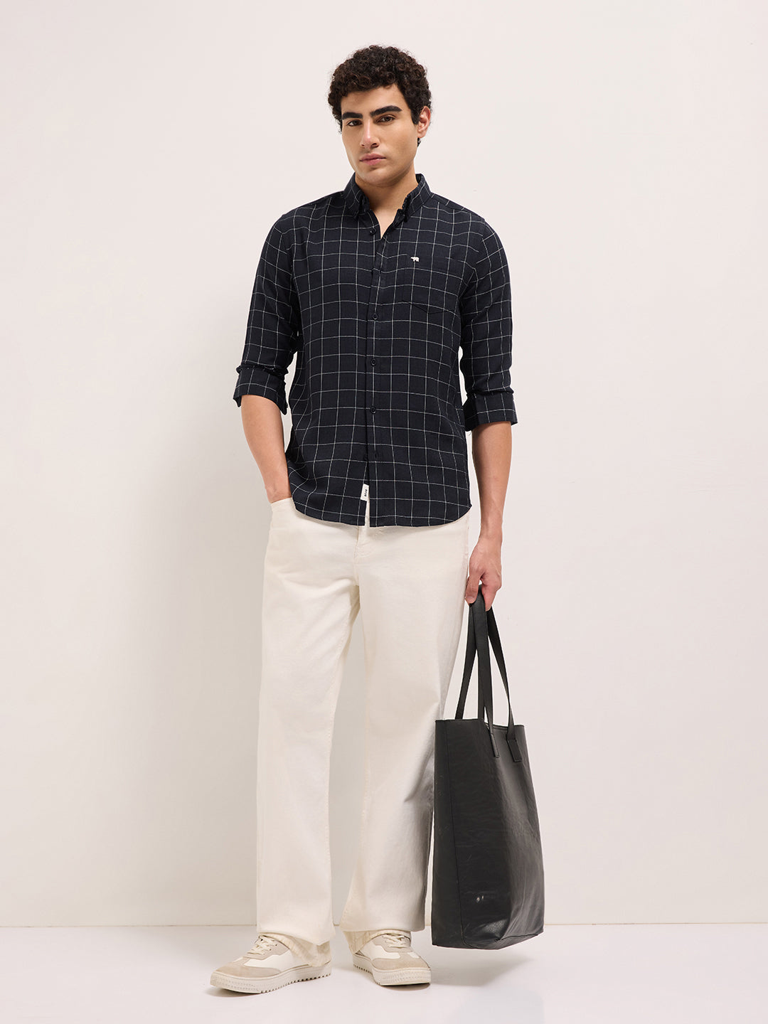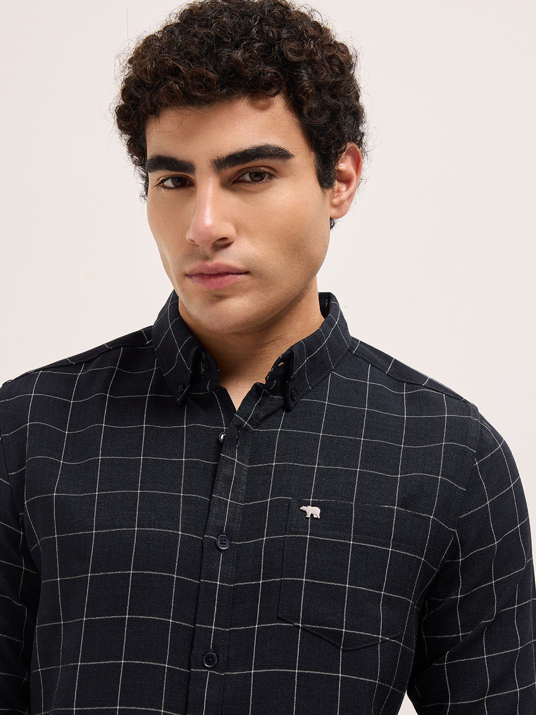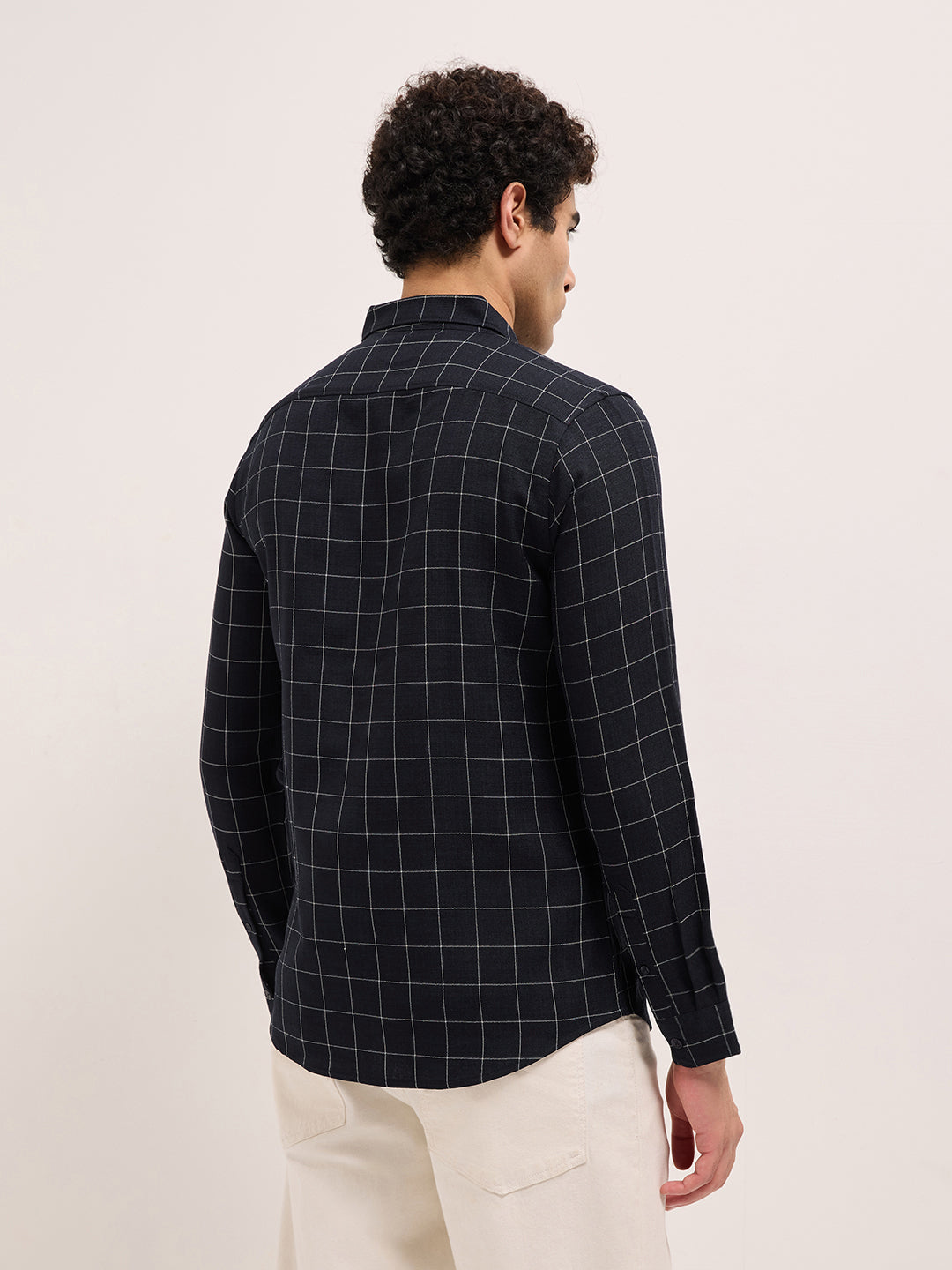 Navy Blue Block Checks Slim Fit Casual Shirt
