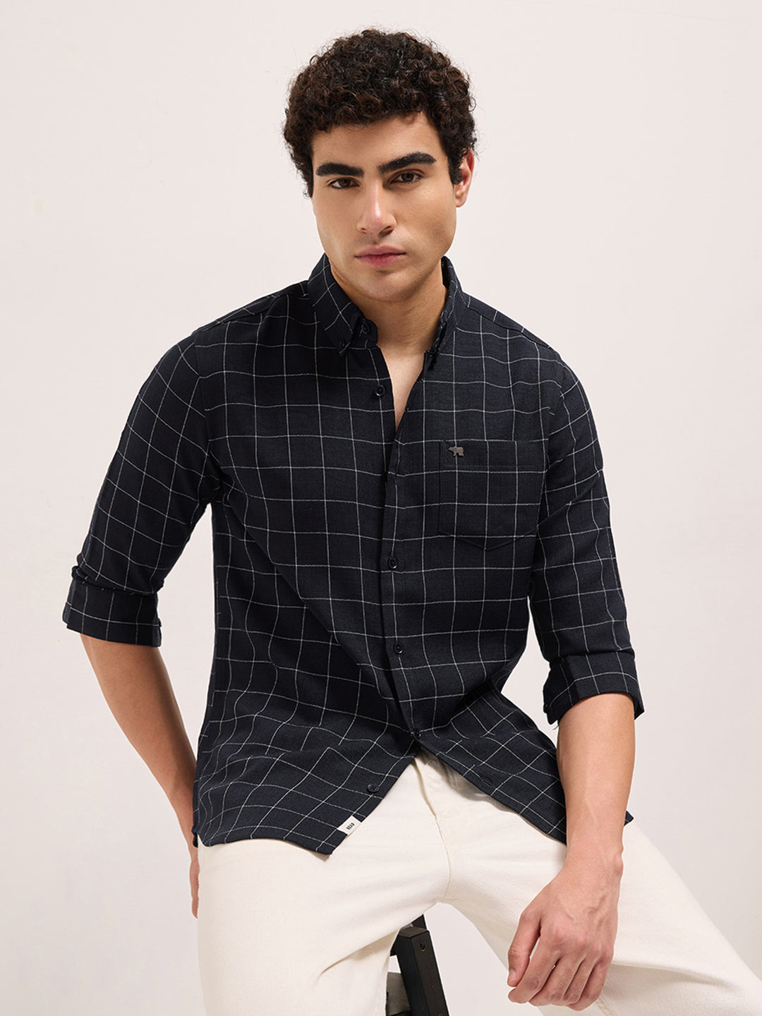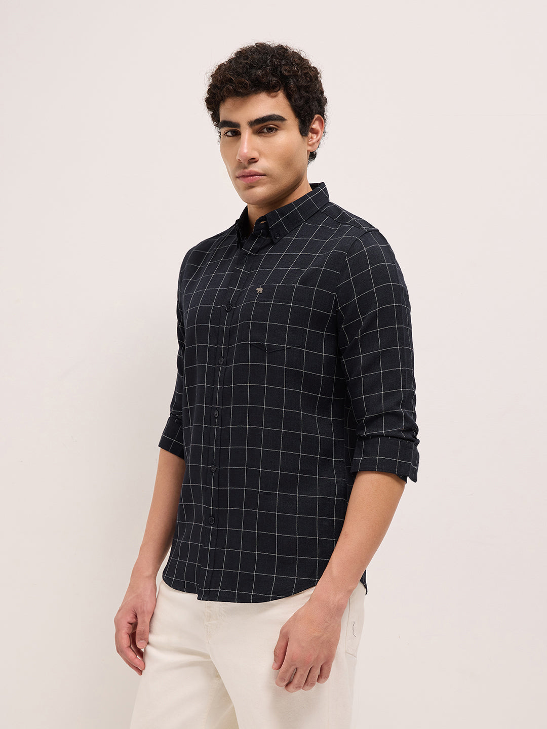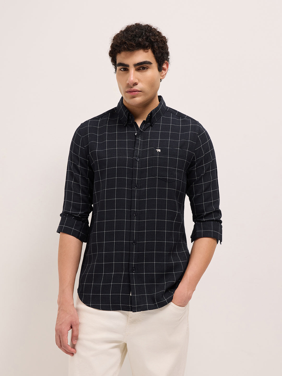 Navy Blue Block Checks Slim Fit Casual Shirt