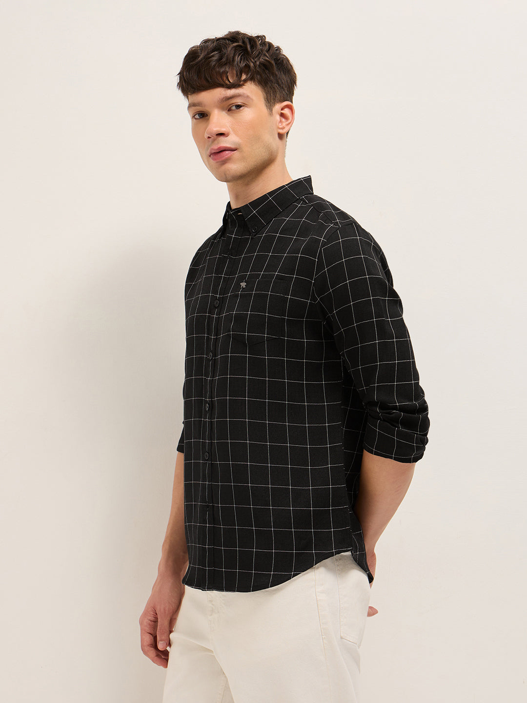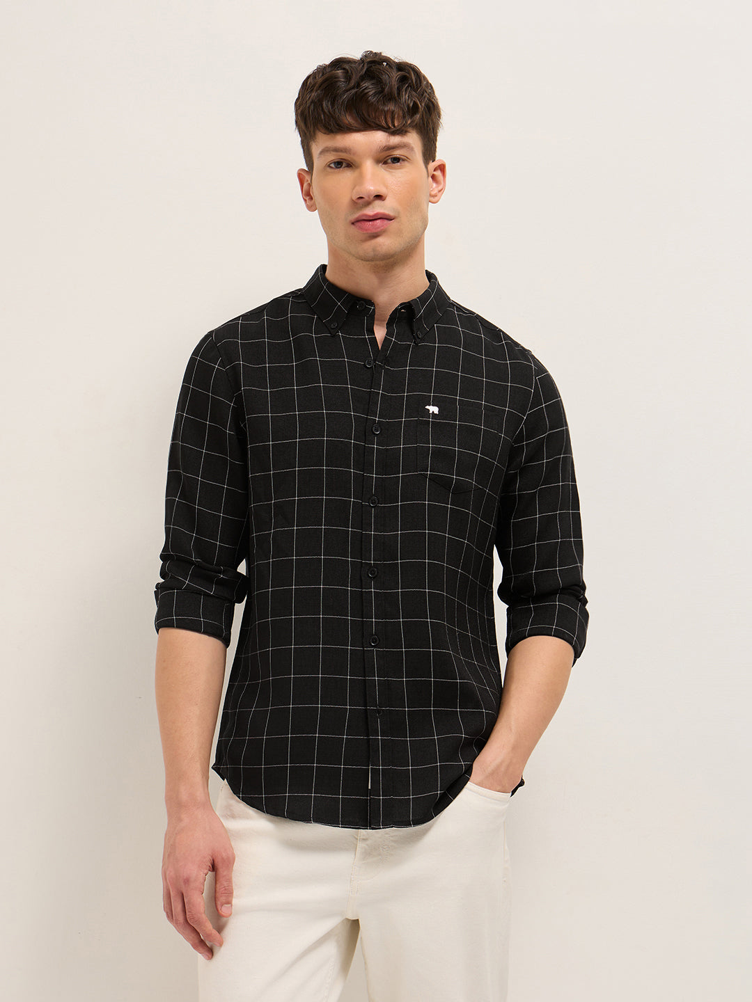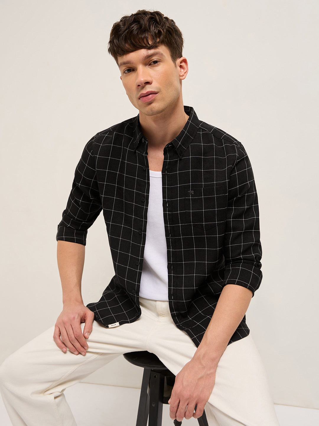 Shop Black Block Checks Slim Fit Casual Shirt Online.