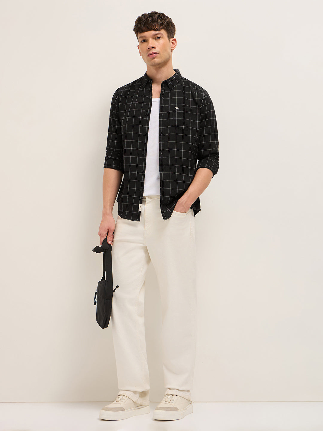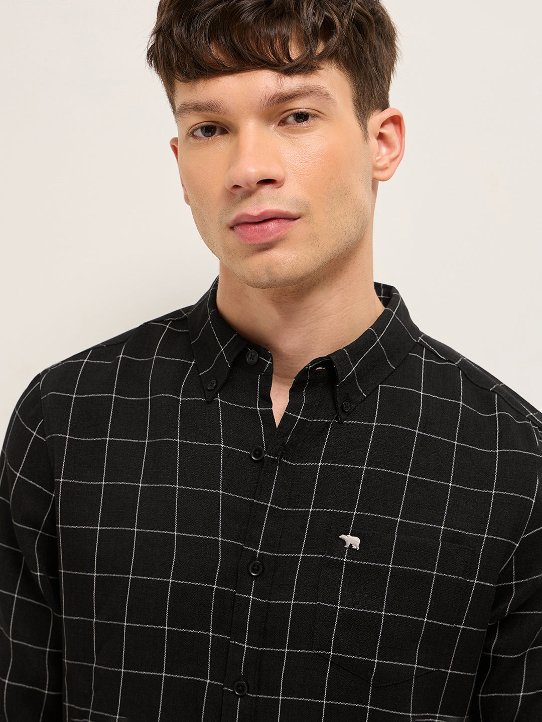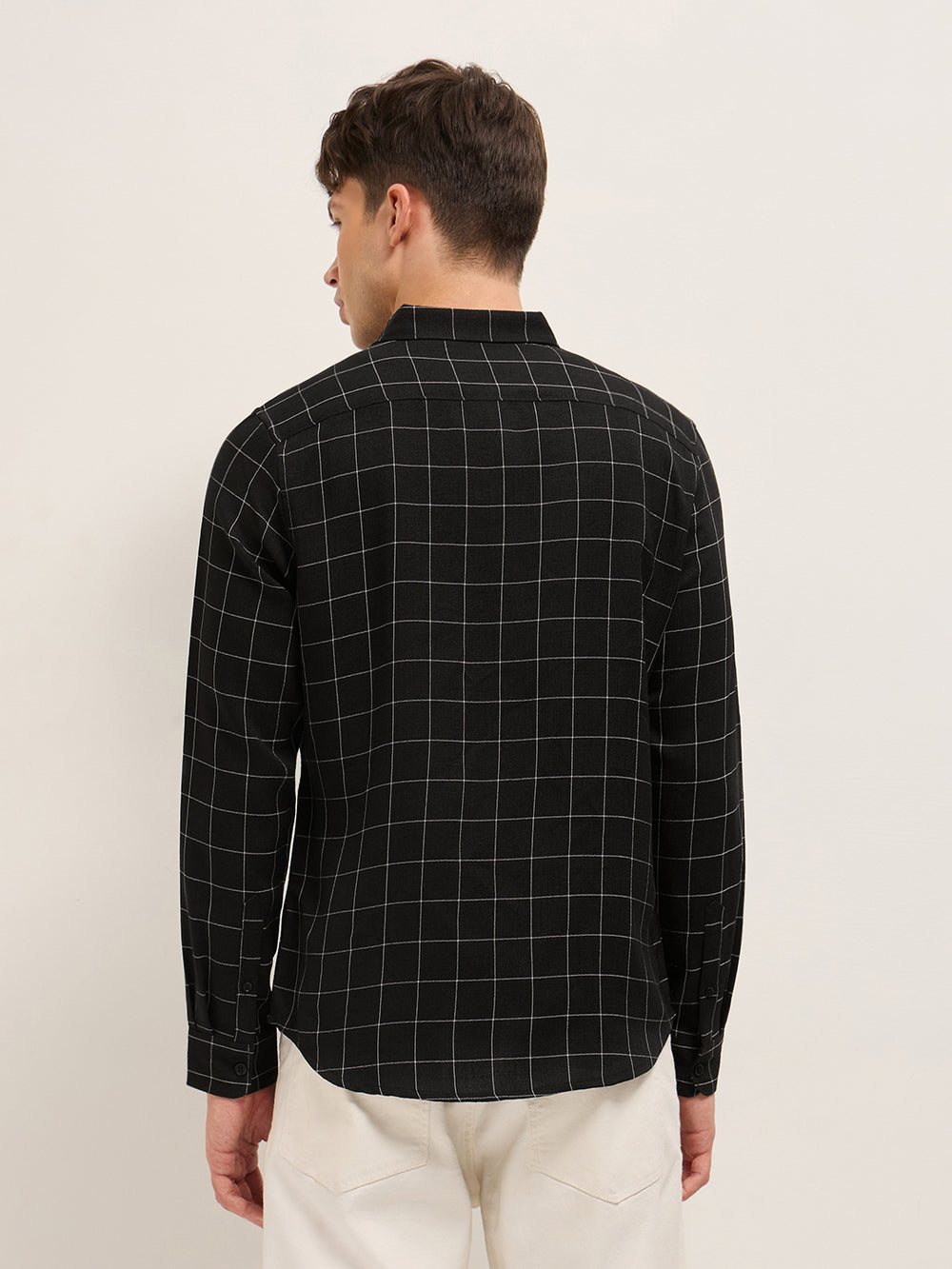 Shop Black Block Checks Slim Fit Casual Shirt Online.