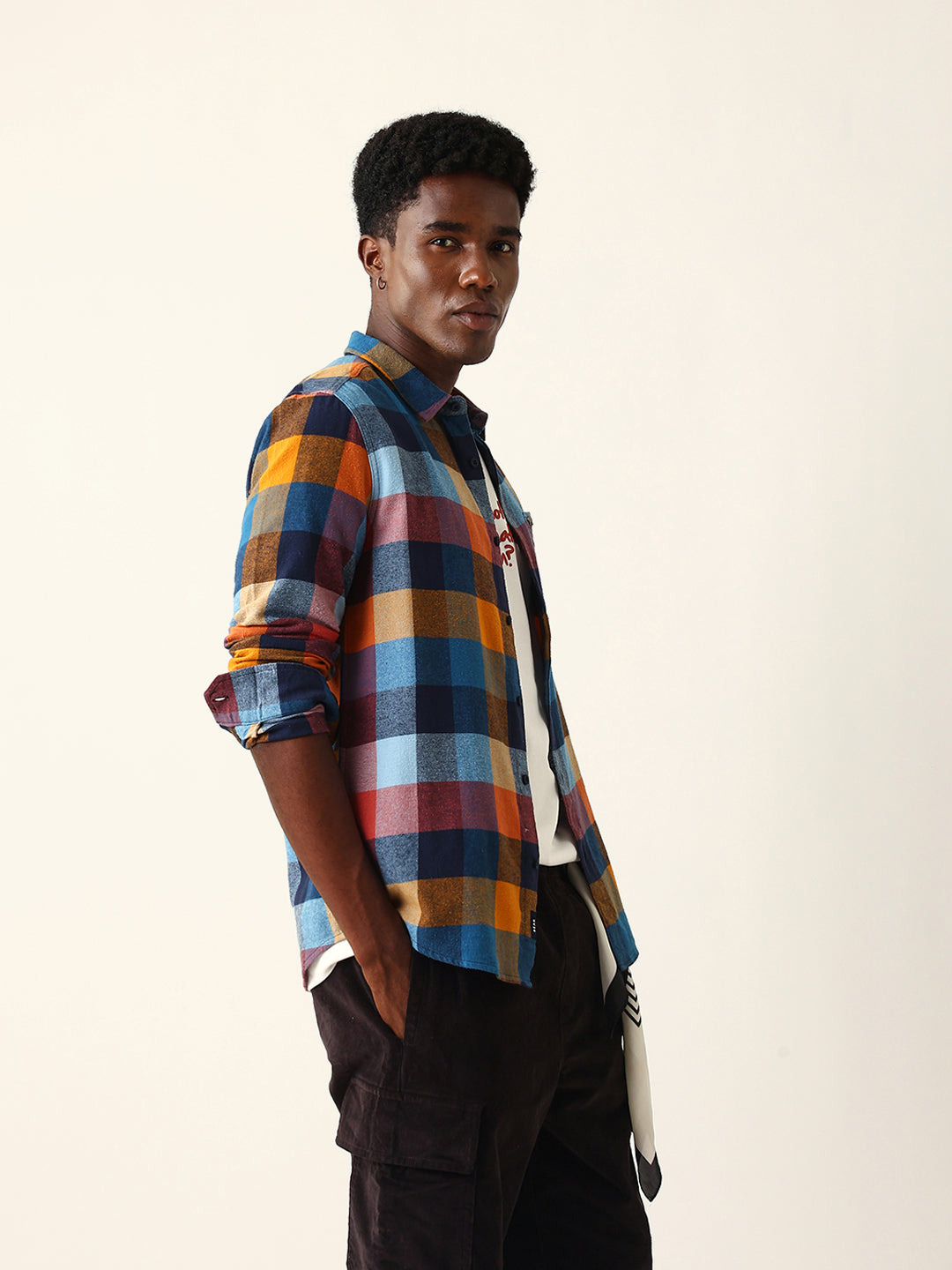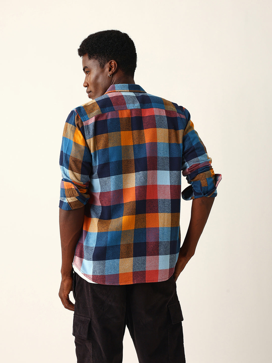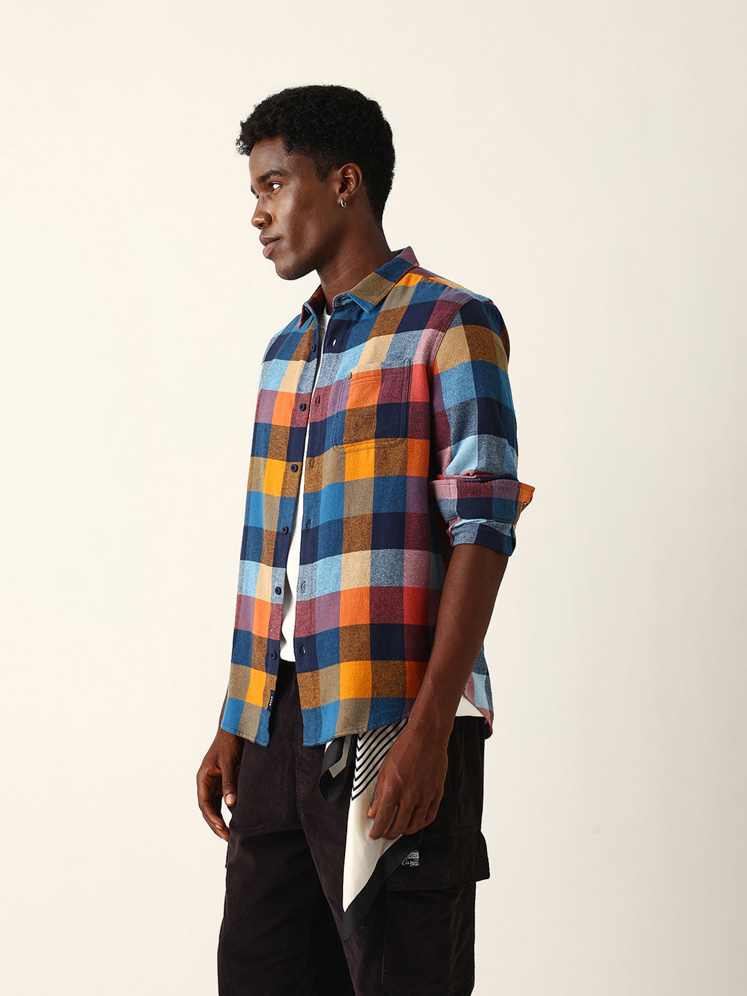 Multicolor Flannel Checked Slim Fit Casual Shirt