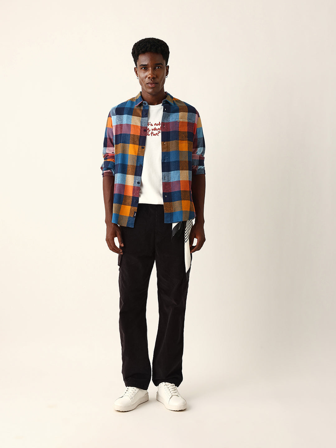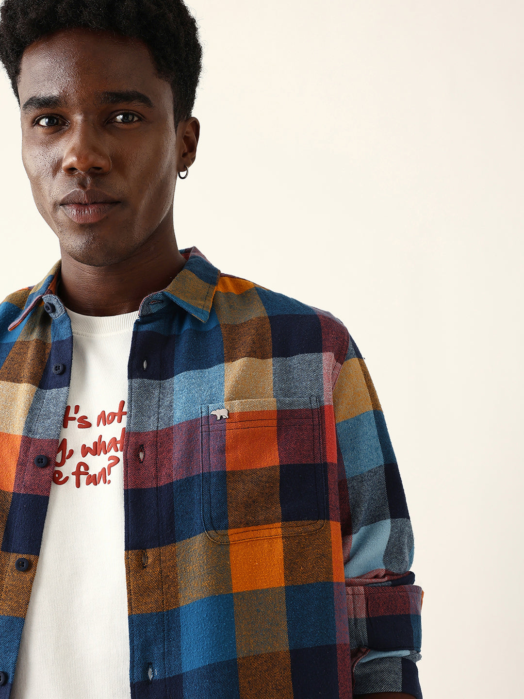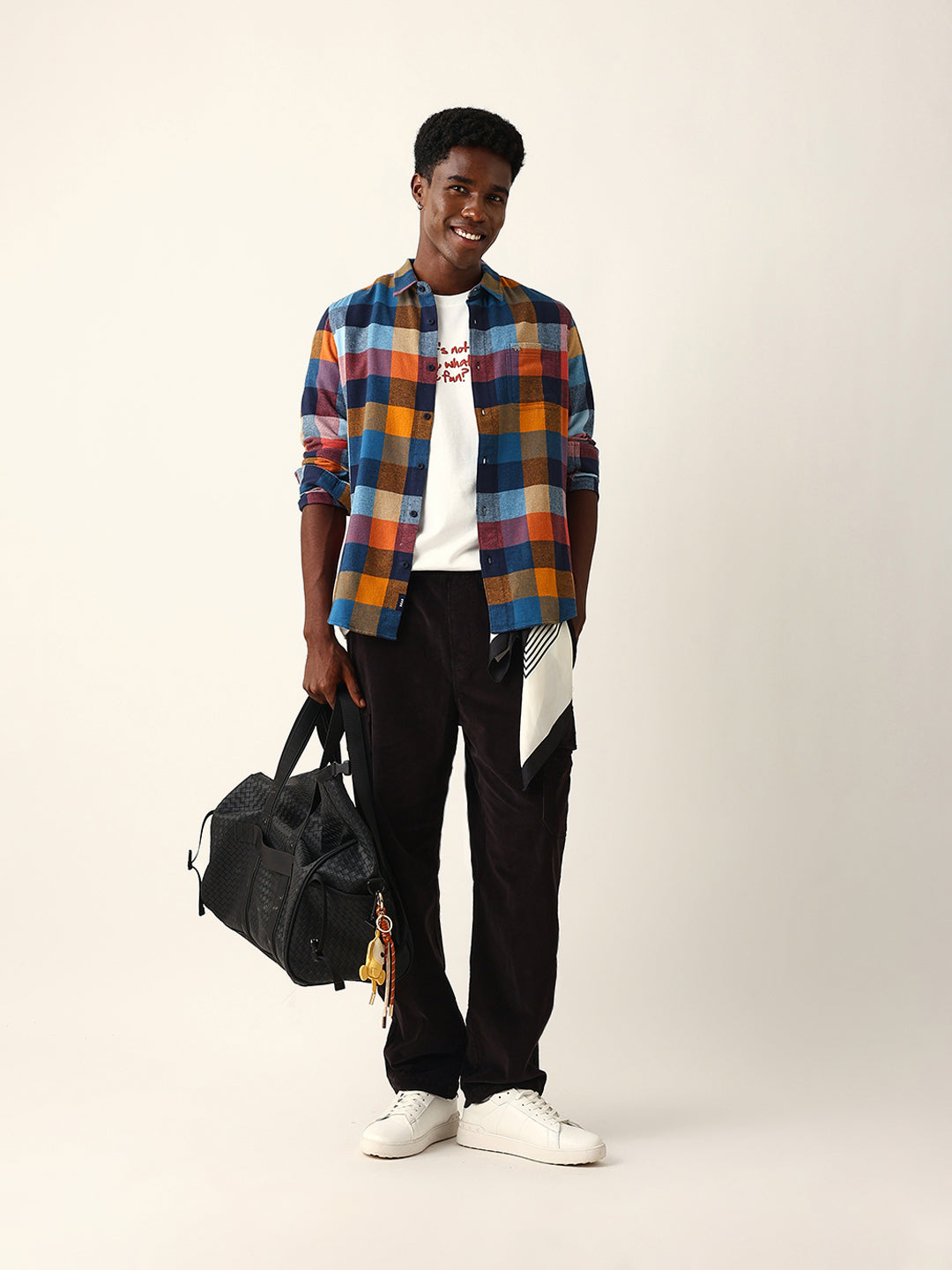 Multicolor Flannel Checked Slim Fit Casual Shirt