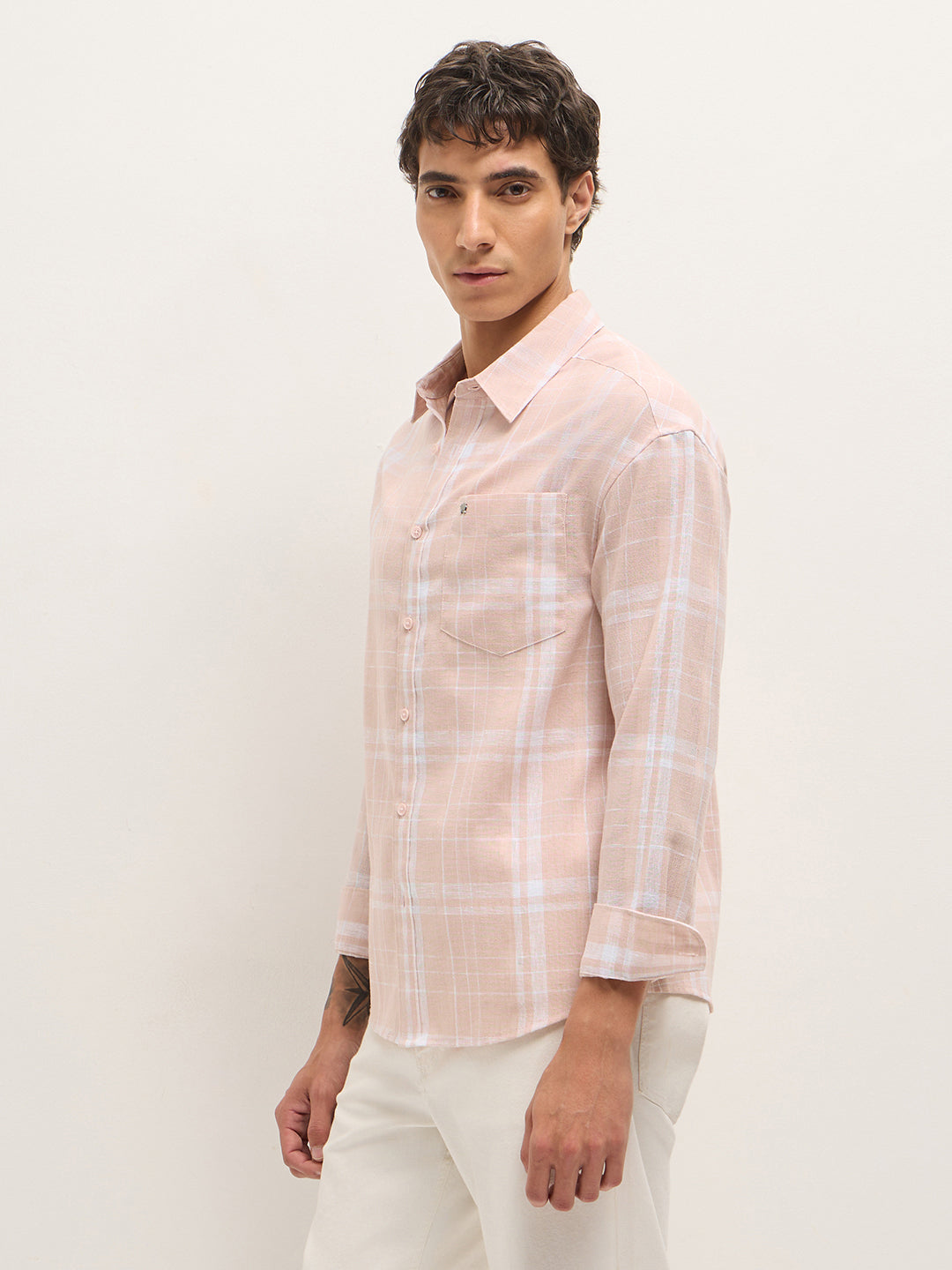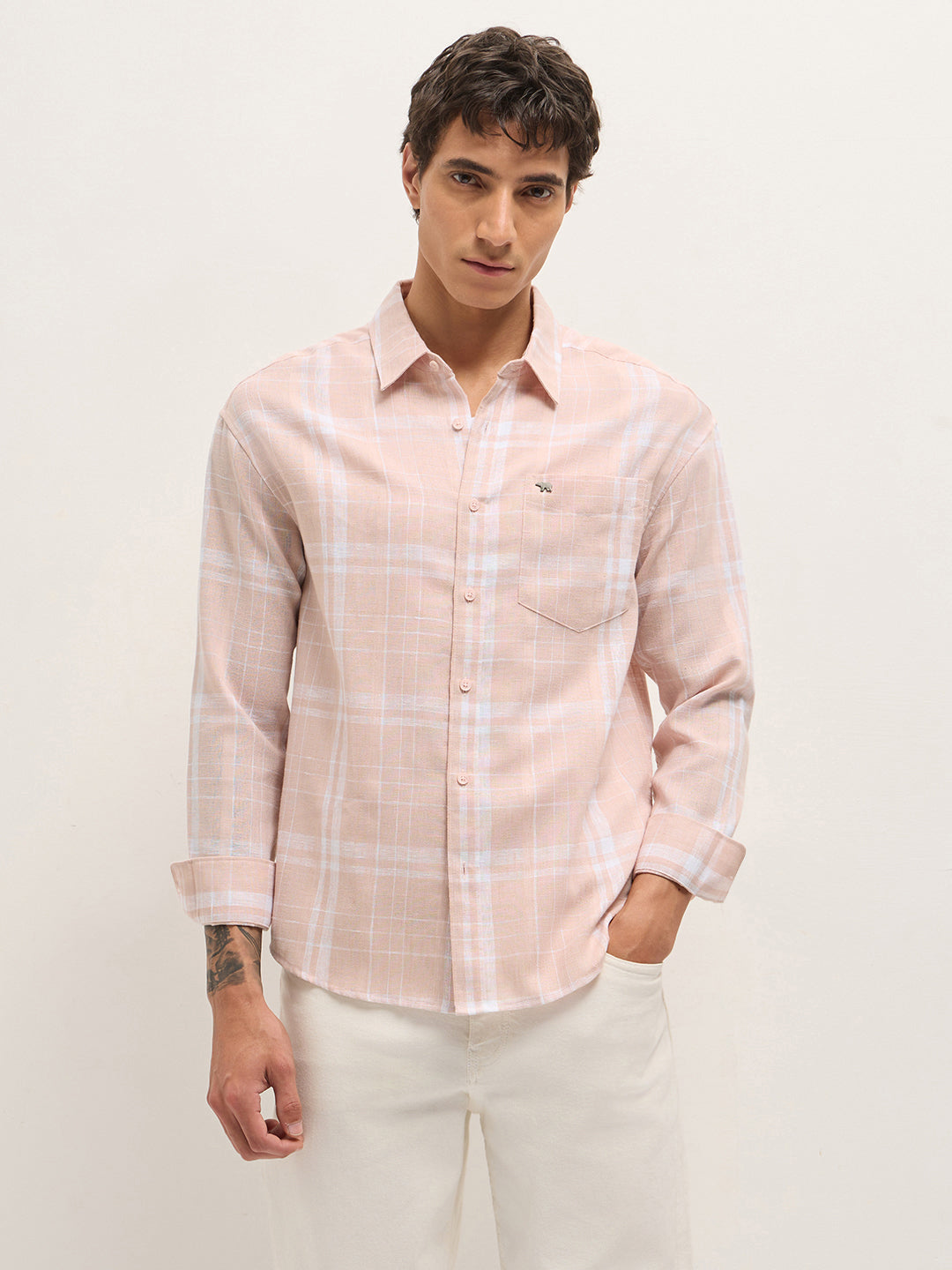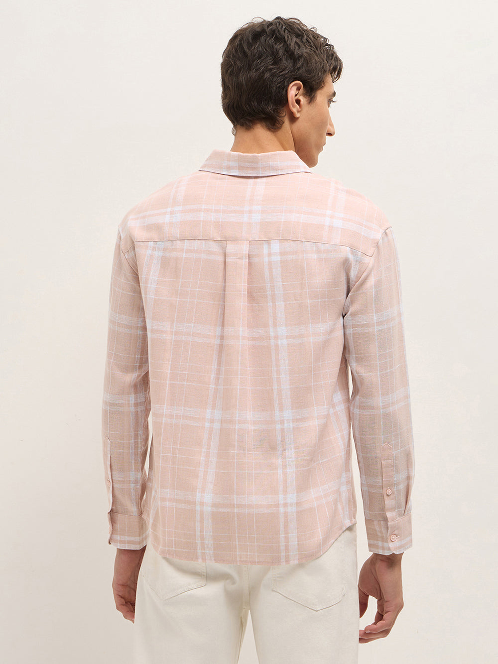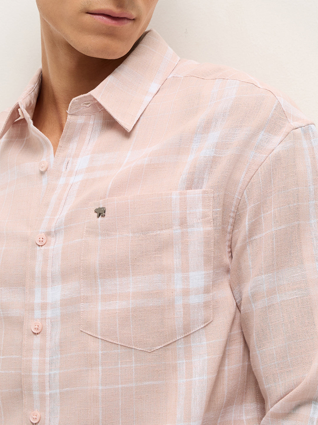 Peach Woven Checks Relaxed Fit Casual Shirt
