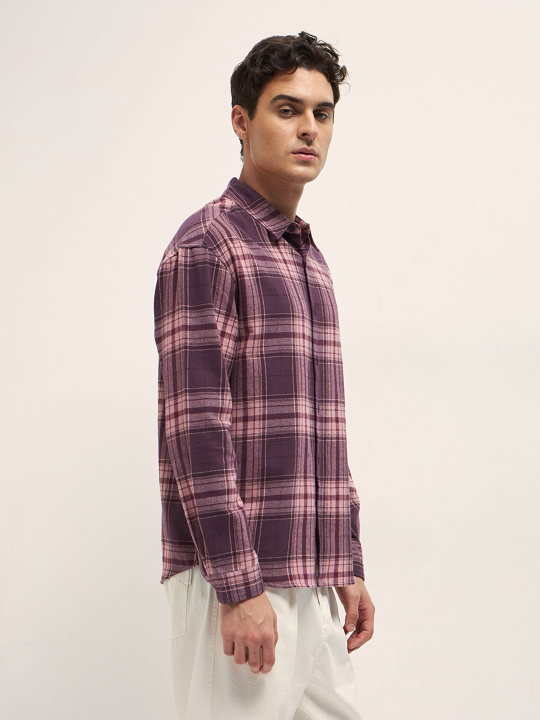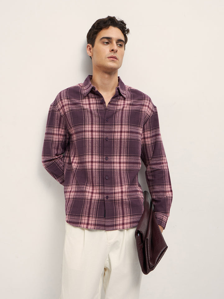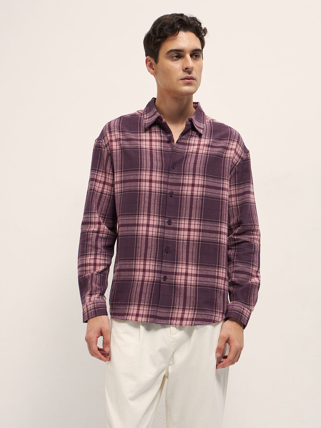 Shop Purple Woven Checked Design Relax Fit Overshirt Online.