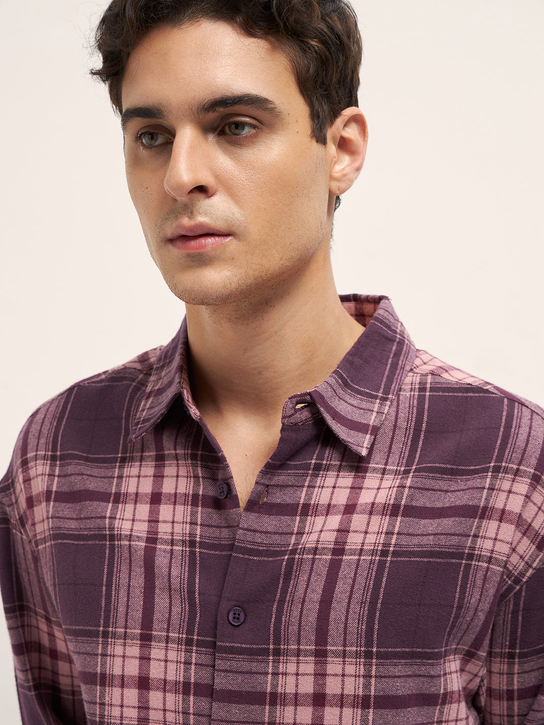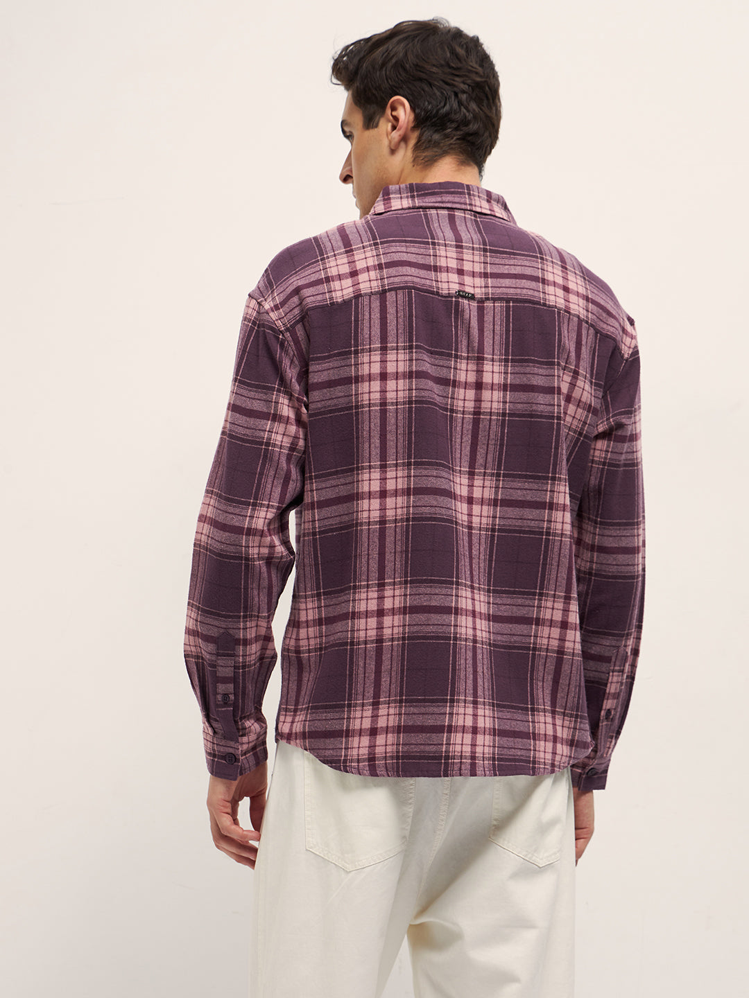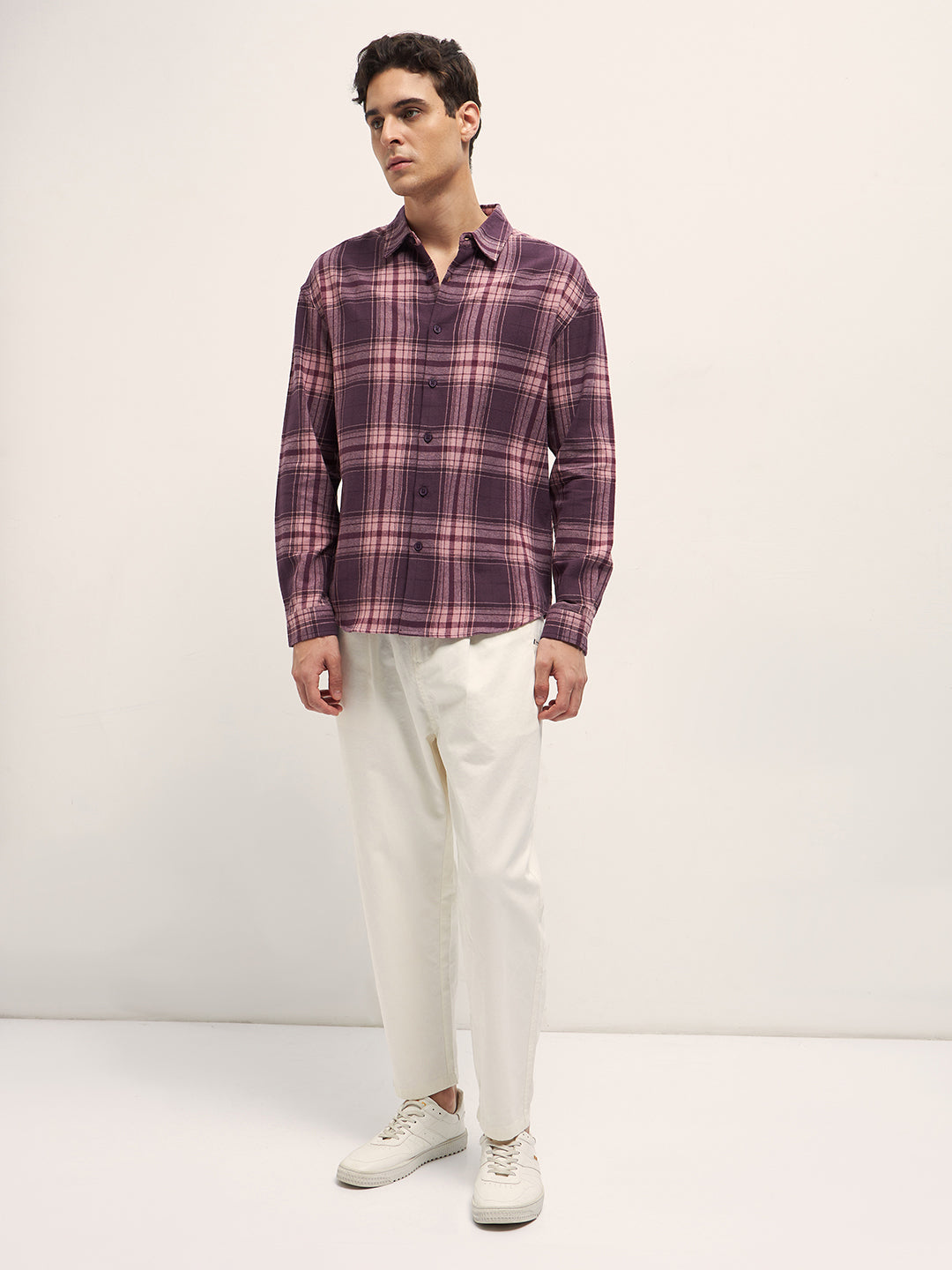 Shop Purple Woven Checked Design Relax Fit Overshirt Online.