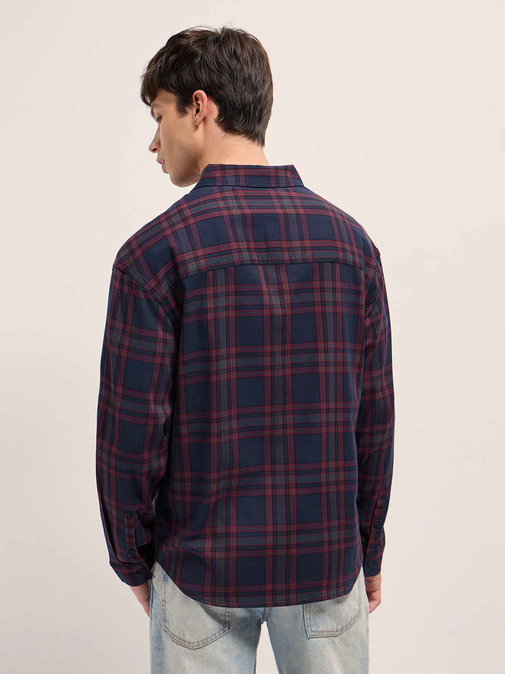 Blue and Red Checked Cotton blend Relaxed Fit Overshirt