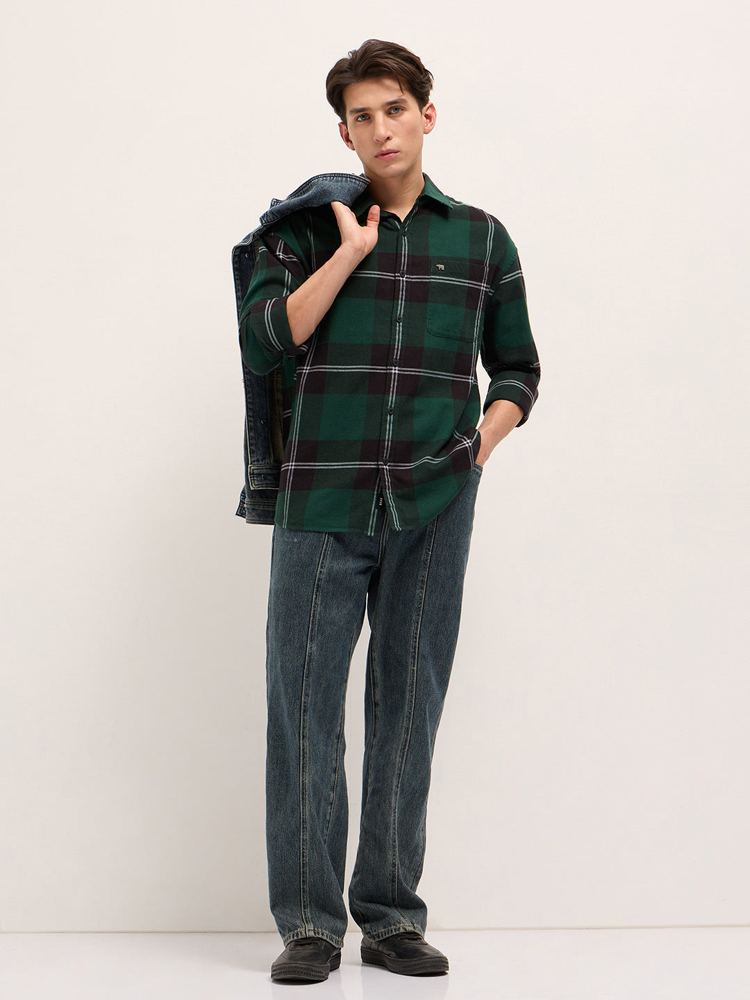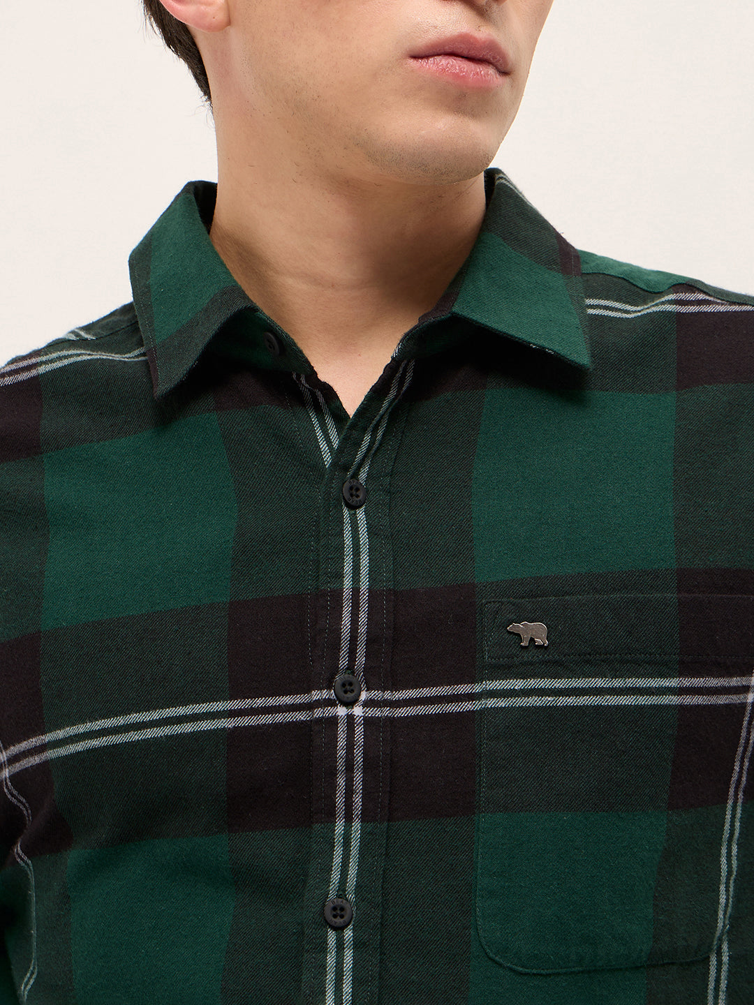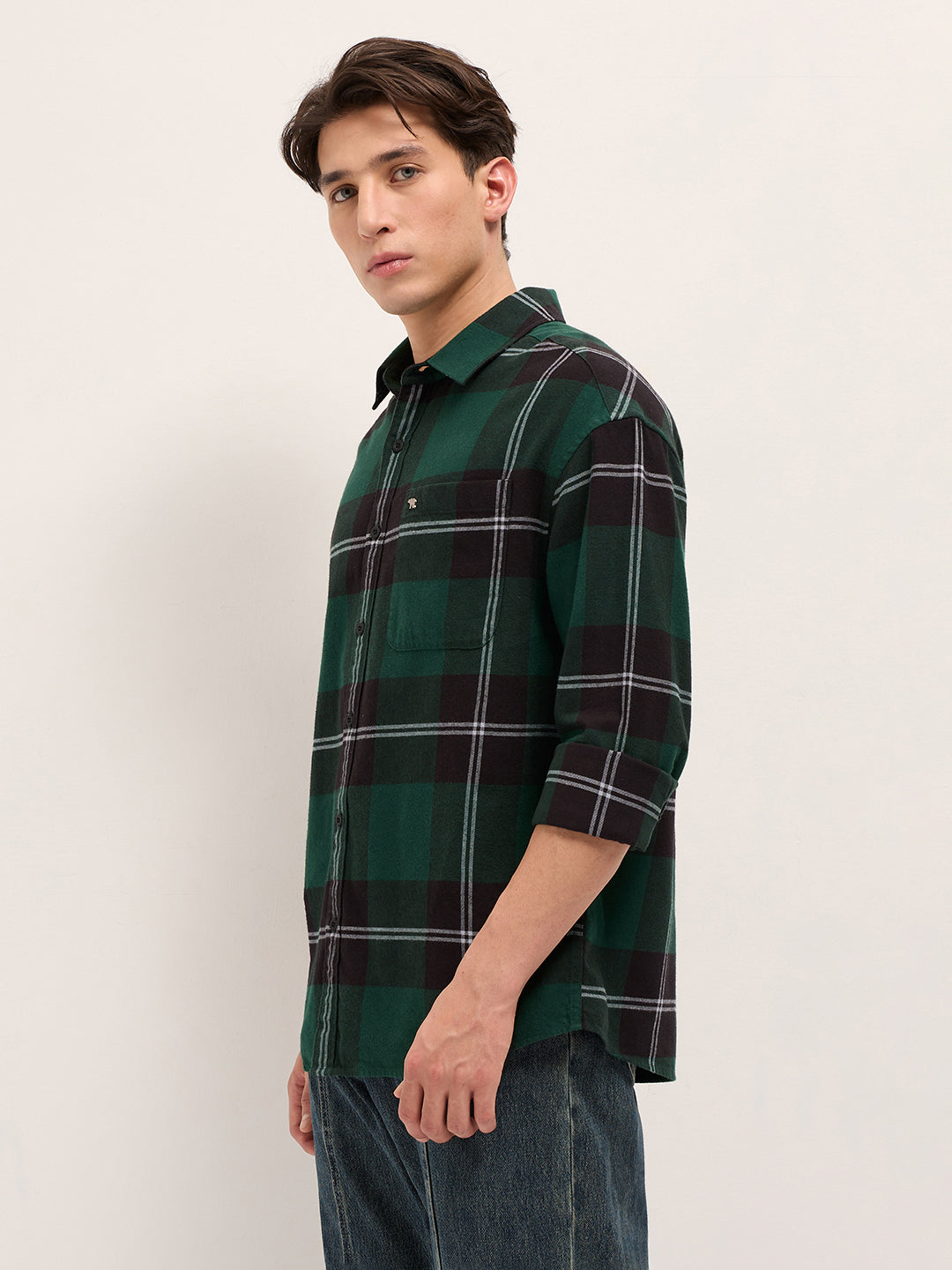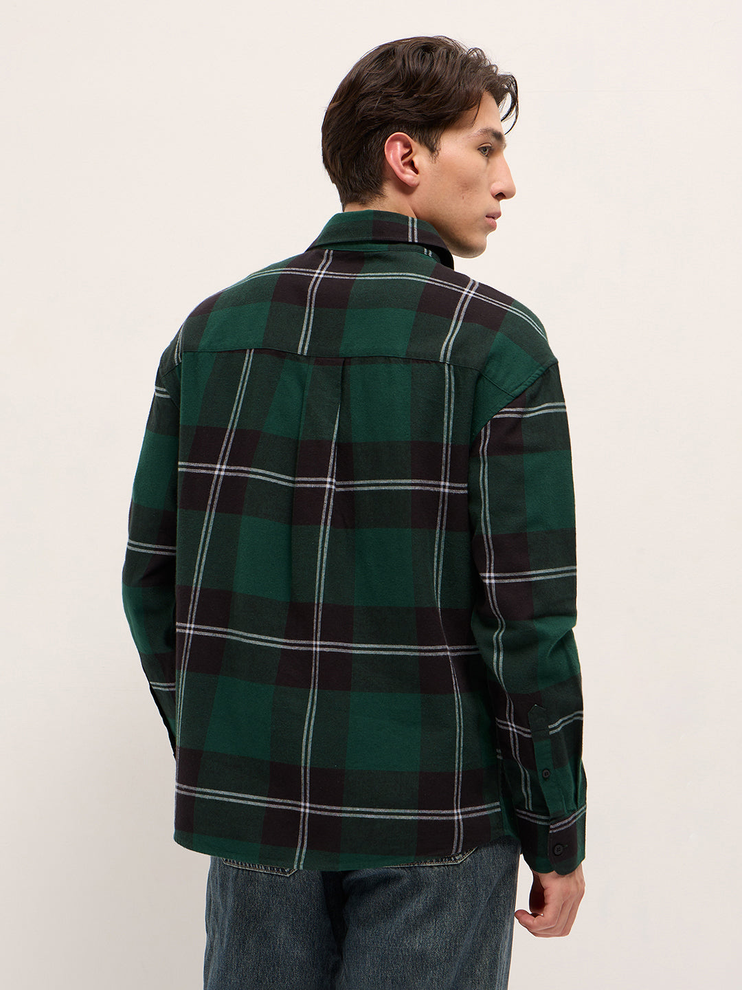 Shop Green with Black Woven Checked Design Relax Fit Casual Shirt Online.